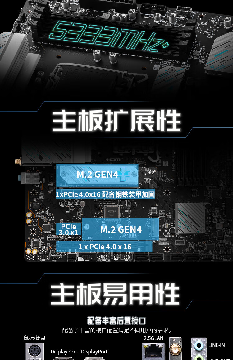 微星(MSI)B850M GAMING PLUS WIFI7主板 5G网口 支持CPU 9800X3D/7800X3D/9700X/9600X/(AMD B850/AM5接口)