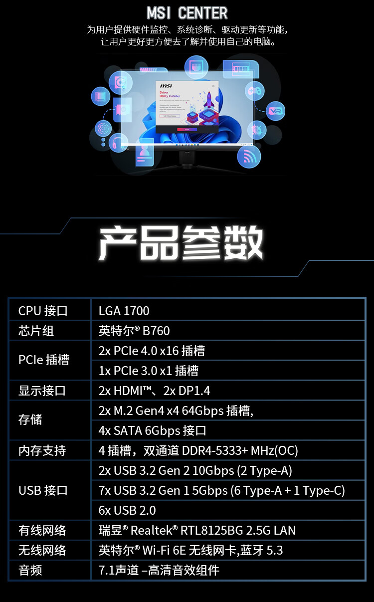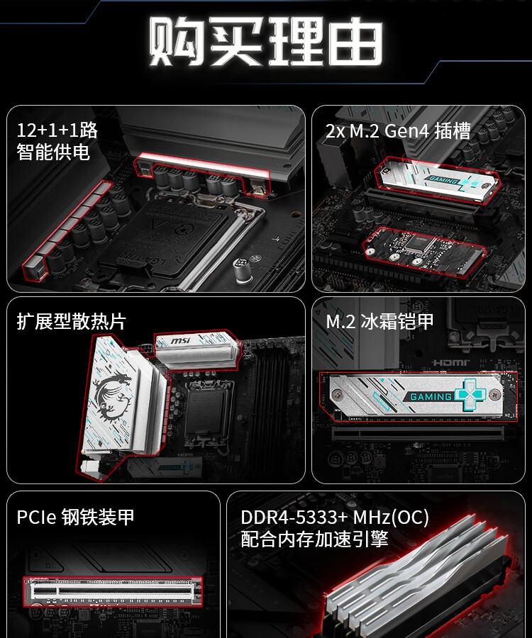 微星(MSI)B760M GAMING WIFI DDR5游戏电脑主板 支持CPU 14600KF/14700KF/12600KF(Intel B760/LGA 1700)