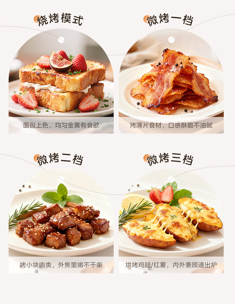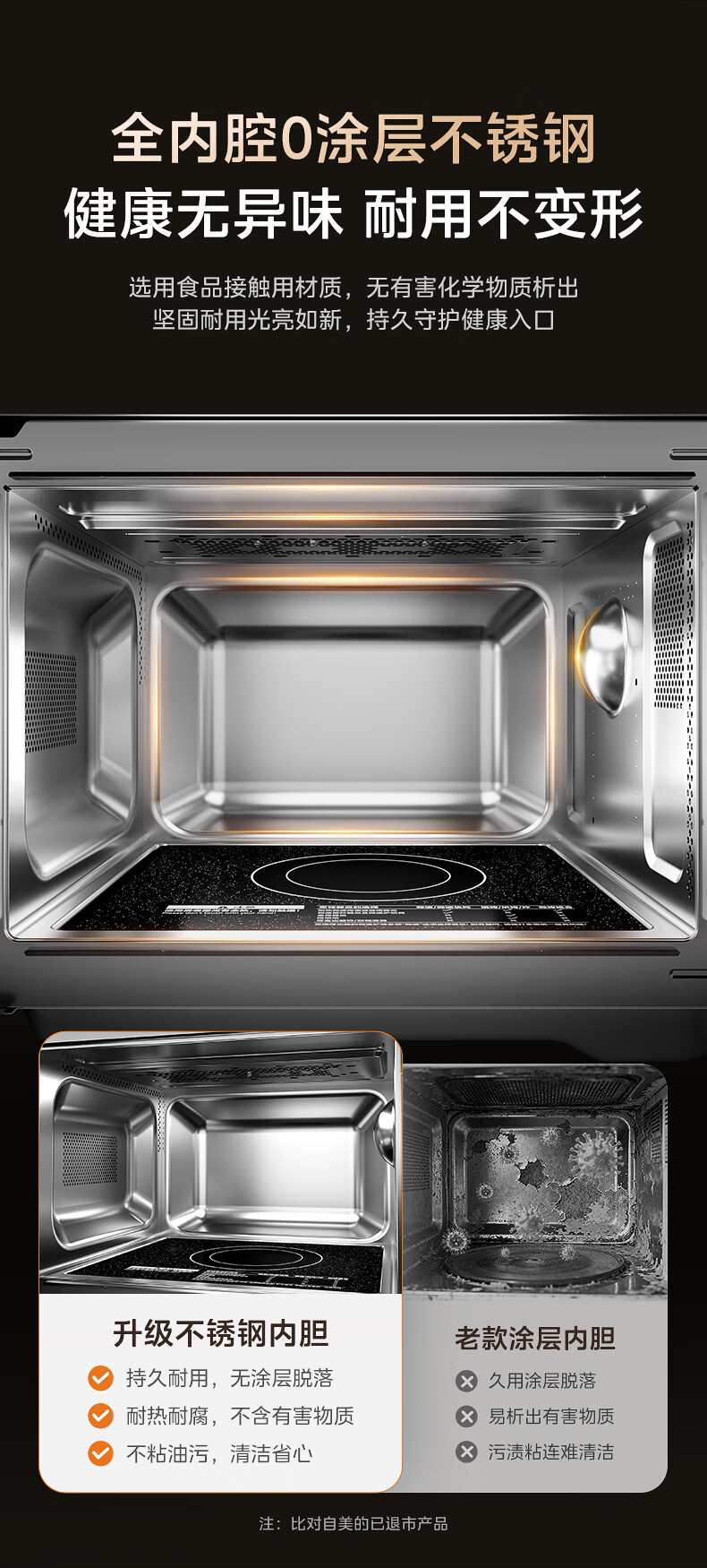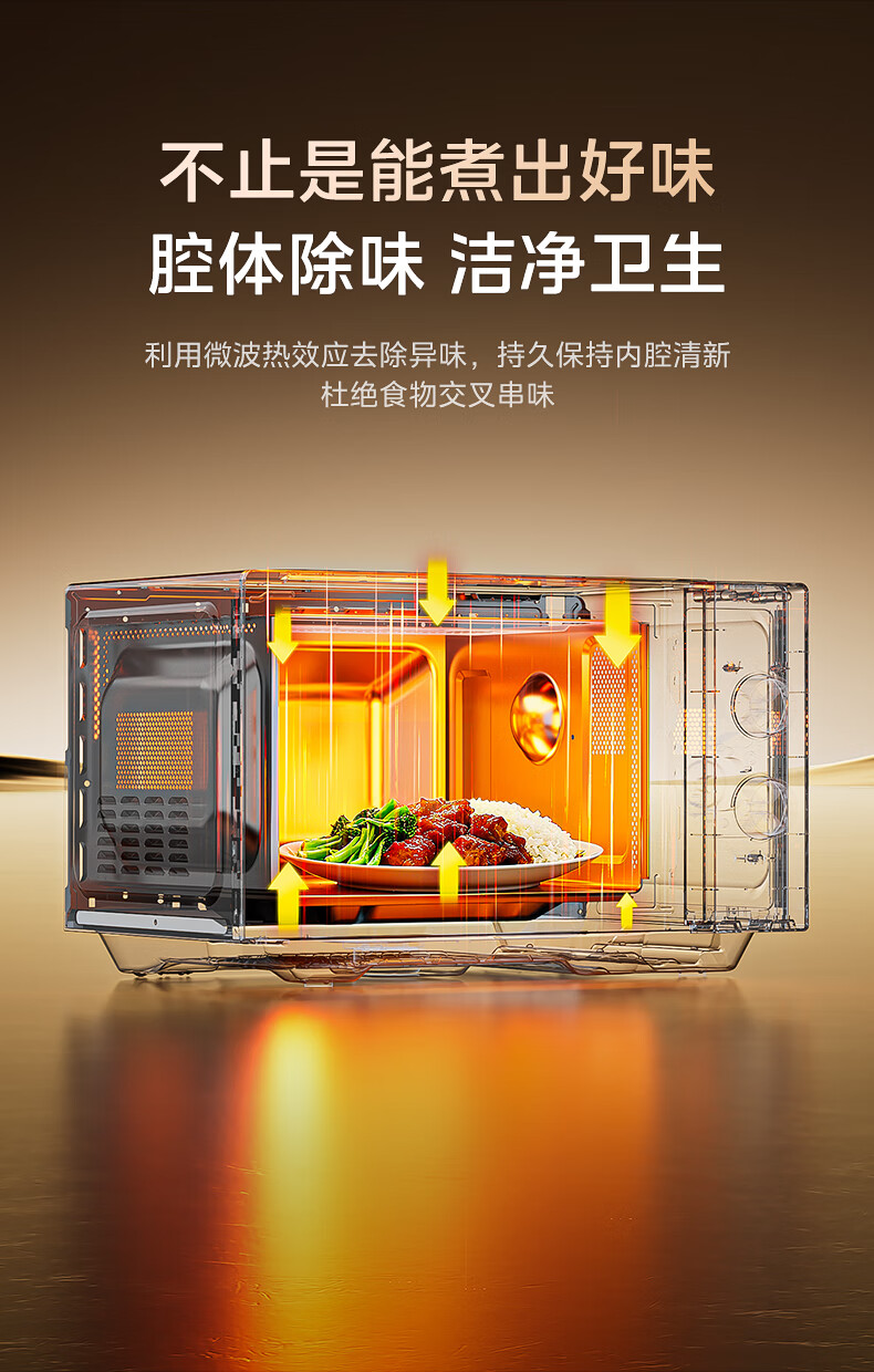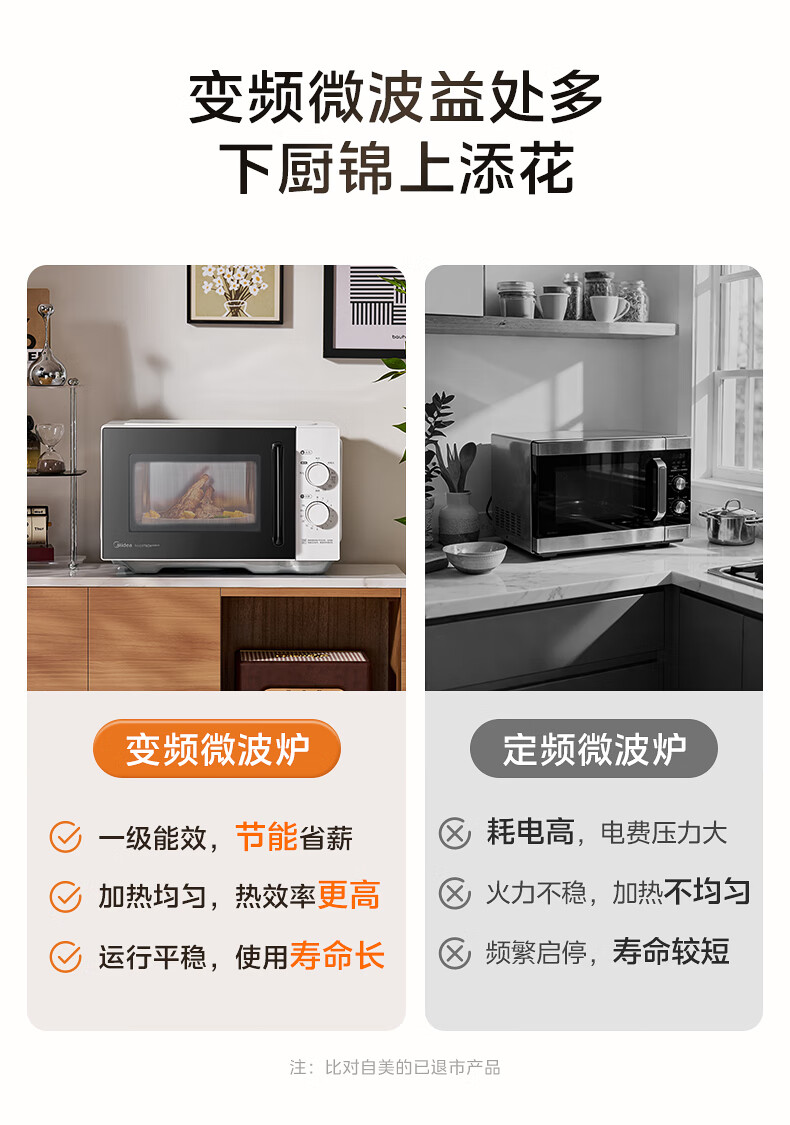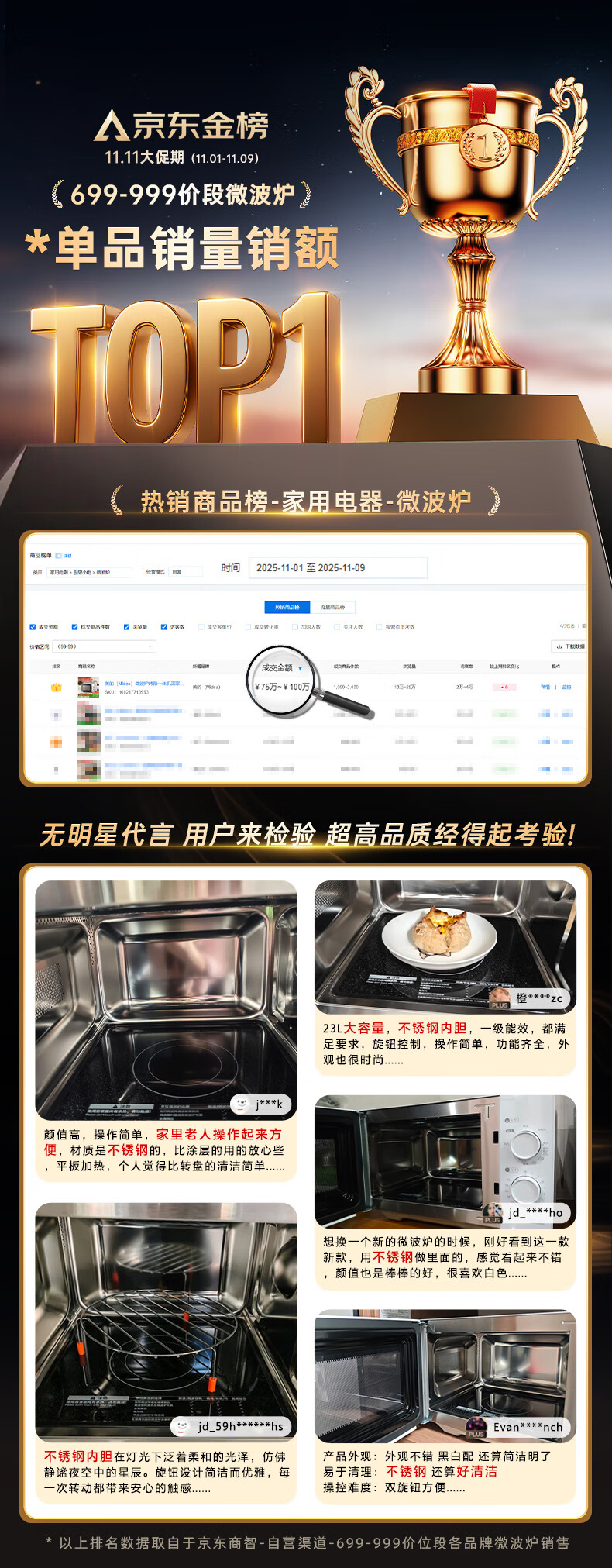 美的(Midea)微波炉烤箱一体机国家补贴一级能效家用小型平板式900W变频不锈钢内胆23L解冻加热旋钮操作C231