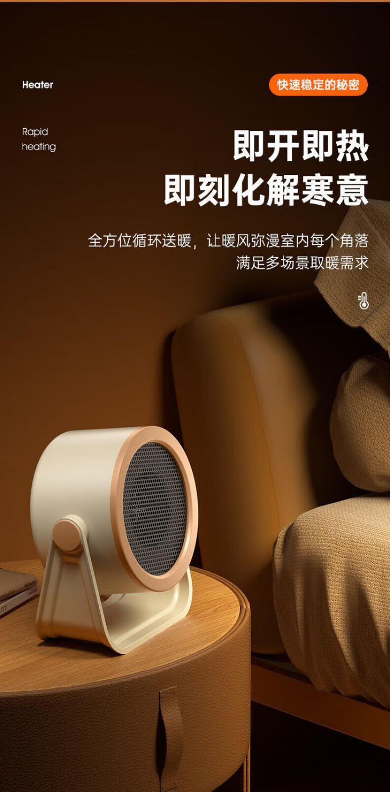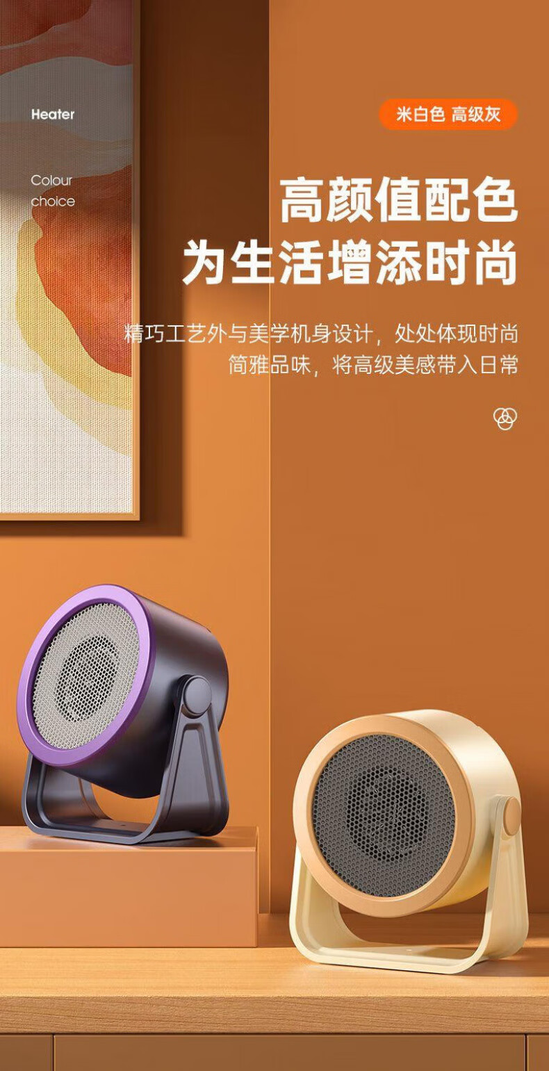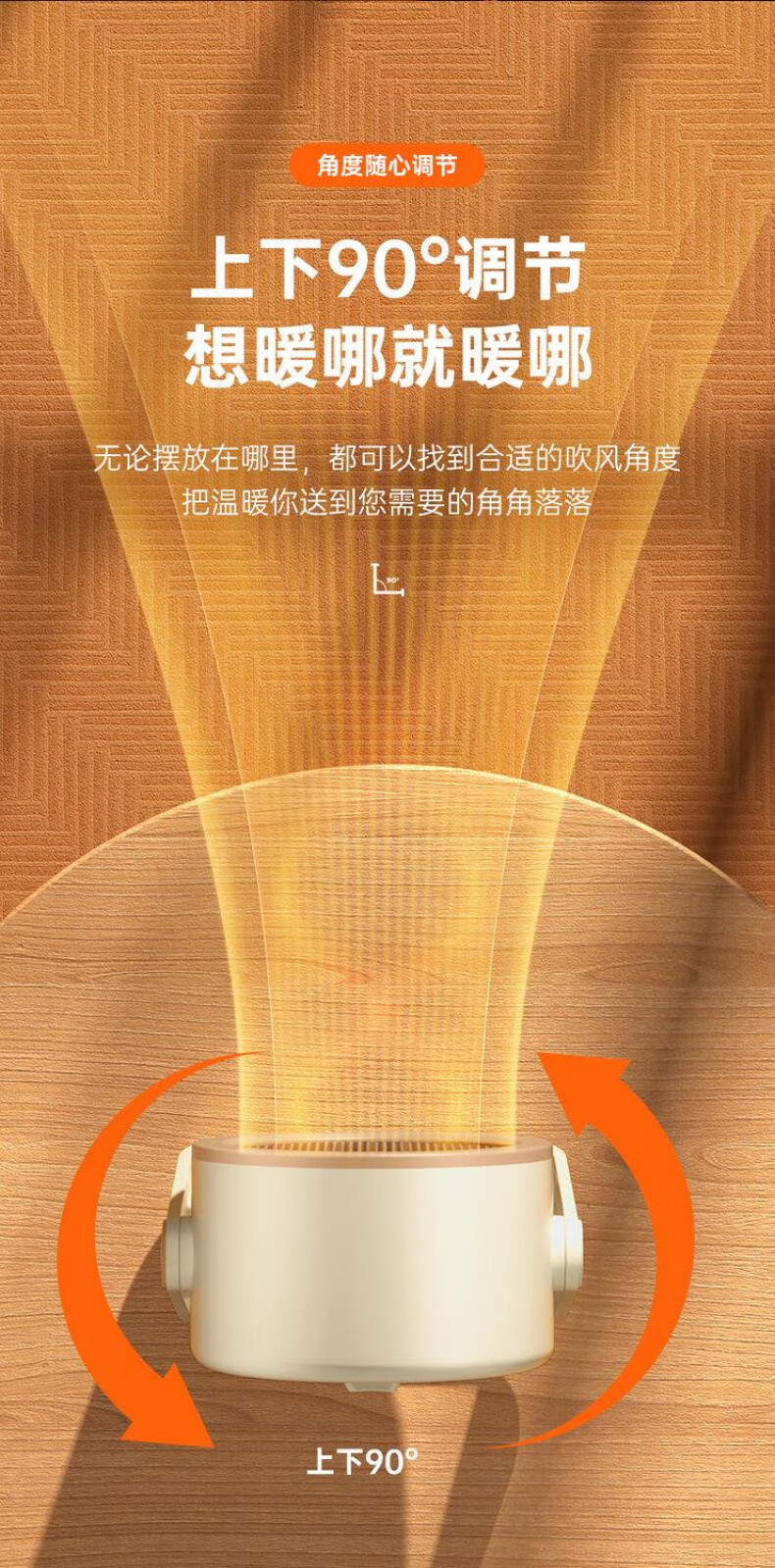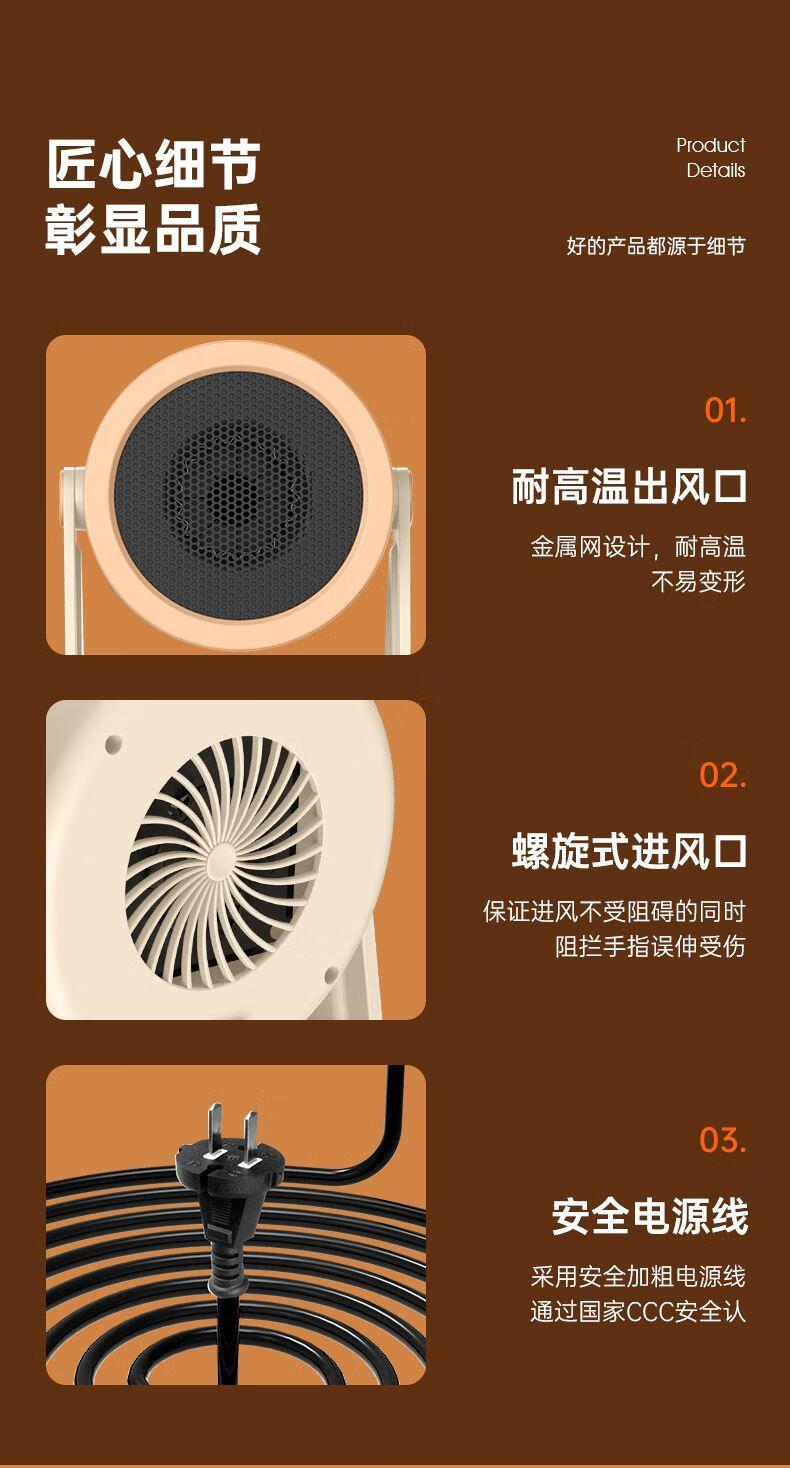 DEATKN德国2025新款石墨烯节能取暖神器电暖风机家用电暖气小太阳小型室内婴幼儿浴室办公室电热风机桌面 高级灰【标准款】一档可调-500W 节能省电-180°可调节