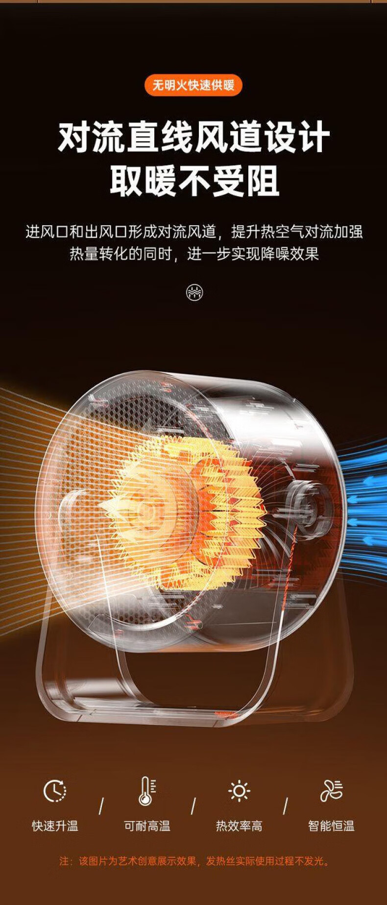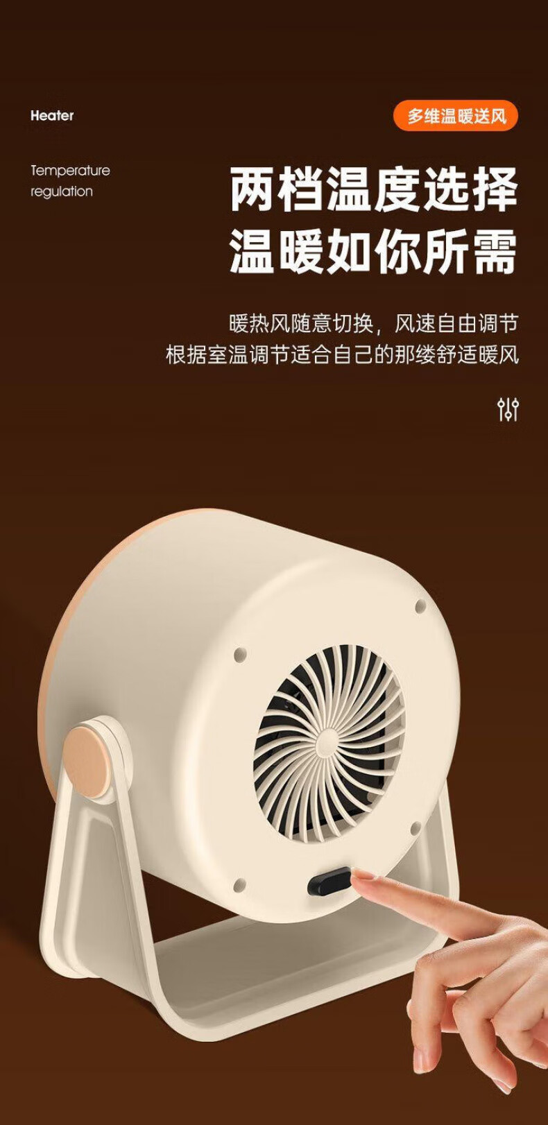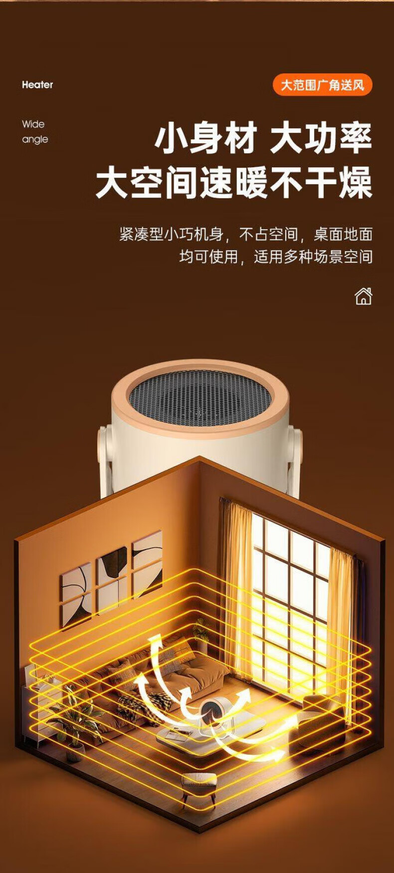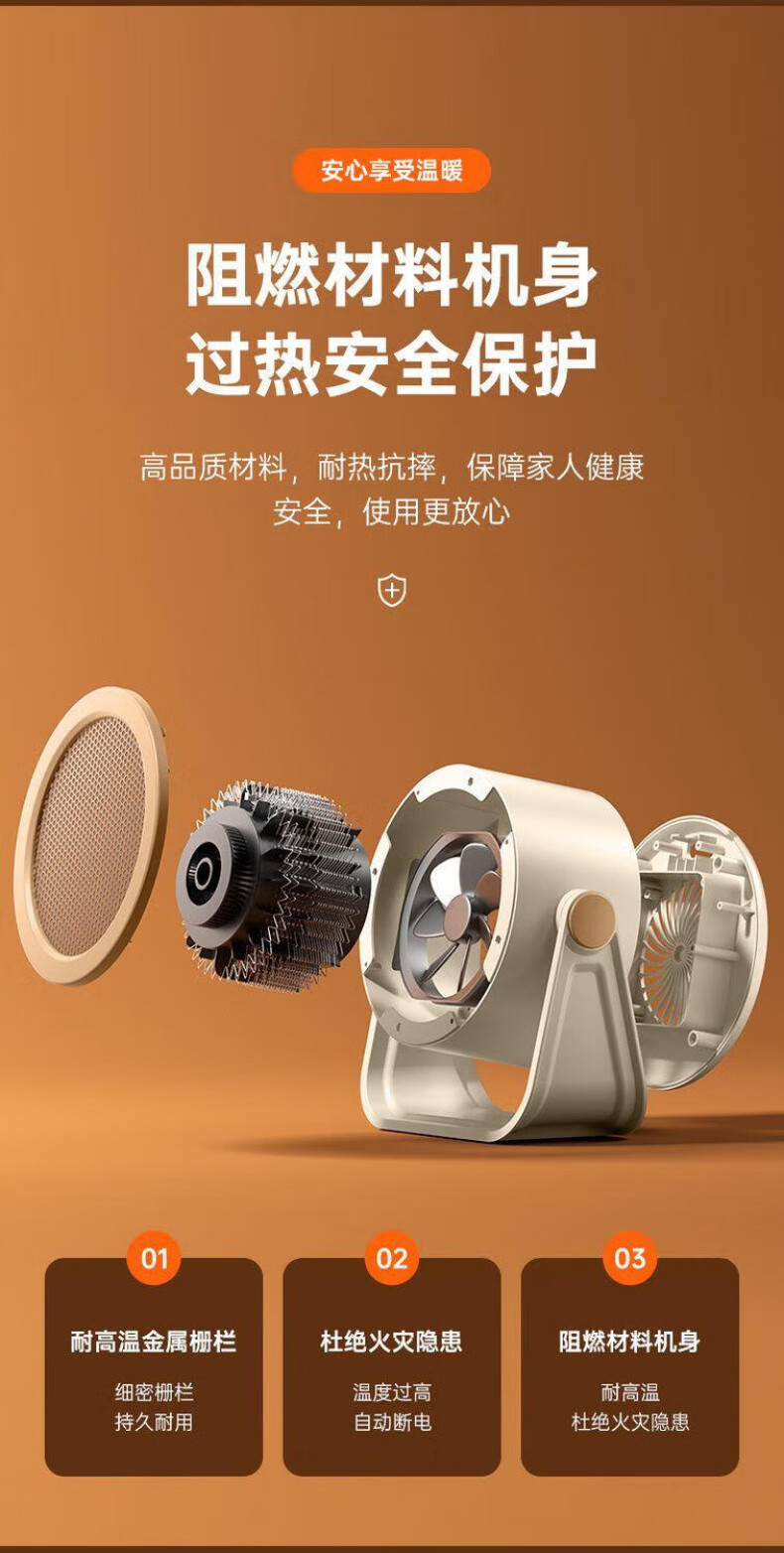 DEATKN德国2025新款石墨烯节能取暖神器电暖风机家用电暖气小太阳小型室内婴幼儿浴室办公室电热风机桌面 高级灰【标准款】一档可调-500W 节能省电-180°可调节
