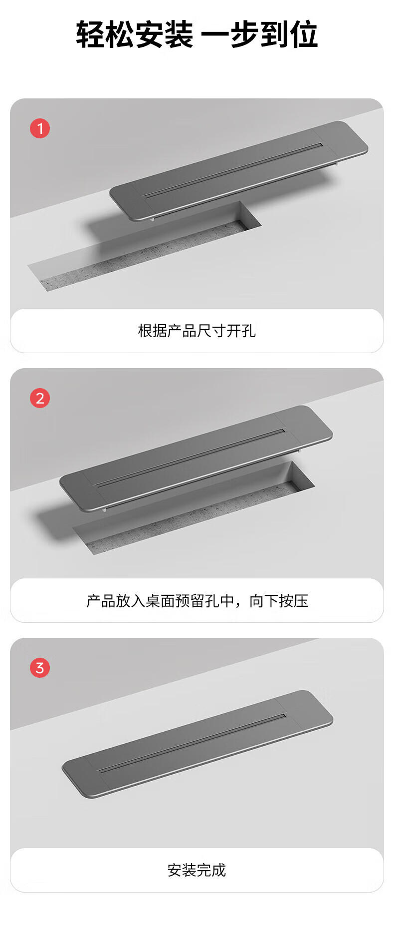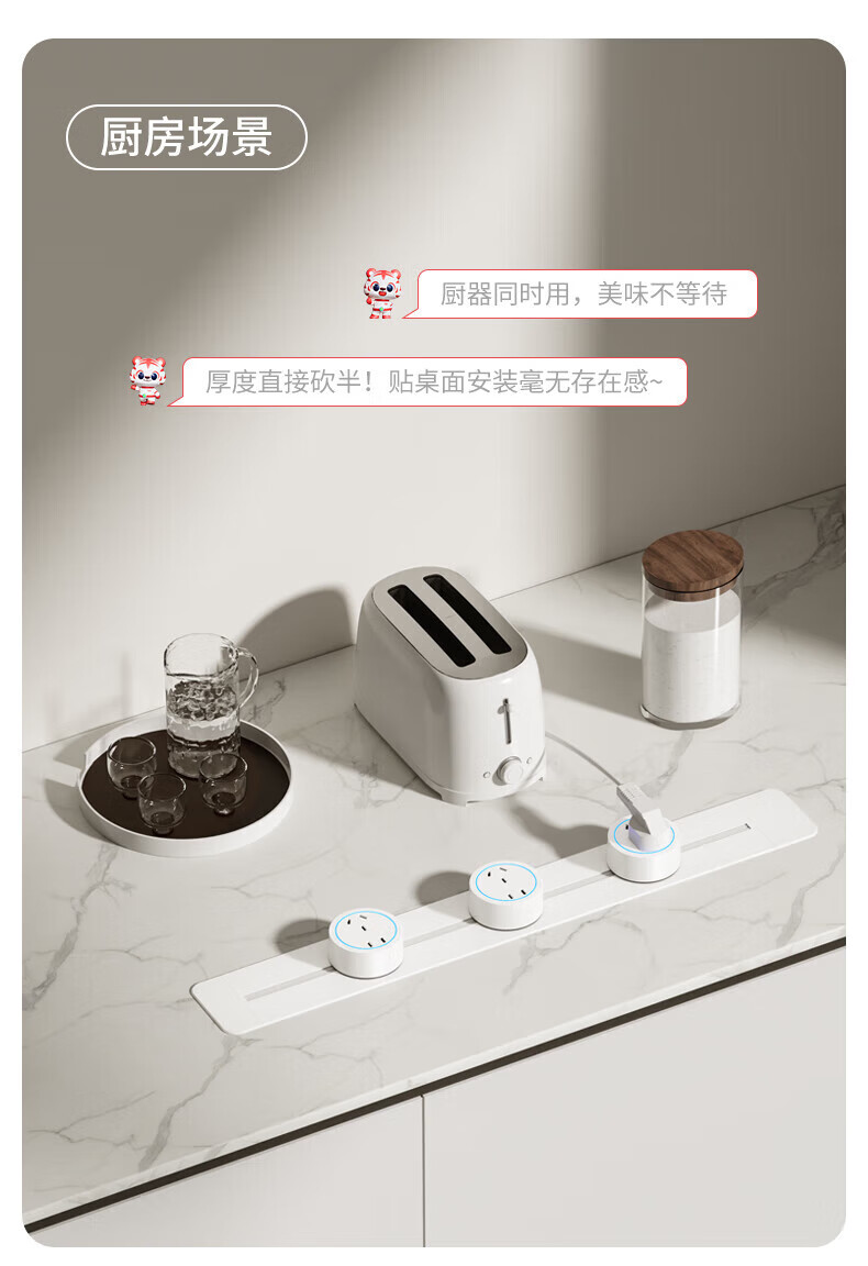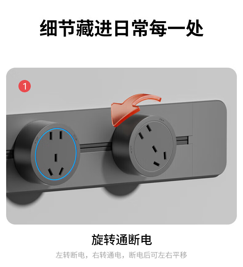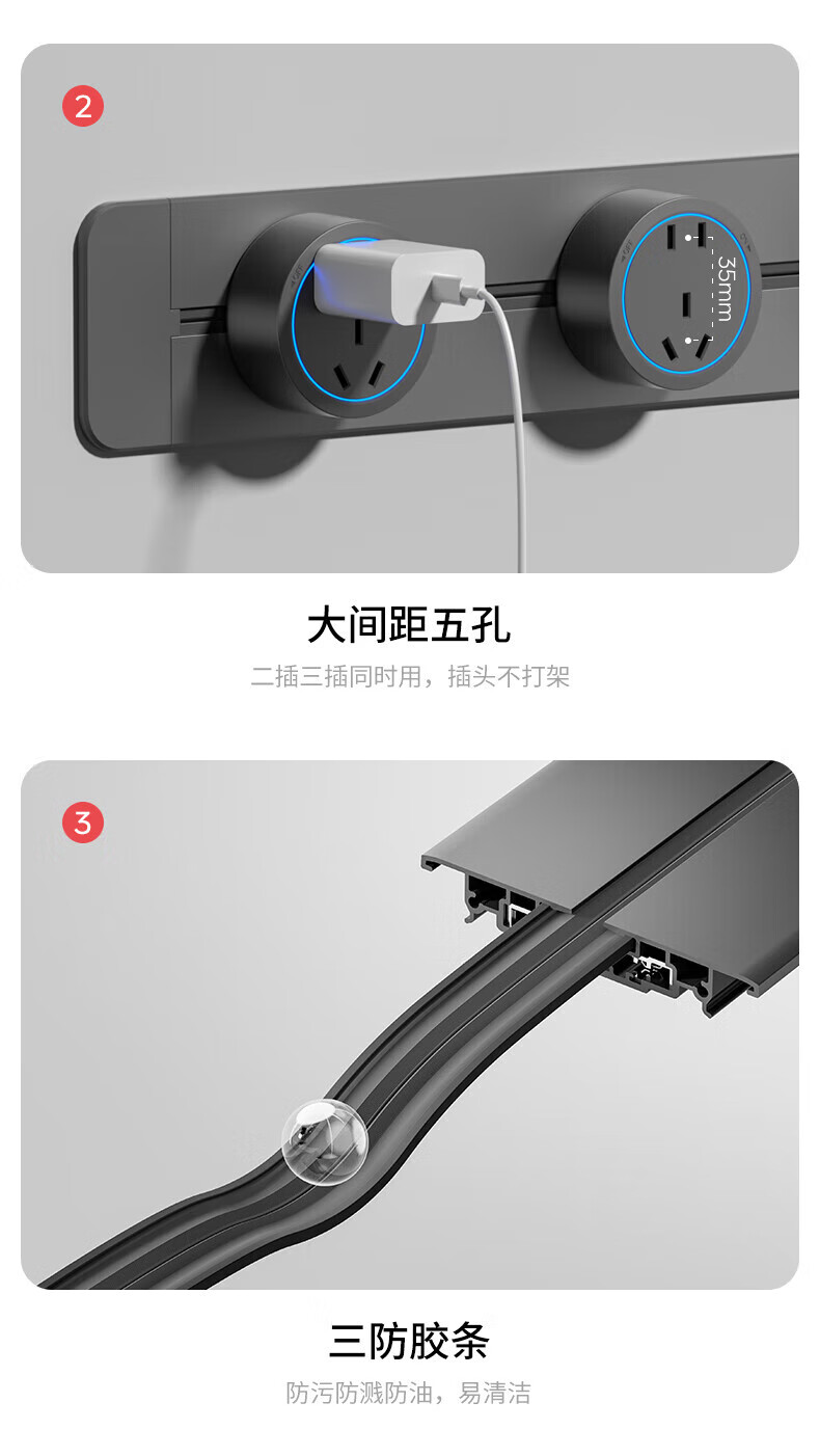 国际电工嵌入式轨道插座暗装餐边柜可移动滑轨导轨家用滑动内嵌式桌面插排 暗装-灰色轨道30厘米+3个大五孔-蓝灯