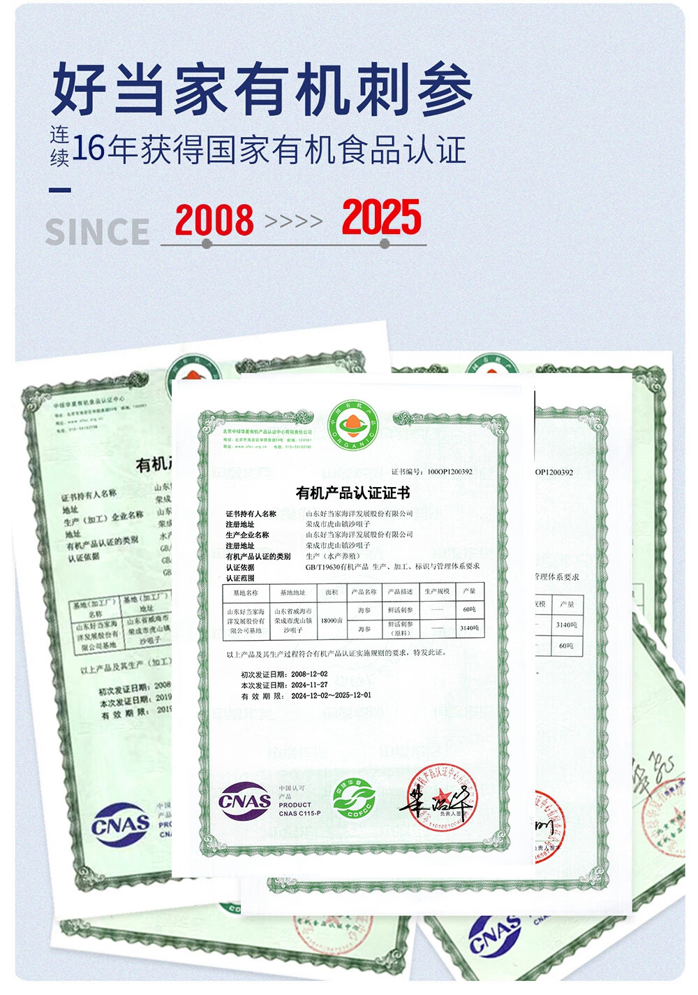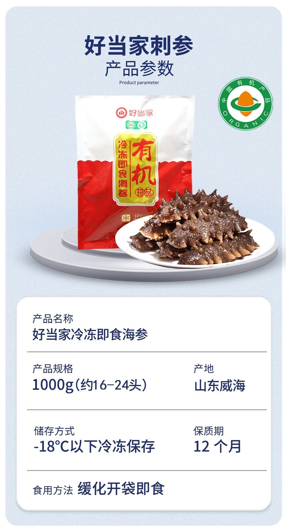 好当家 威海冷冻有机即食海参2斤 16-24只 袋装 源头直发