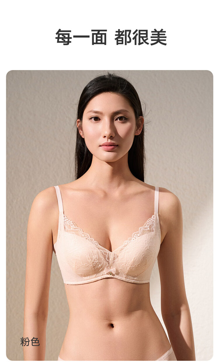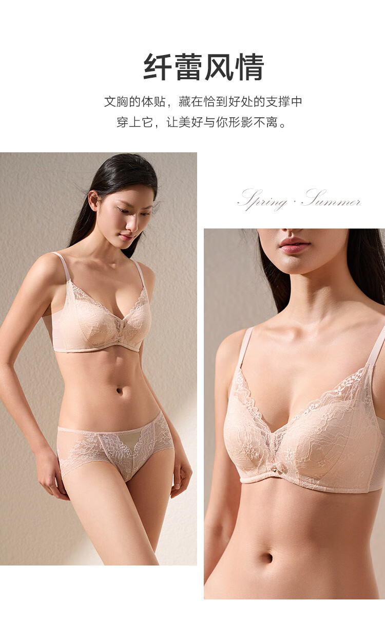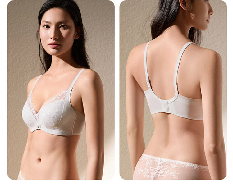 曼妮芬2025秋冬女士舒适无钢圈聚拢文胸性感蕾丝软支撑内衣 030灰白色 75B