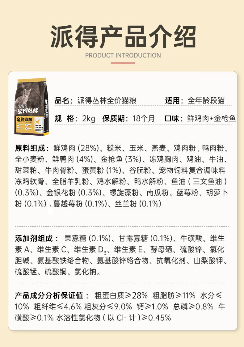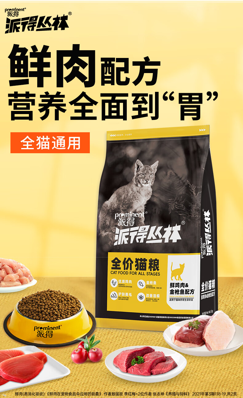 派得猫粮鲜肉成猫幼猫蓝猫布偶英短美毛全价通用型主粮 鲜鸡肉+金枪鱼丨成猫幼猫丨4斤