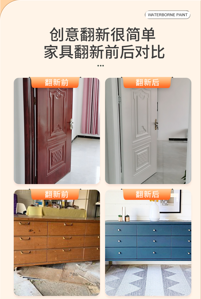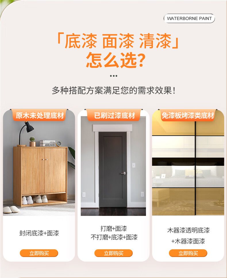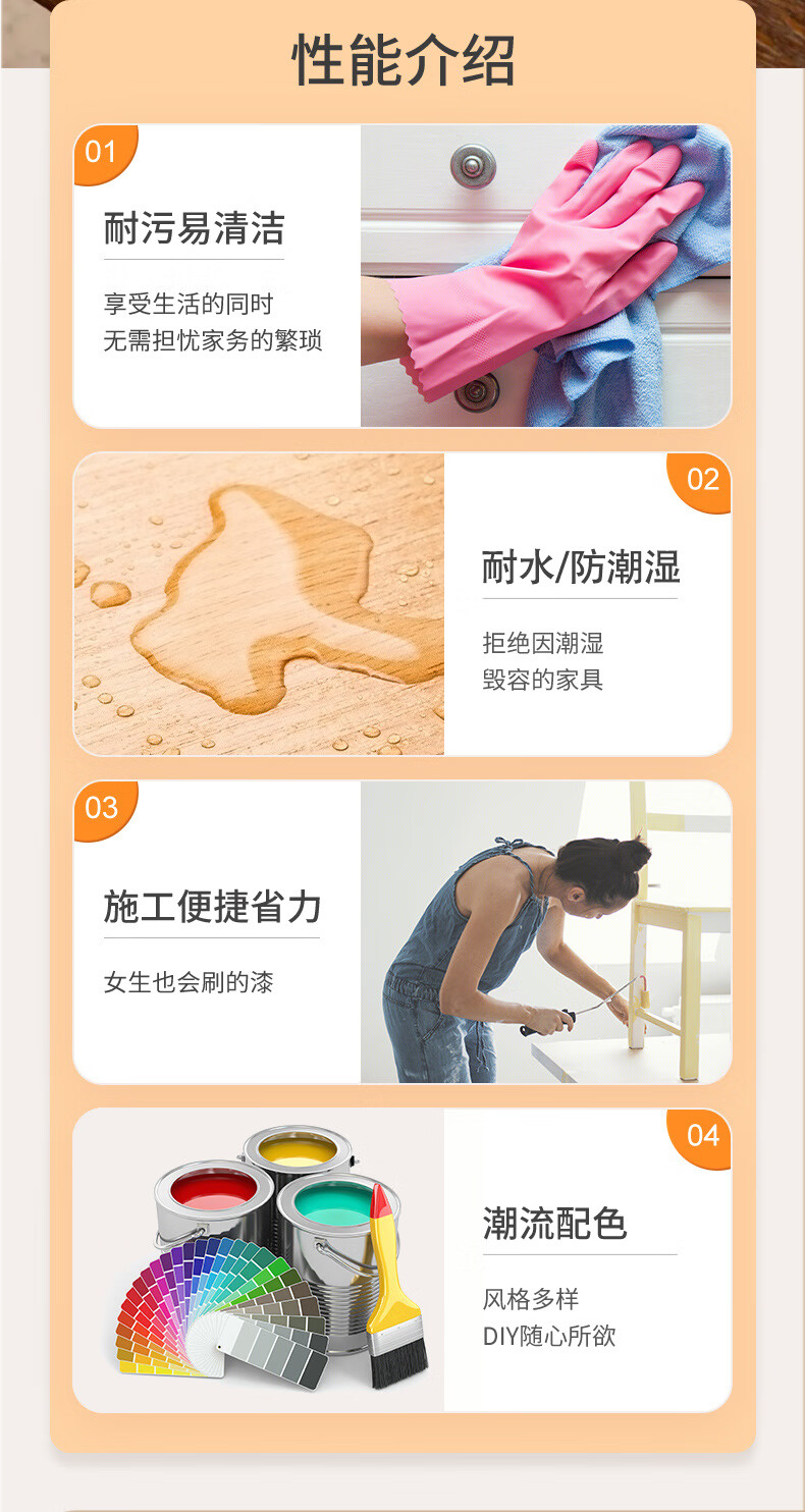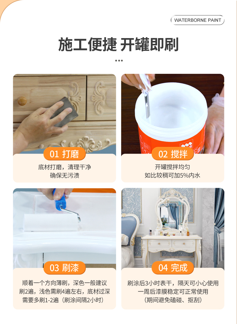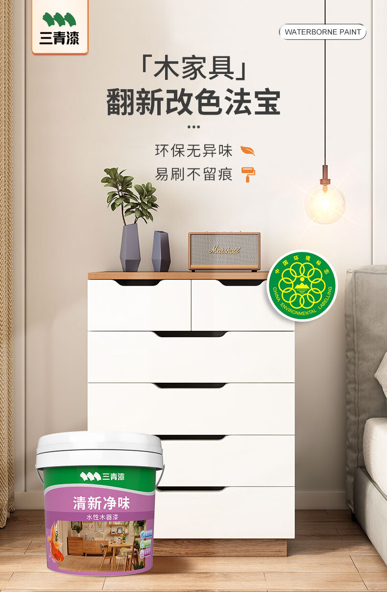 三青 水性木器漆家具翻新漆门窗木用改色油漆好刷净味 象牙白2.5KG