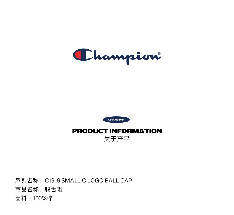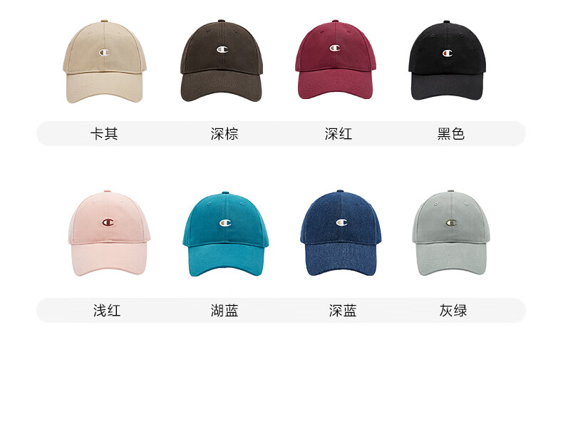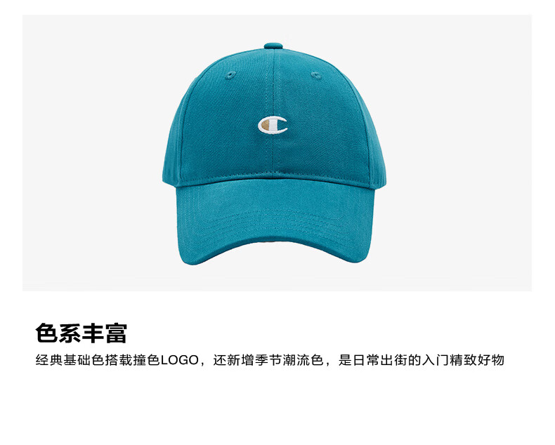 Champion美国冠军鸭舌帽男女 简约休闲防晒时尚棒球帽 24FWA02 湖蓝 均码