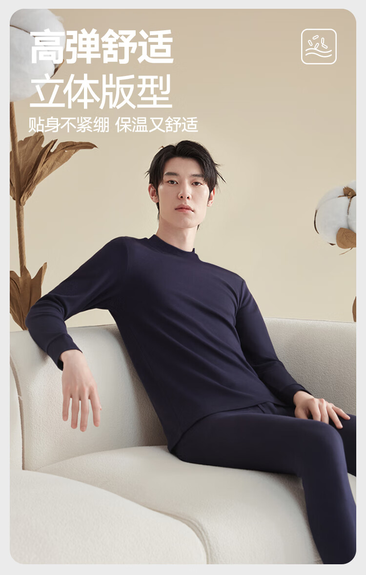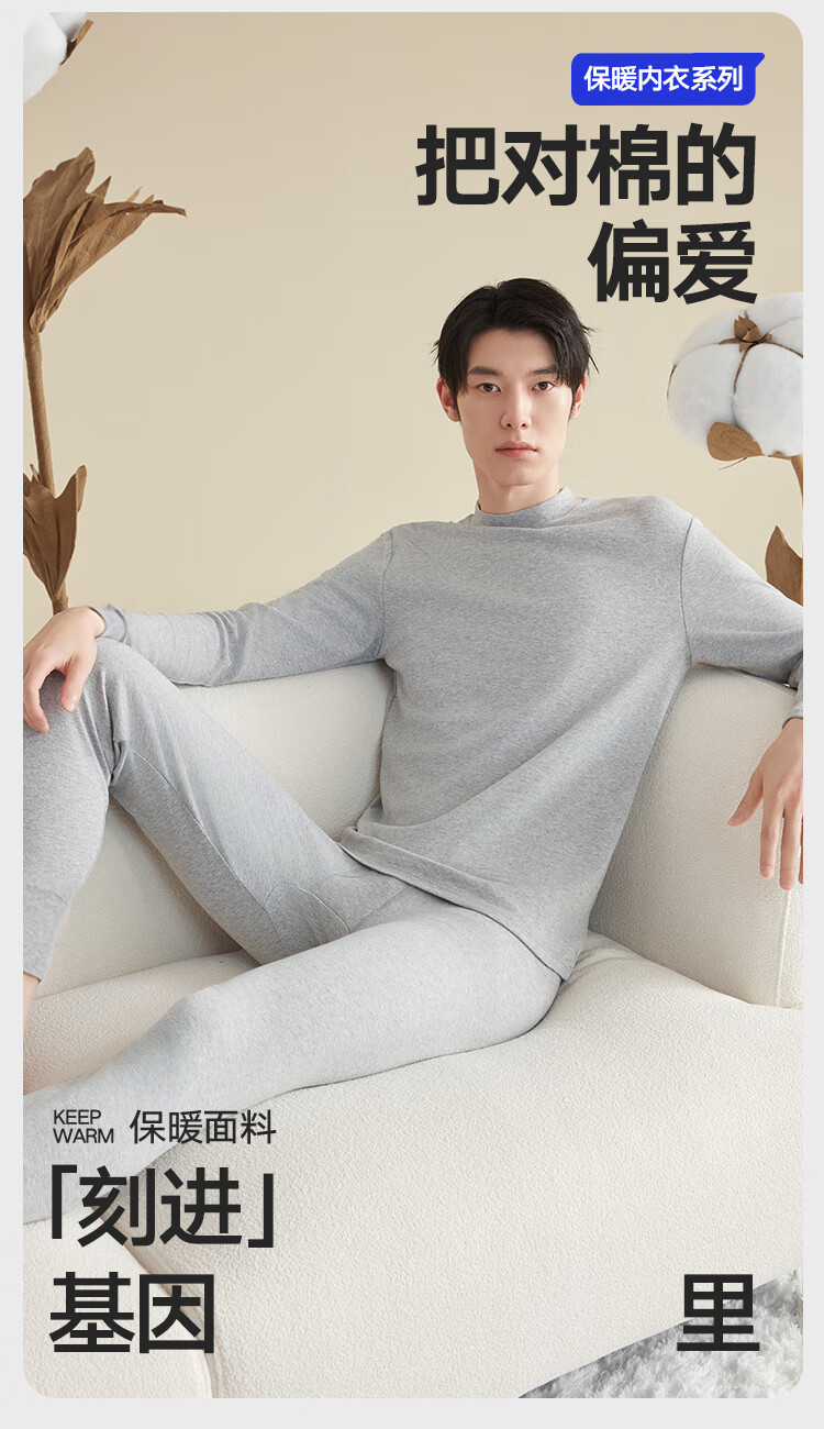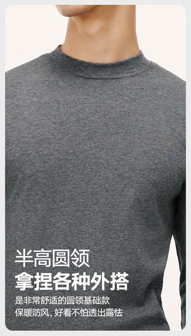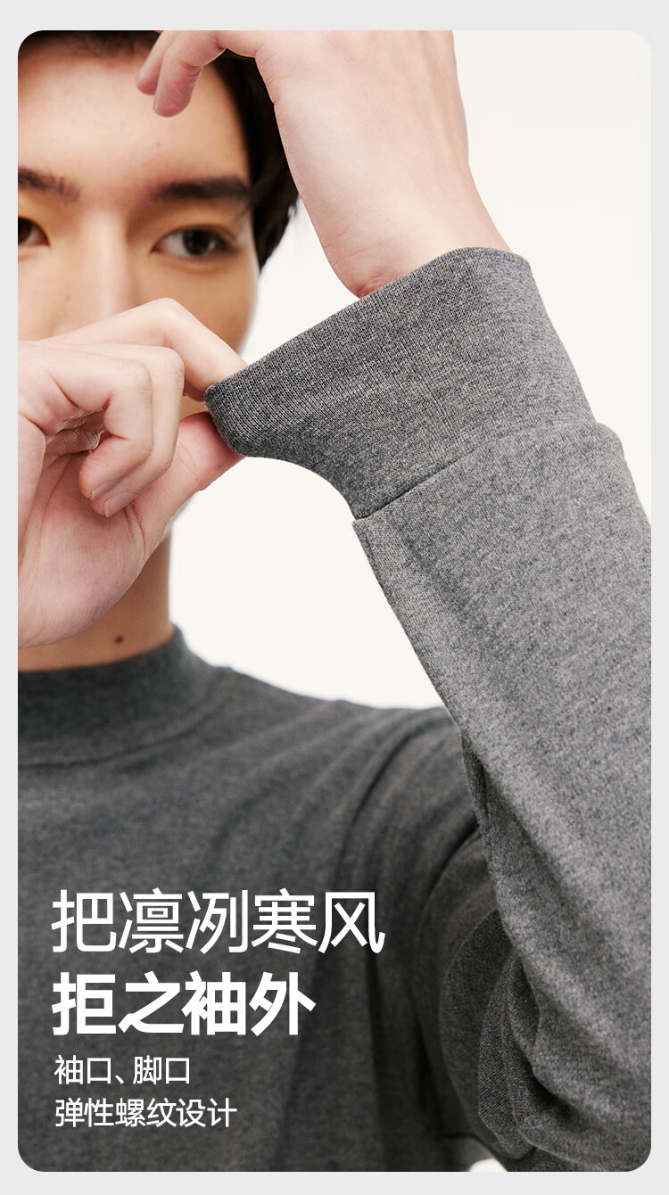 海澜之家男士秋衣秋裤男中领纯棉100%棉230g基础打底棉毛衫薄保暖内衣套装