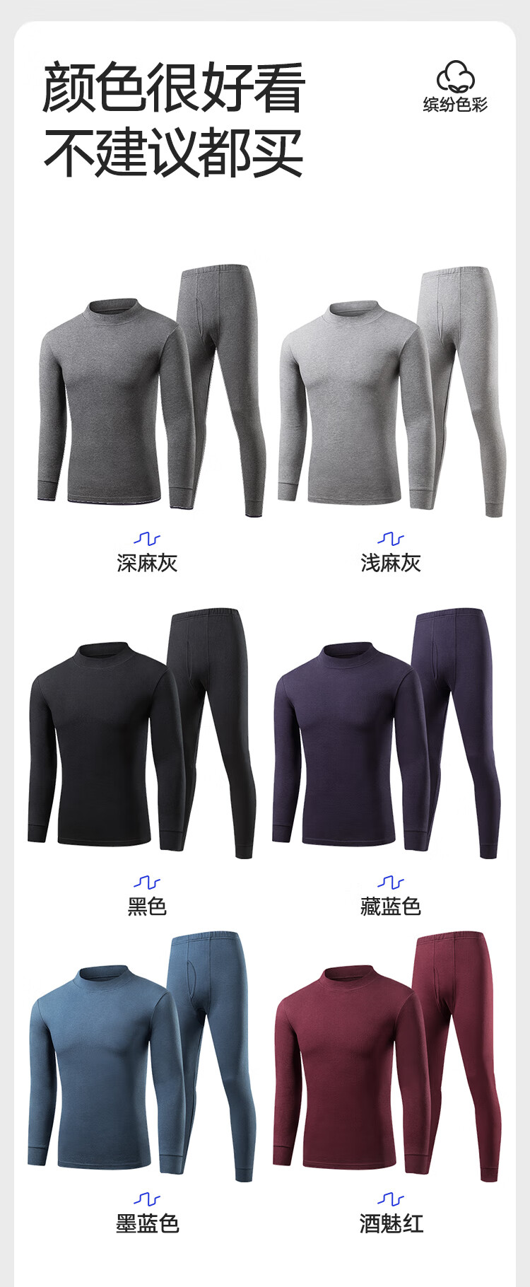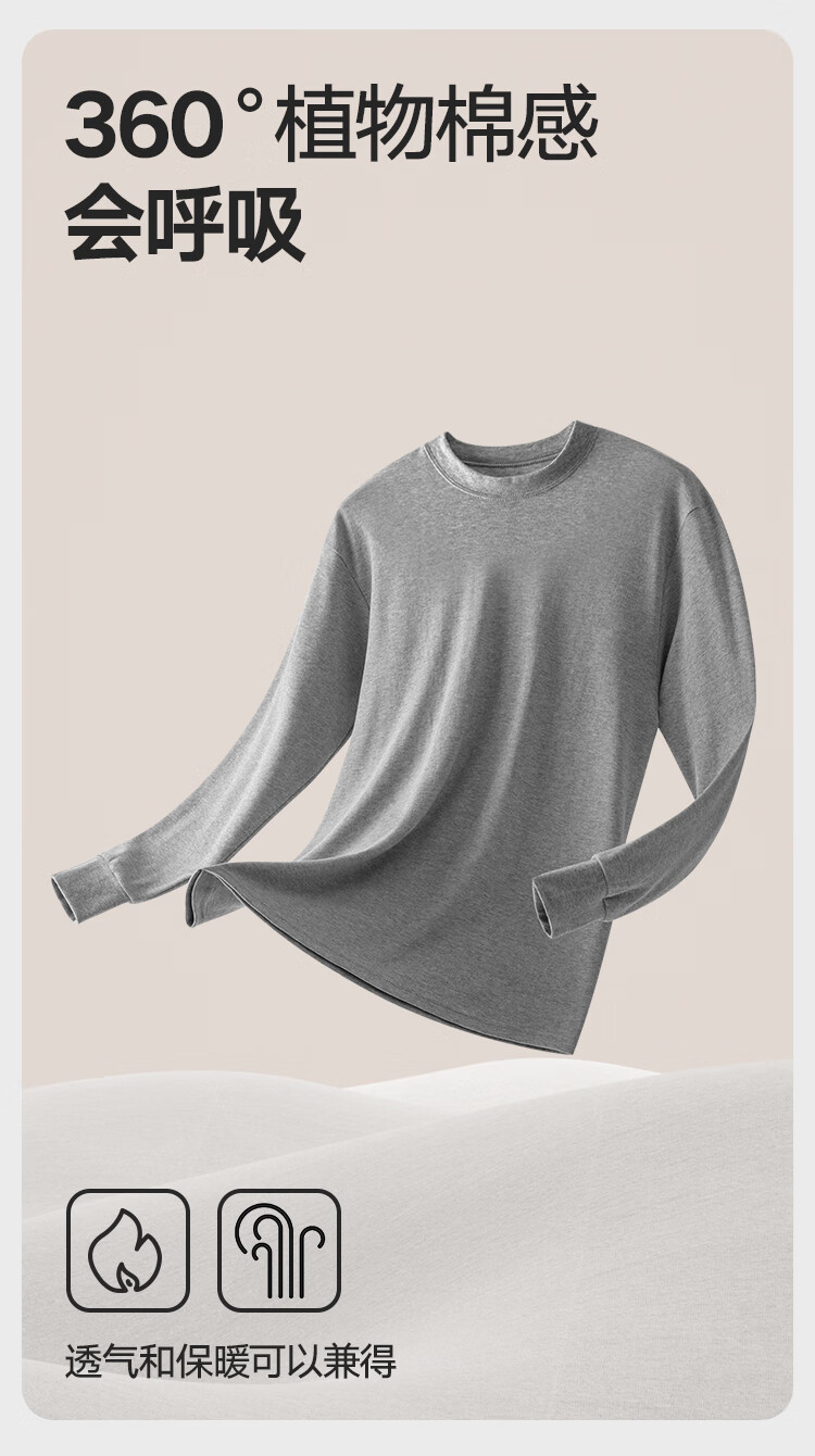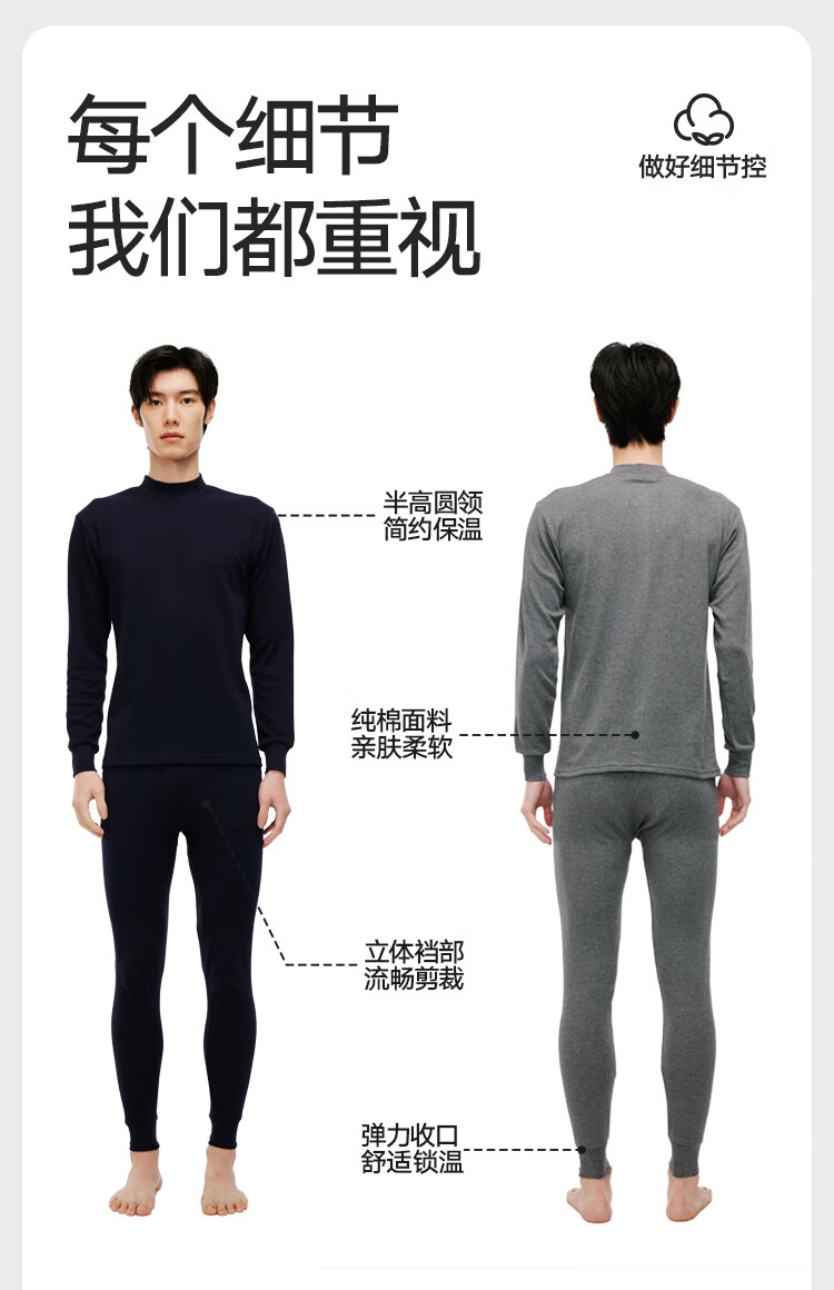 海澜之家男士秋衣秋裤男中领纯棉100%棉230g基础打底棉毛衫薄保暖内衣套装