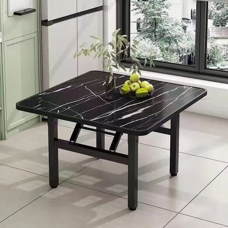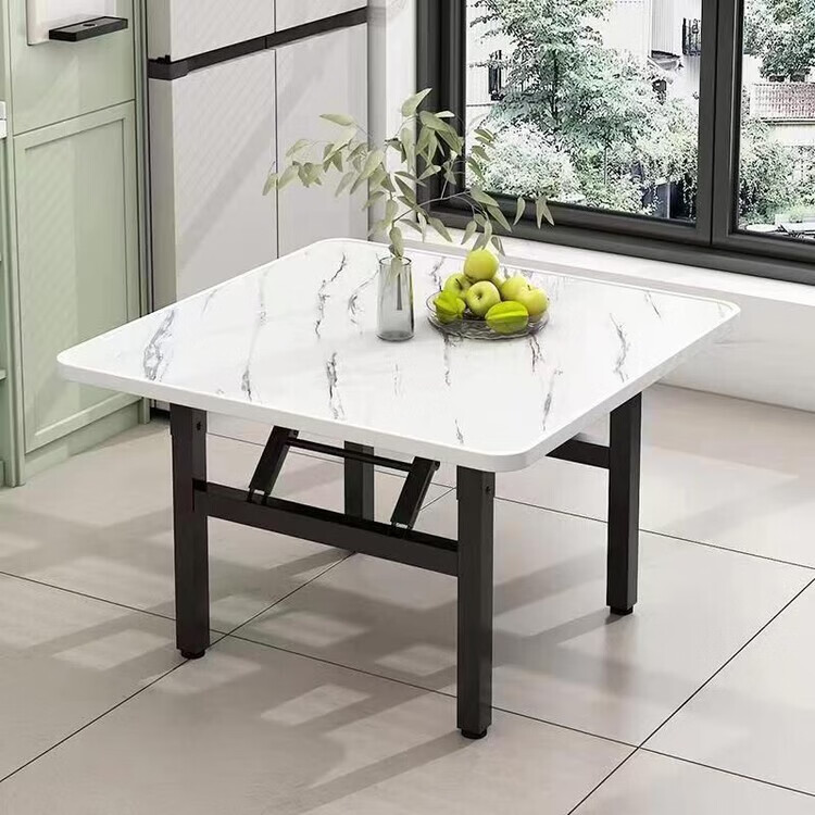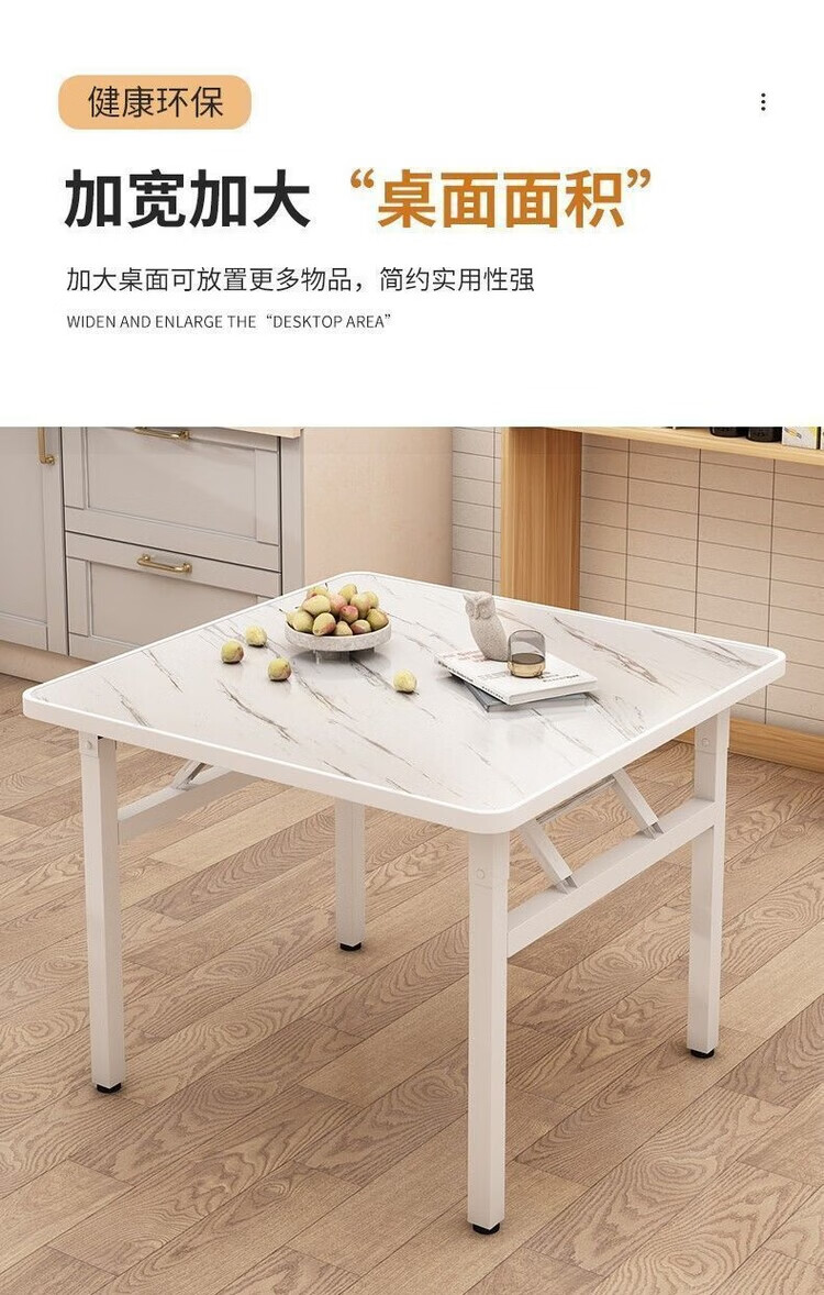 众恩折叠桌正方形吃饭桌子可折叠地摊桌夜市饭馆餐桌出租屋四方小桌子 白石纹色 60/60正方桌高度52(加厚架)