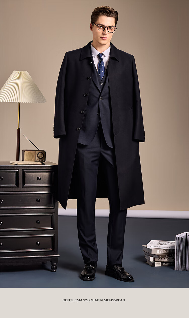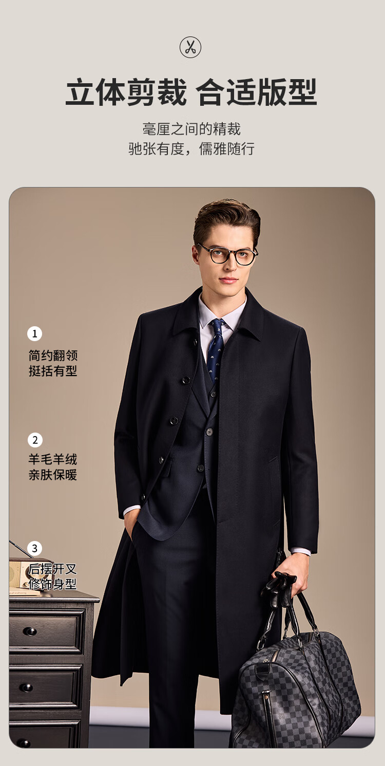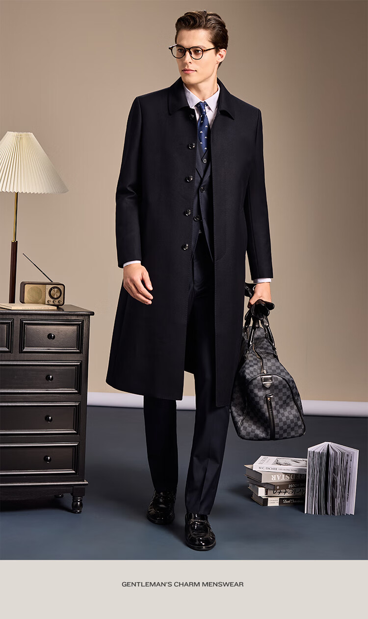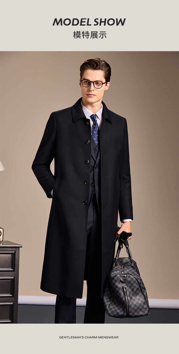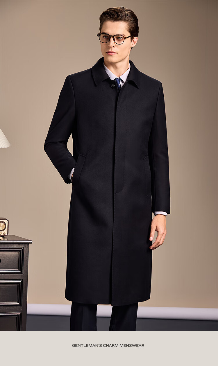 安东尼奥【高支精纺&10%羊绒+90%羊毛】长款过膝高级羊毛大衣男冬商务外套