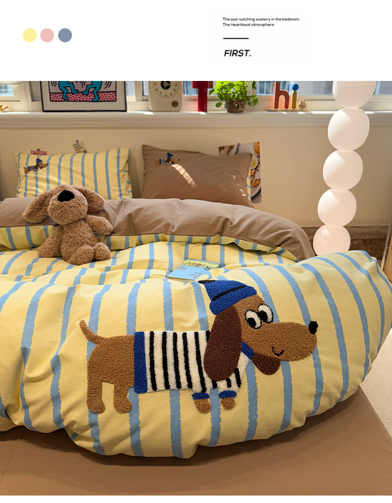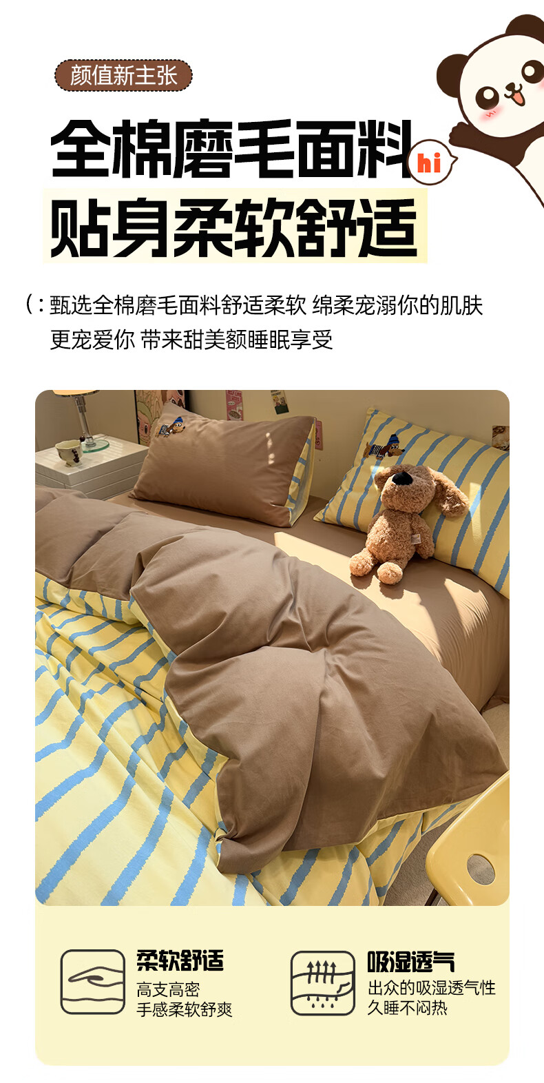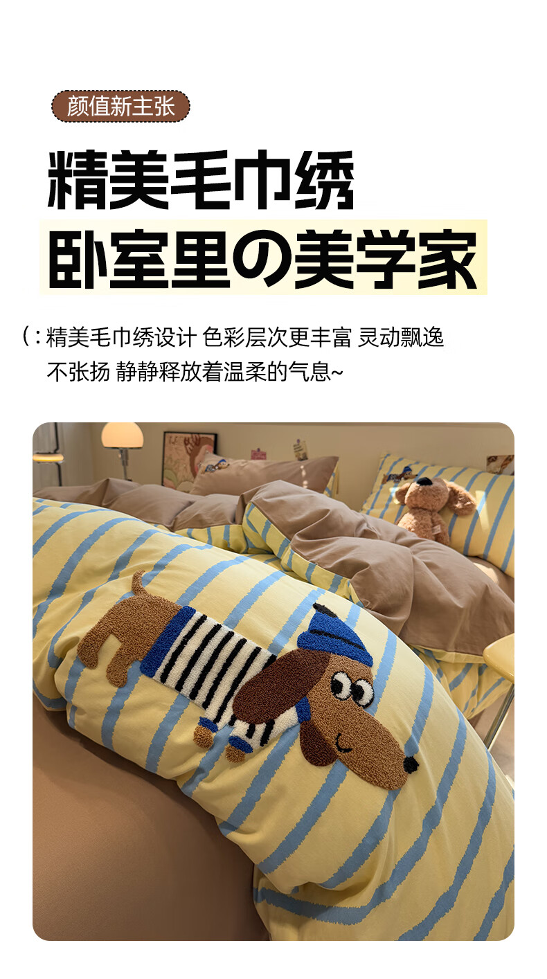 苏萱卡通毛巾绣纯棉加厚磨毛四件套全棉被套床单人三件套秋冬床上用品 红鼻小熊 2.0m 床单款 四件套-被套220x240cm