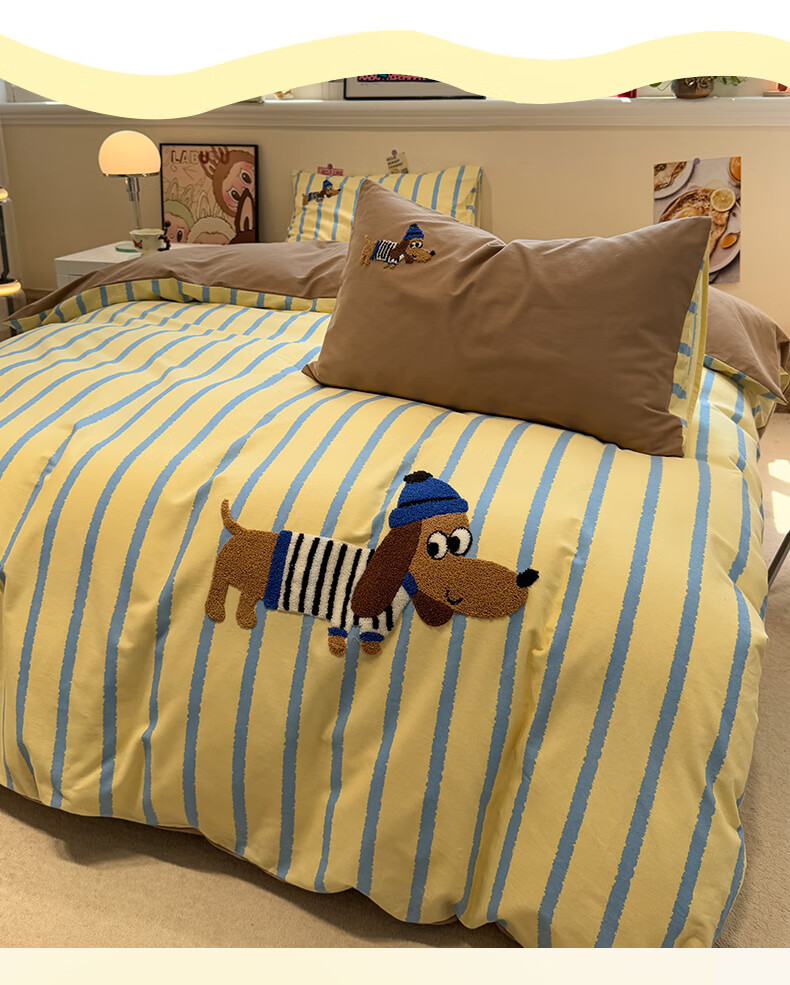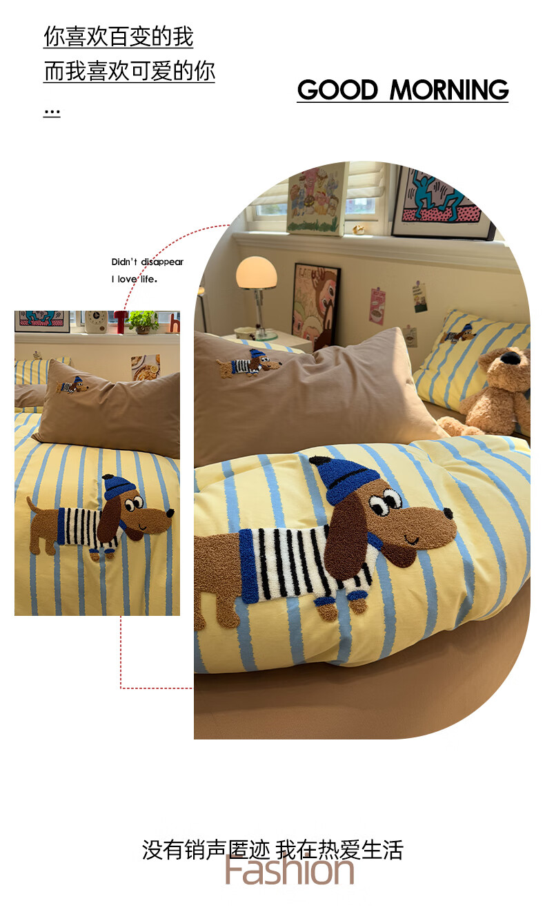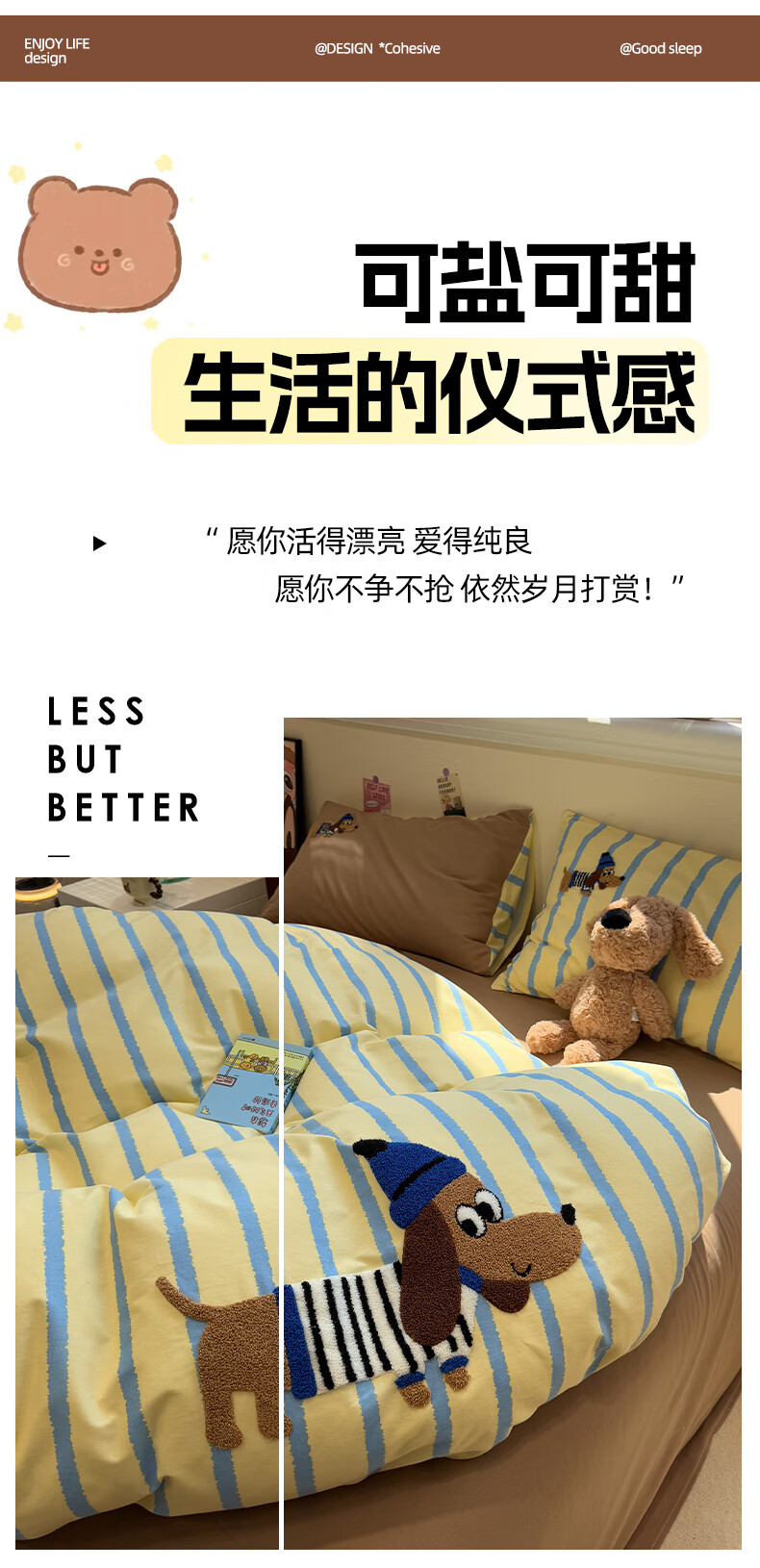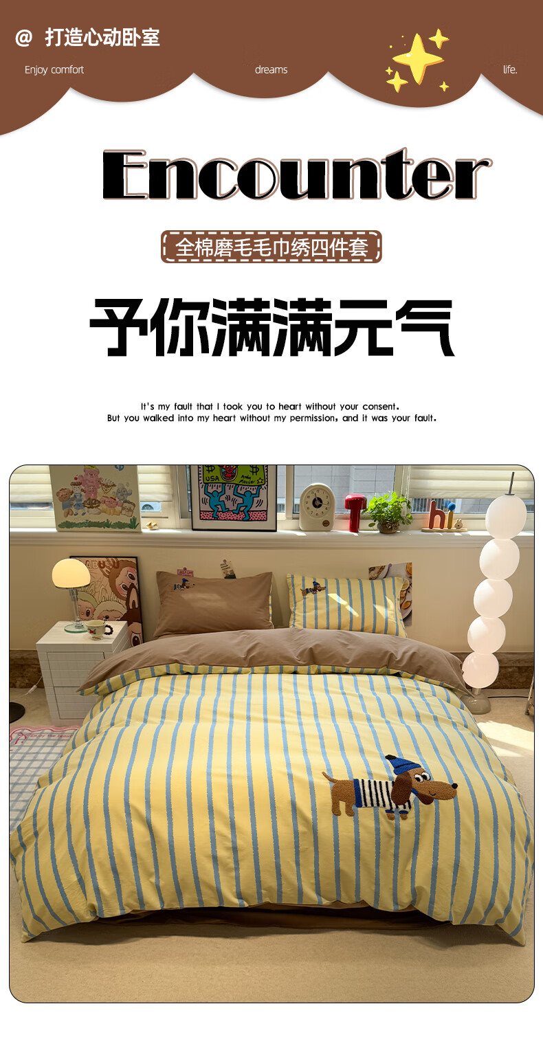 苏萱卡通毛巾绣纯棉加厚磨毛四件套全棉被套床单人三件套秋冬床上用品 红鼻小熊 2.0m 床单款 四件套-被套220x240cm