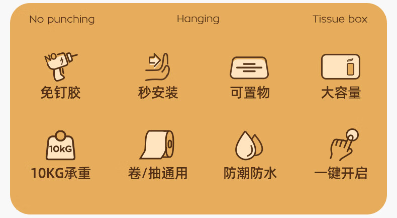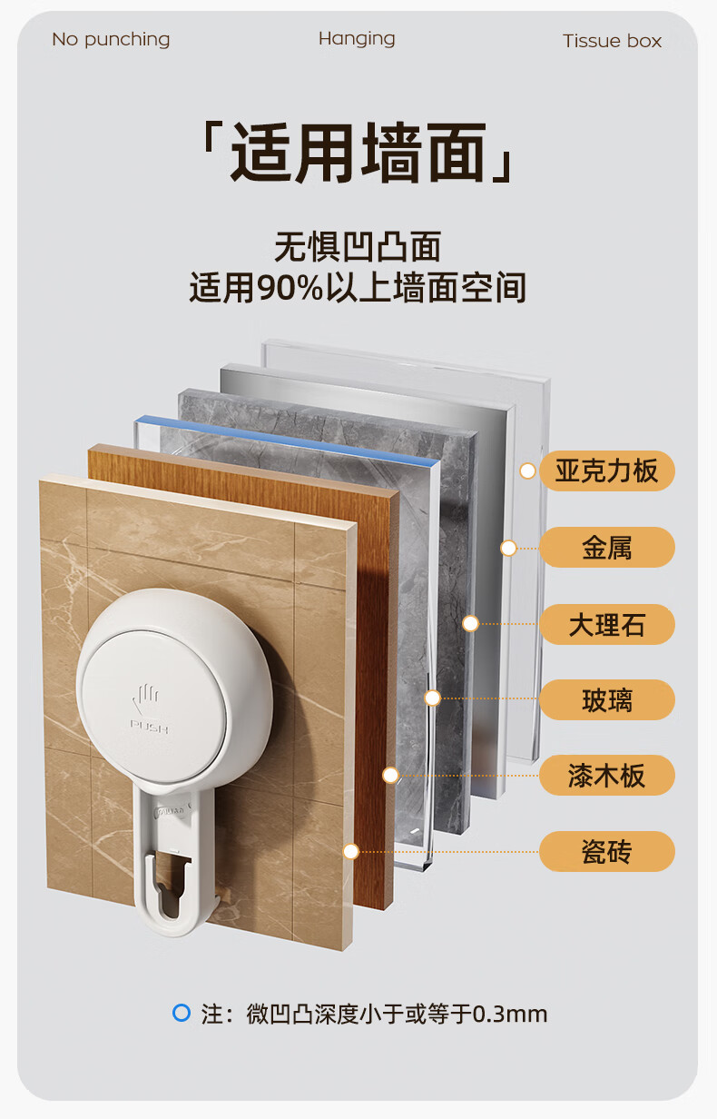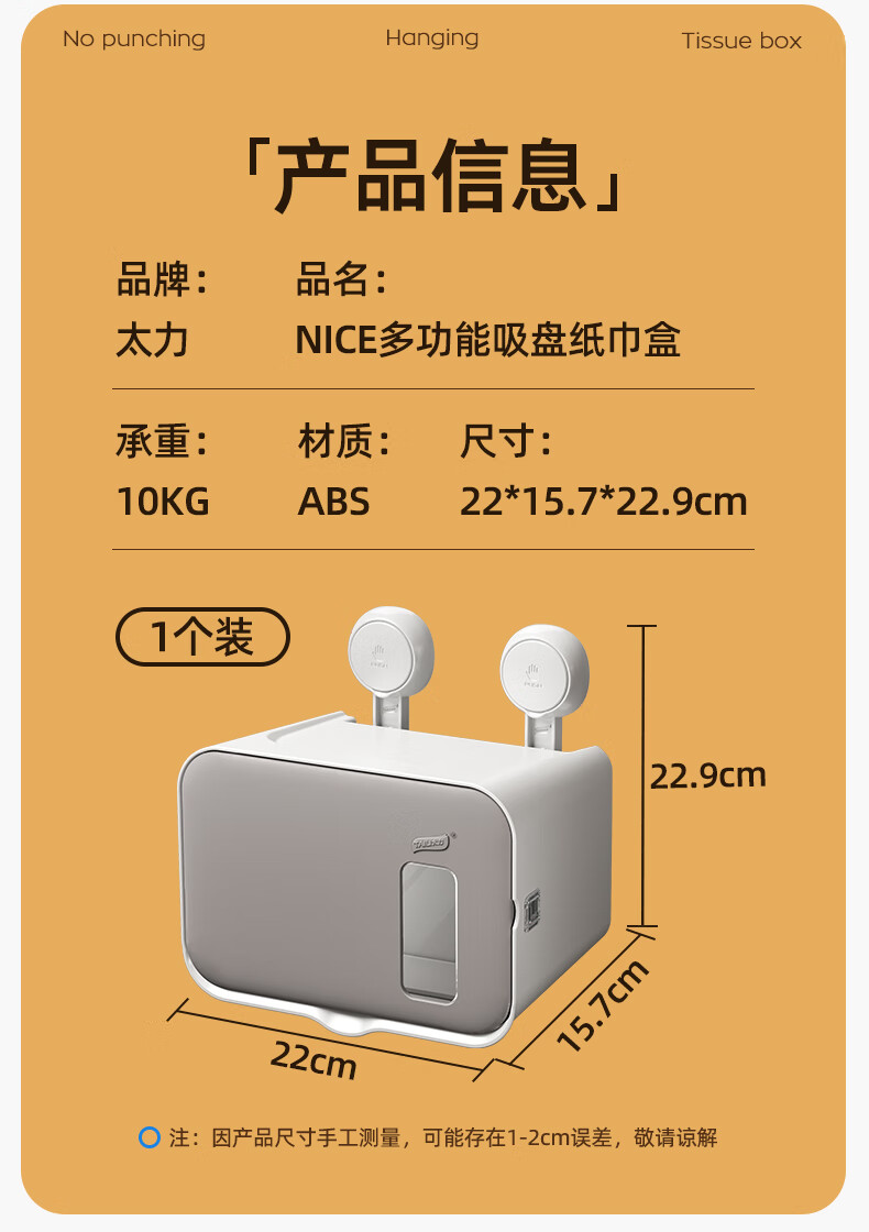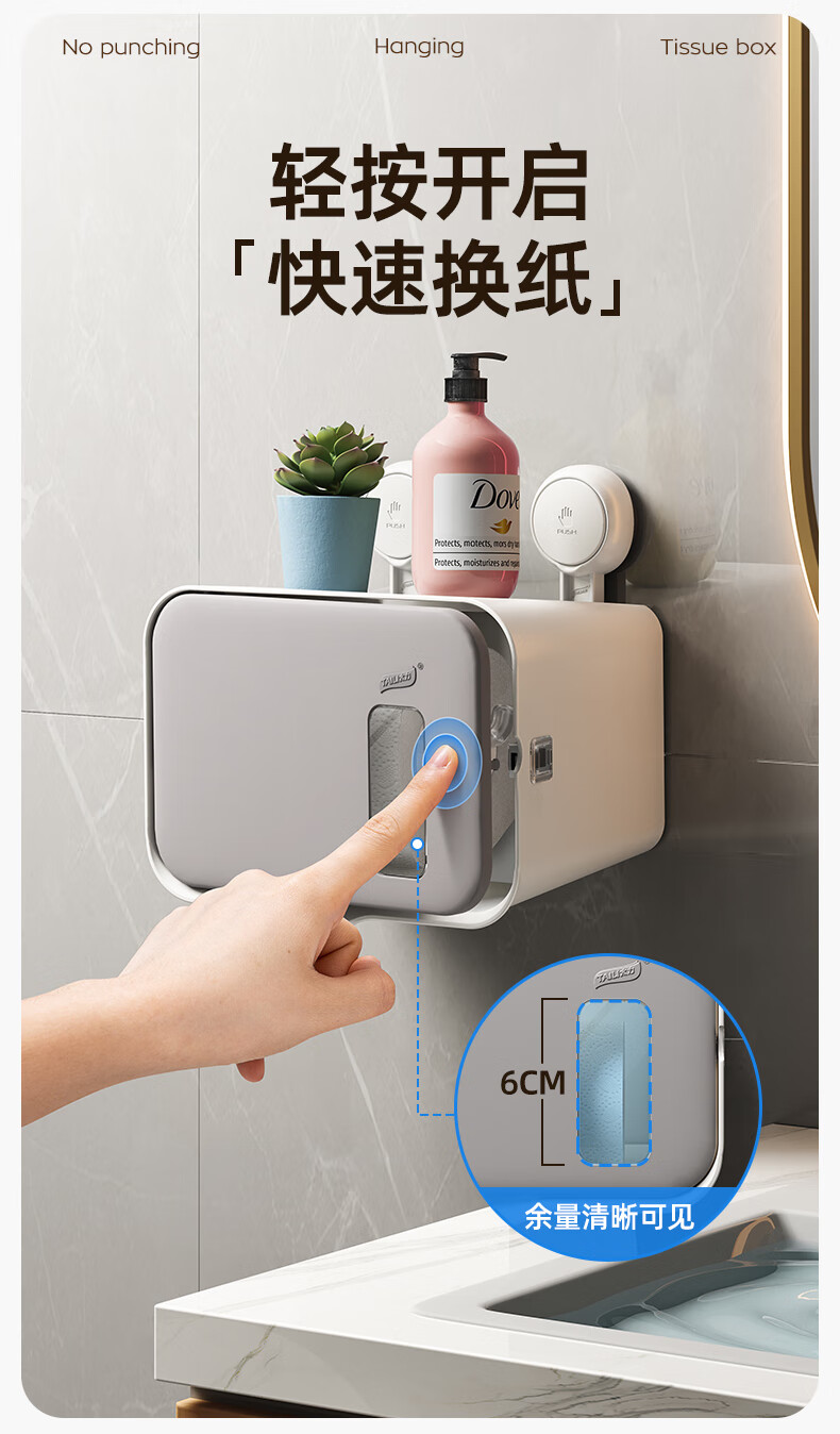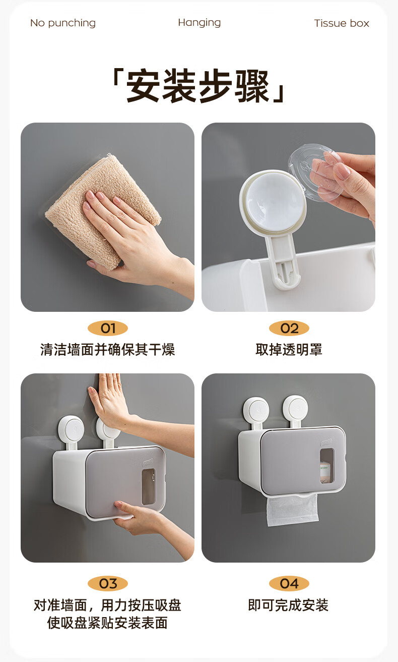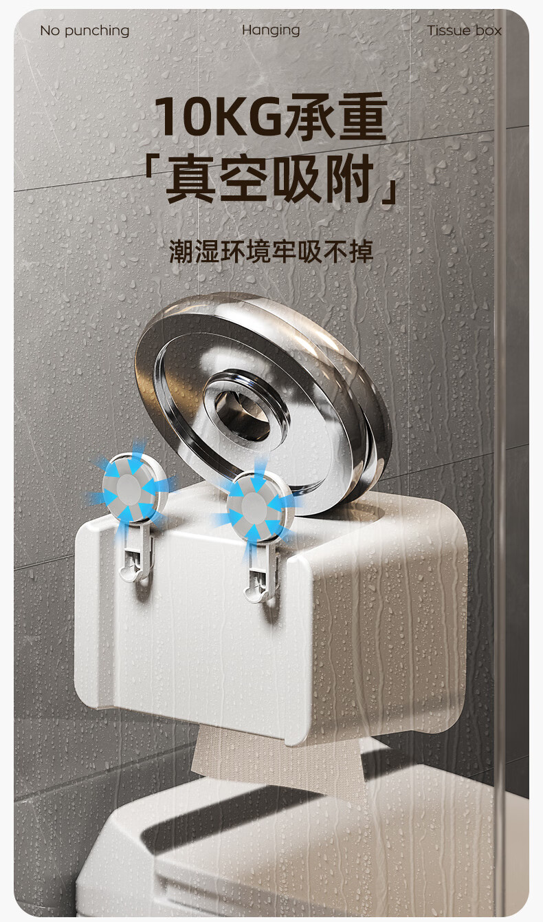 太力卫生间吸盘纸巾盒免打孔壁挂式抽纸盒置物架厕纸多功能卷纸挂盒 灰白色【卷/抽纸两用】