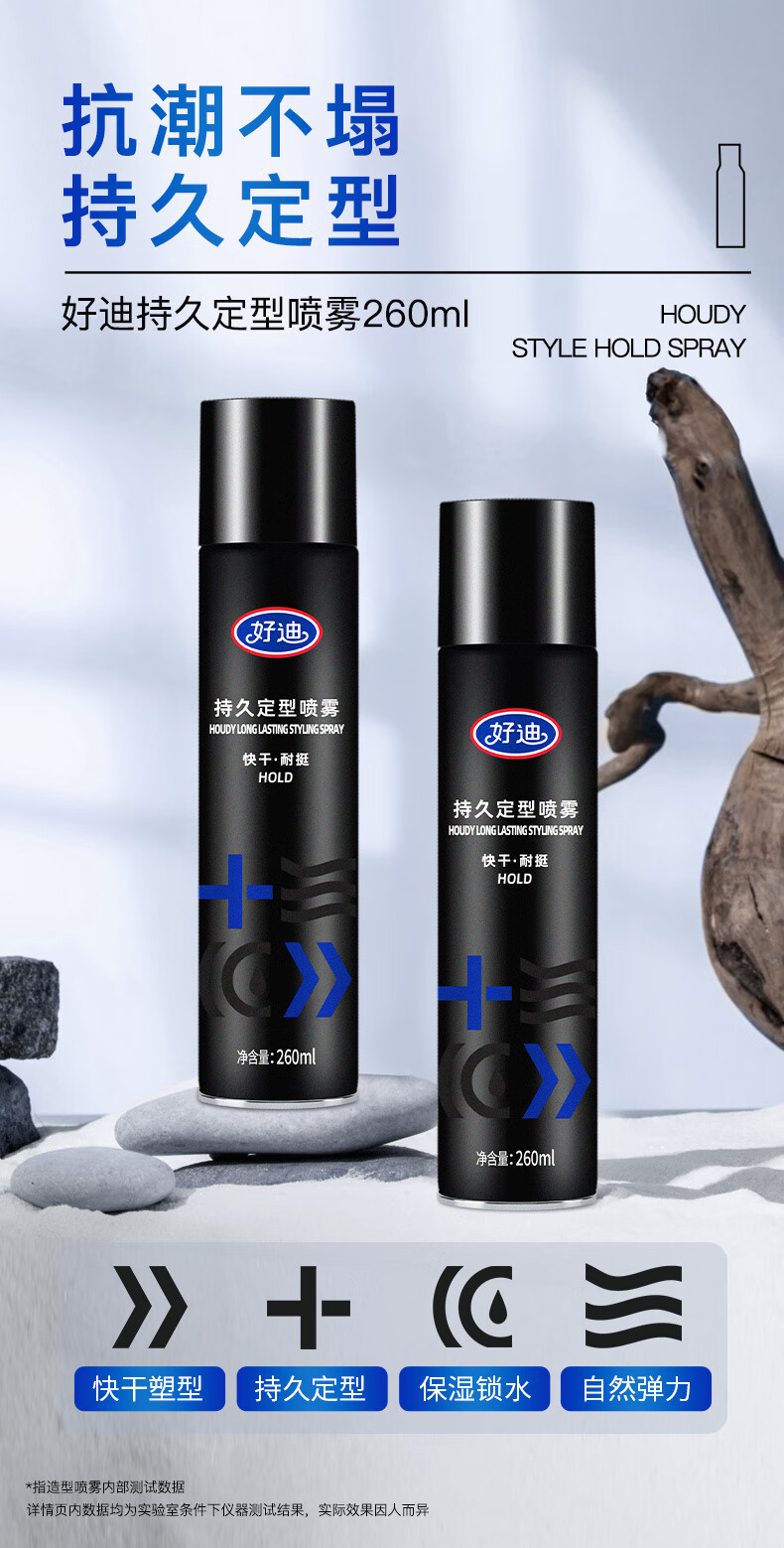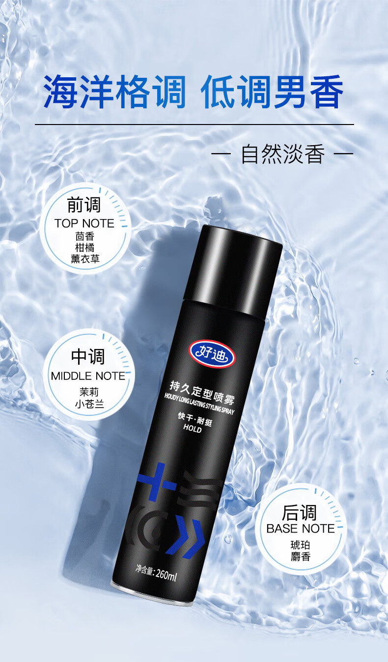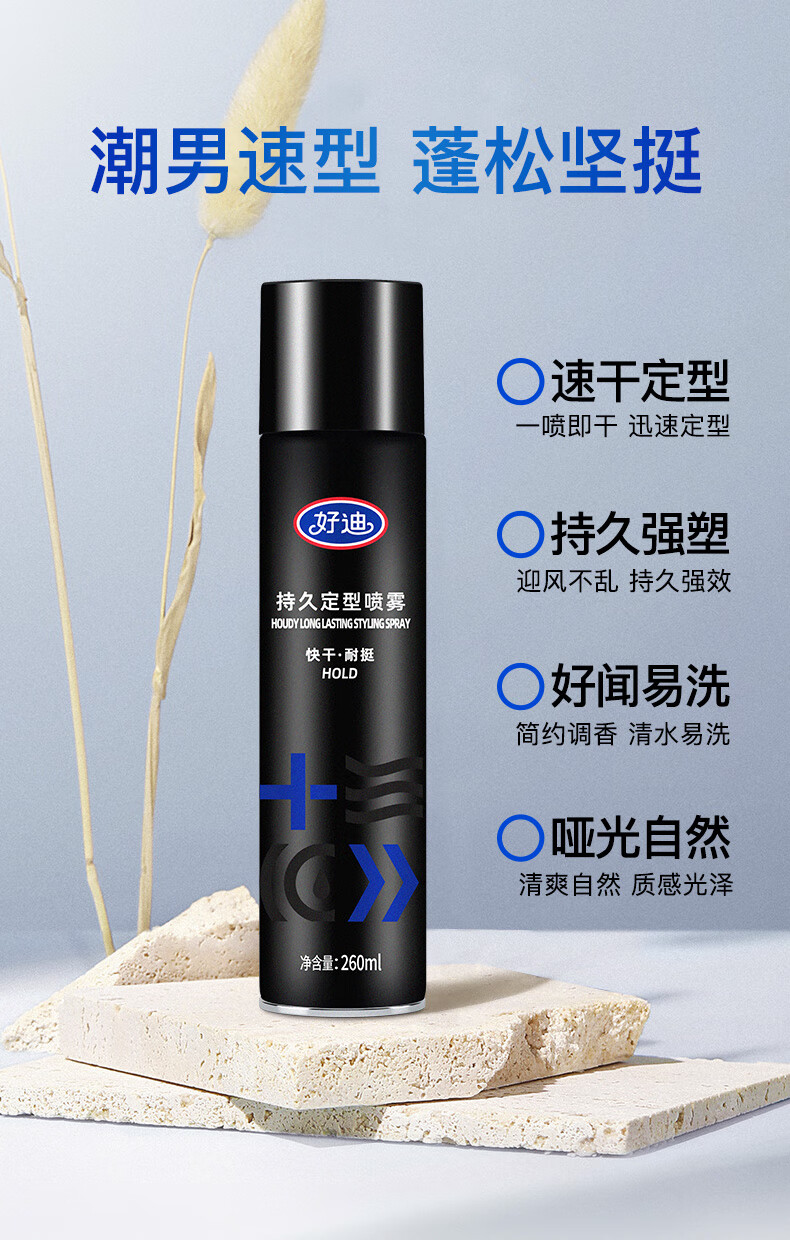 好迪定型喷雾男士女士快干耐挺持久造型蓬松发胶260ML头发保湿干胶