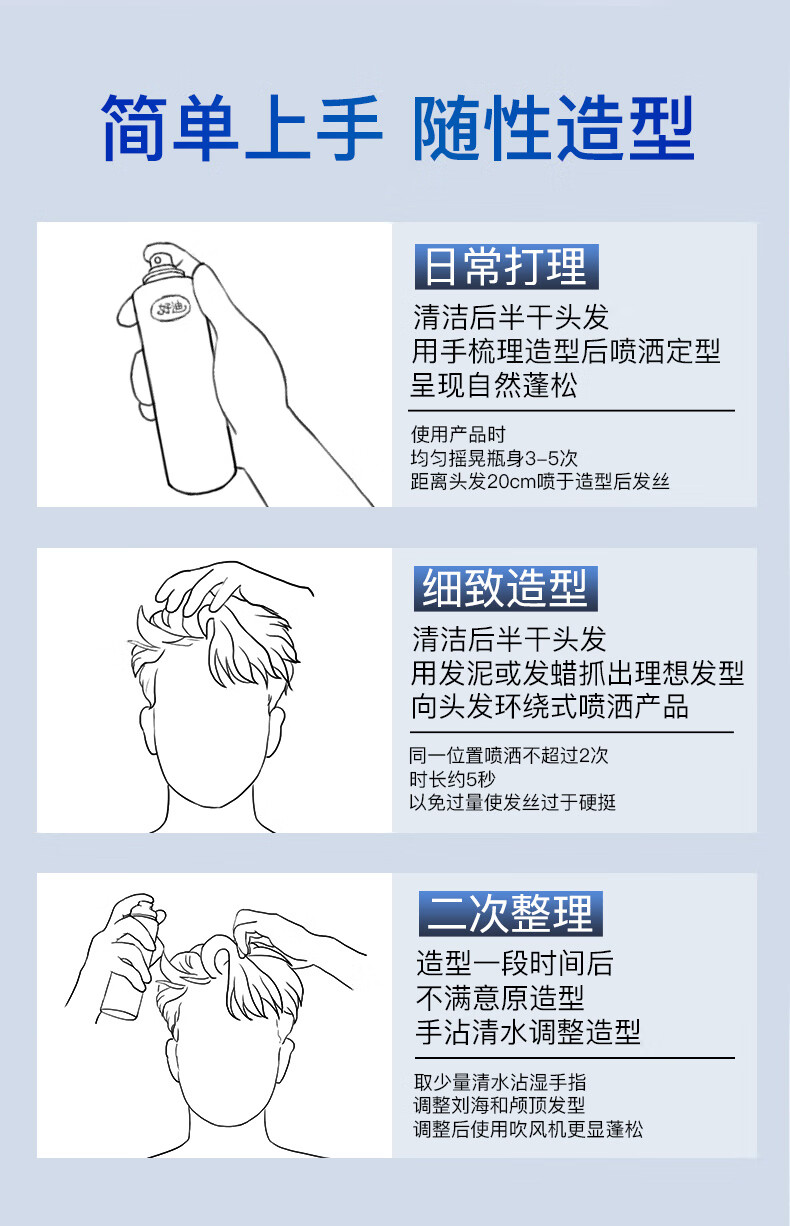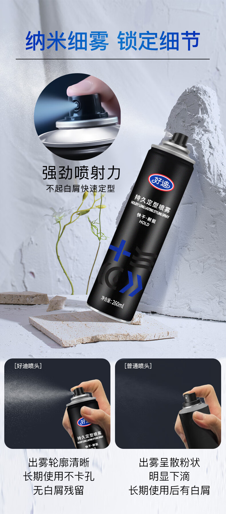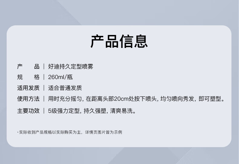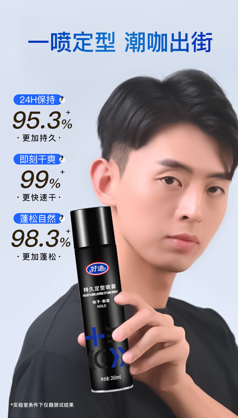 好迪定型喷雾男士女士快干耐挺持久造型蓬松发胶260ML头发保湿干胶