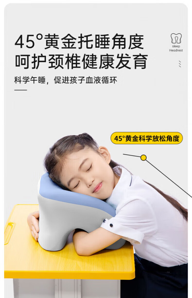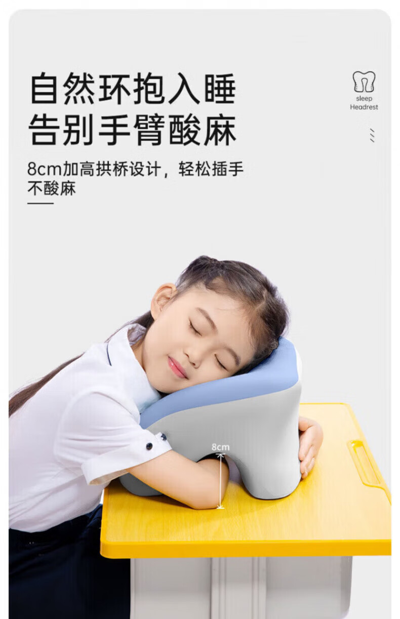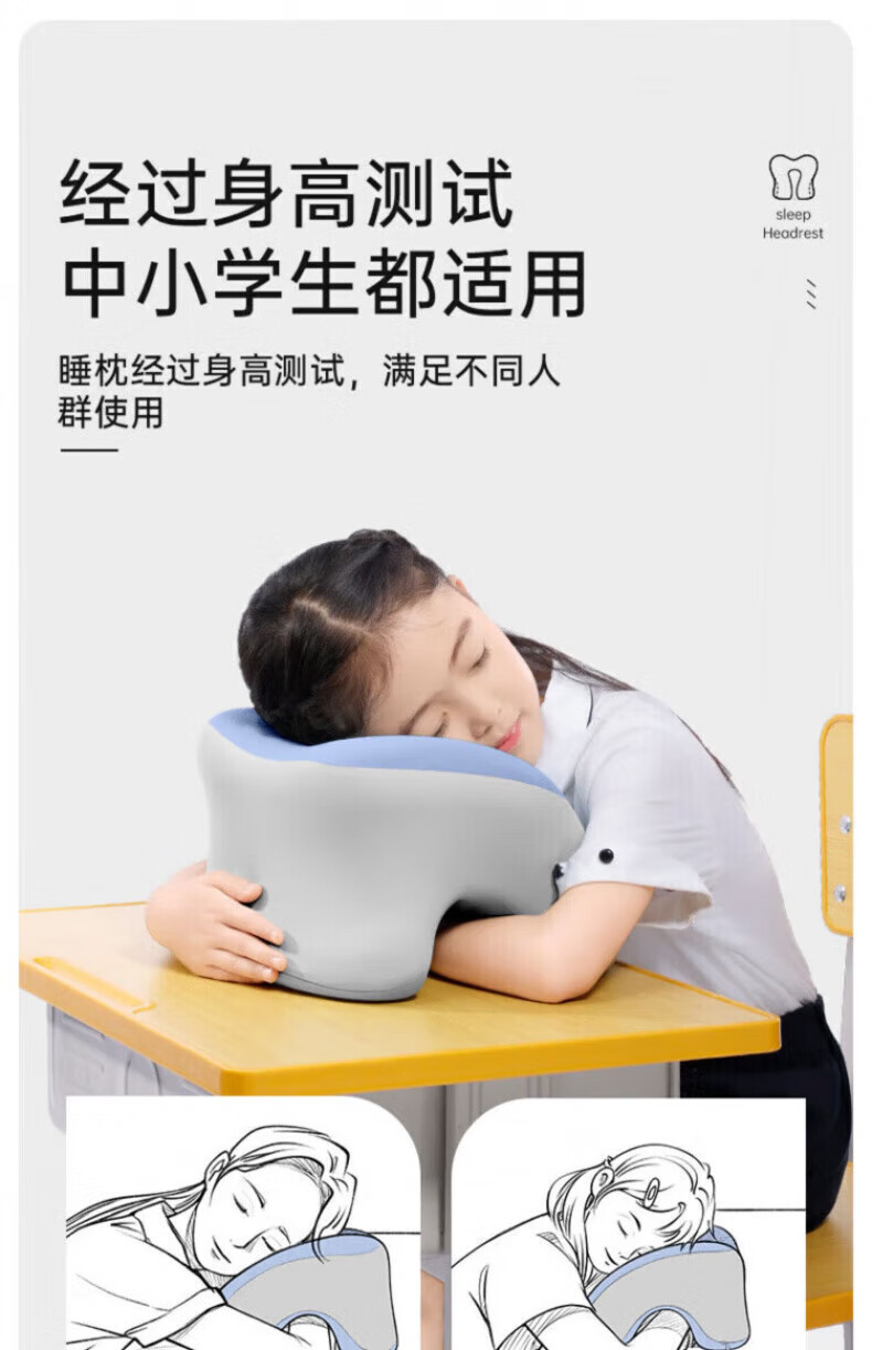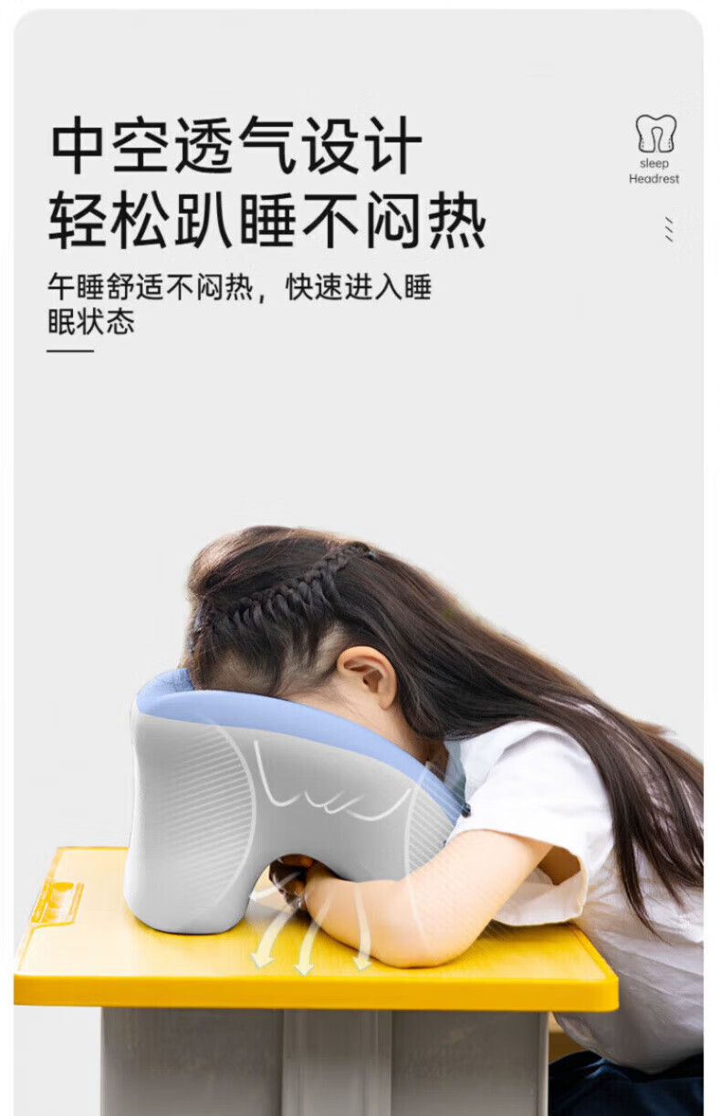 DEATKN日本儿童午睡枕小学生专用趴睡枕教室睡觉神器初高中生专用 [升级中空透气款·深空灰]