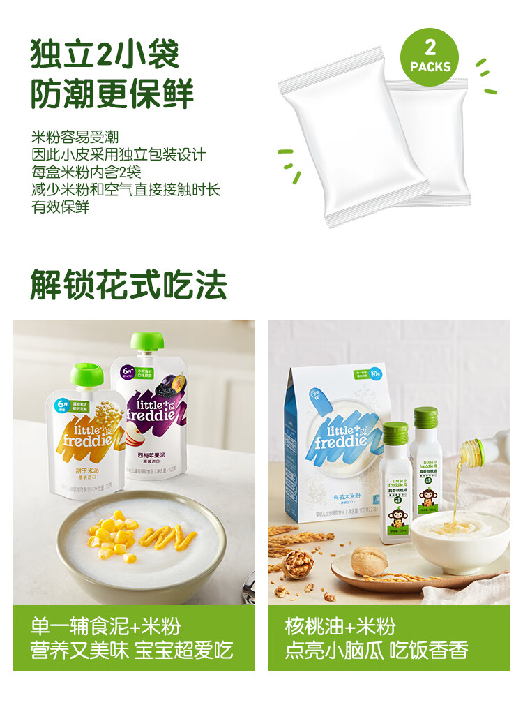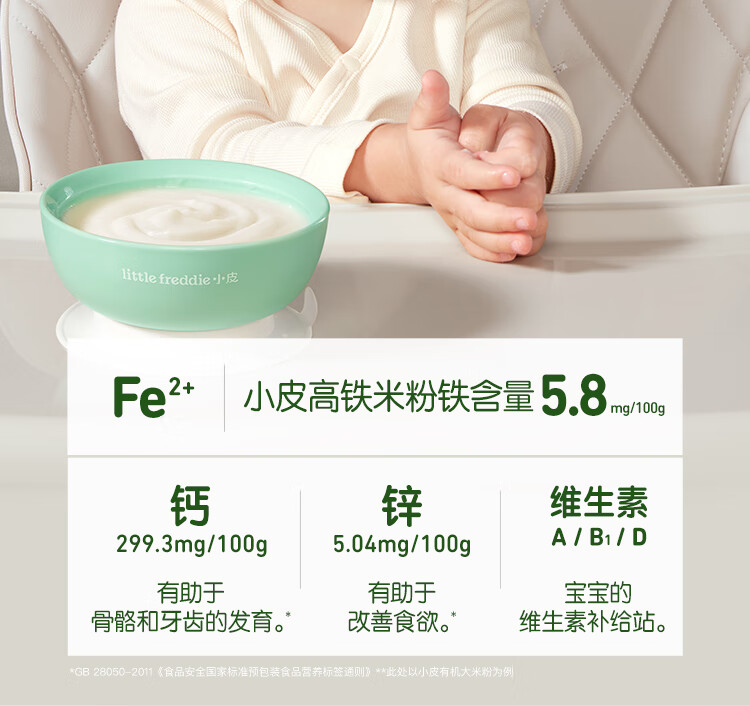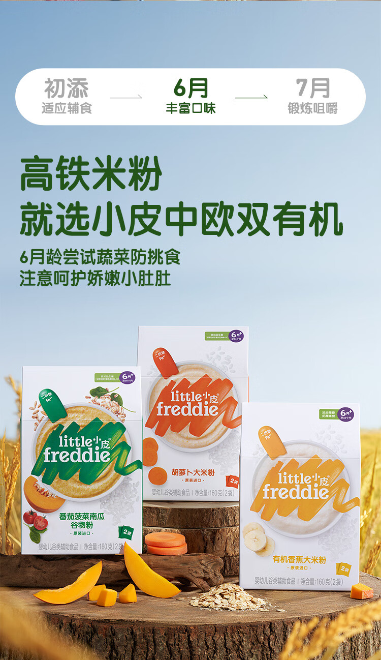 小皮(Little Freddie)有机高铁米粉番茄菠菜南瓜多谷物味160g*1盒 益生菌宝宝婴儿米糊