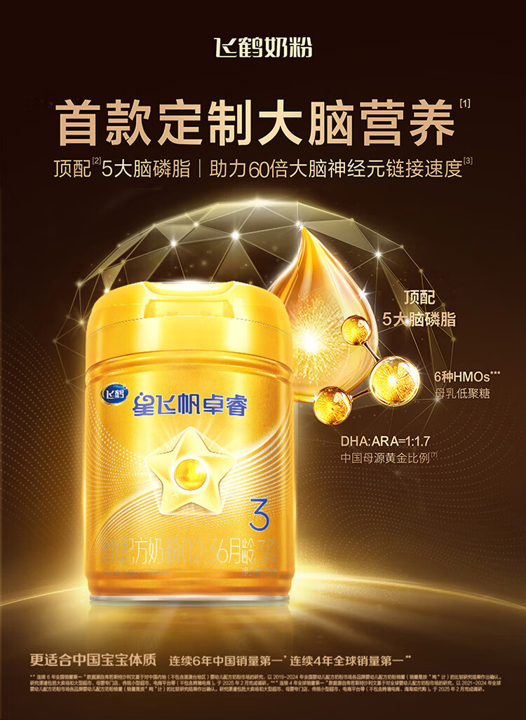 飞鹤星飞帆卓睿 幼儿配方奶粉3段(1-3岁)750g 乳铁蛋白【老爸抽检】