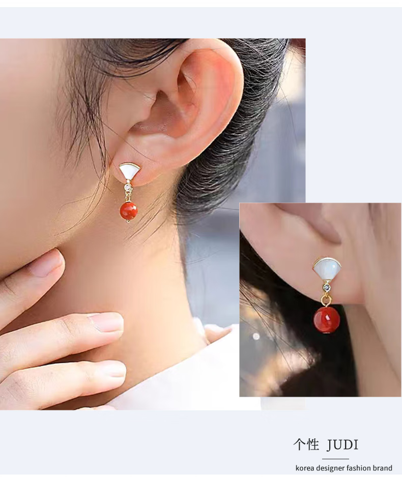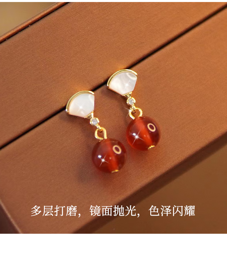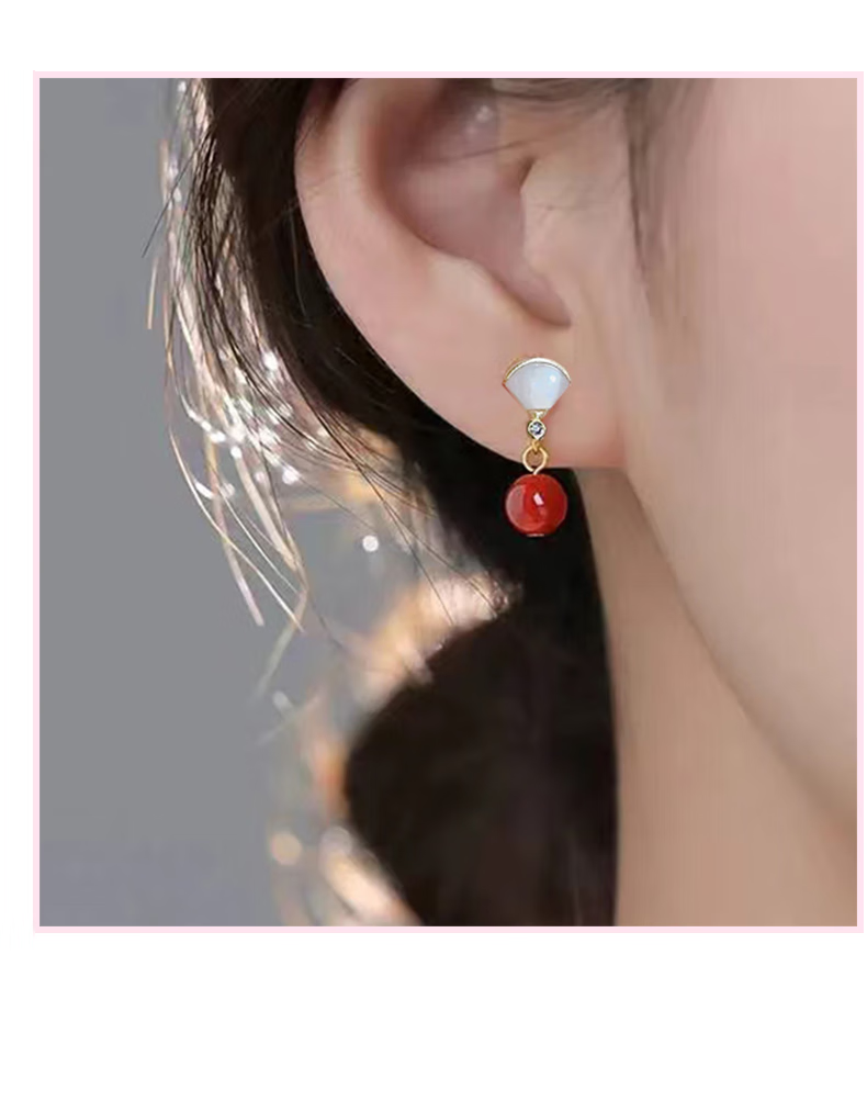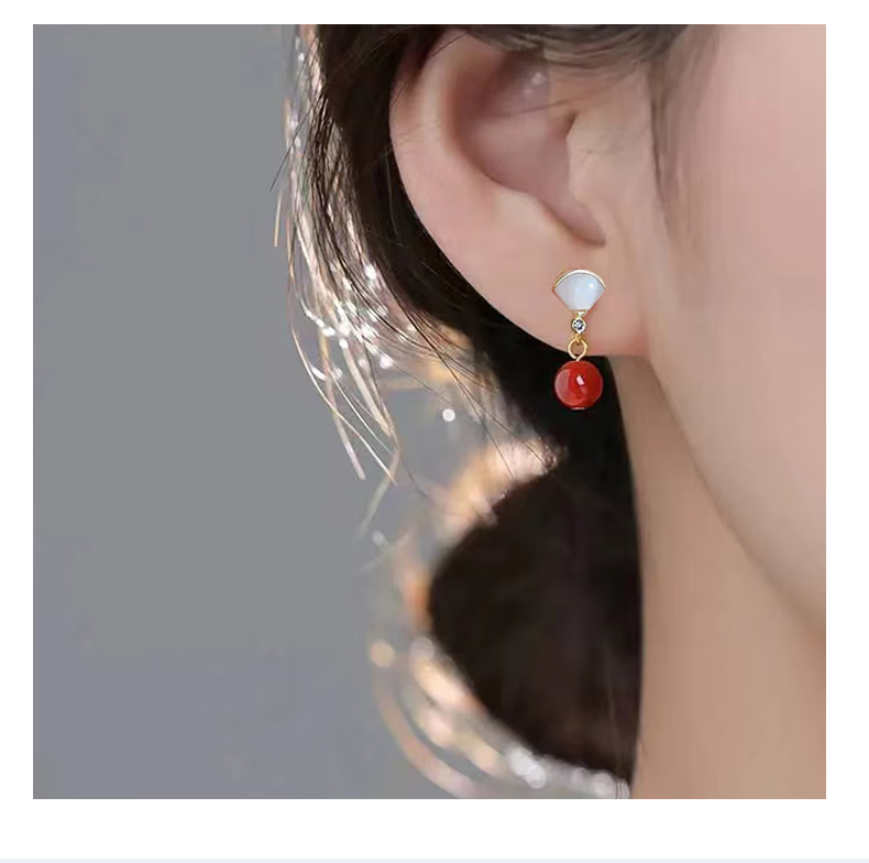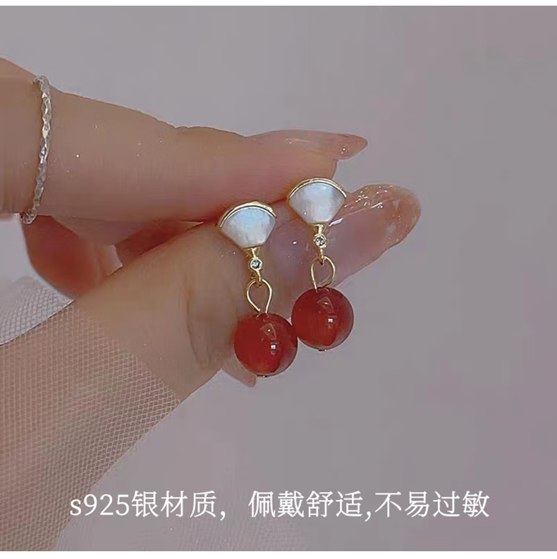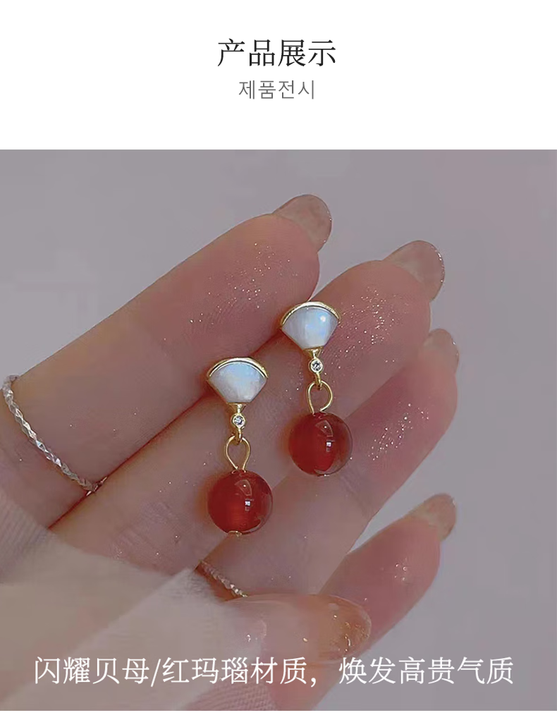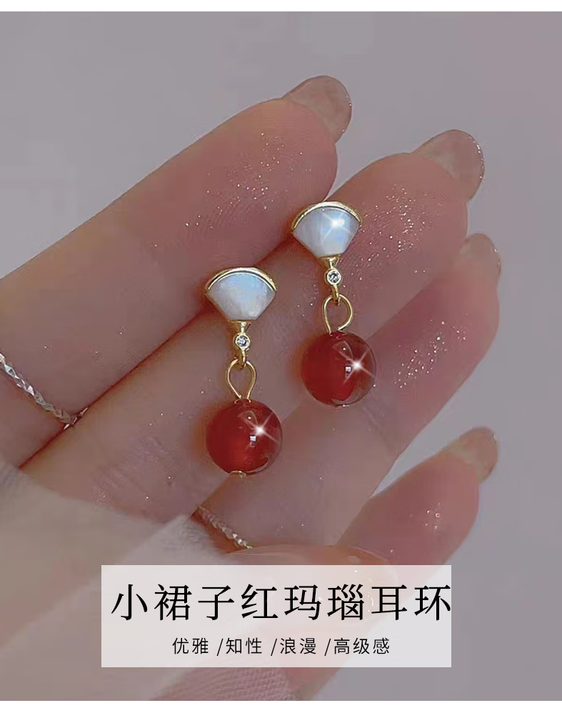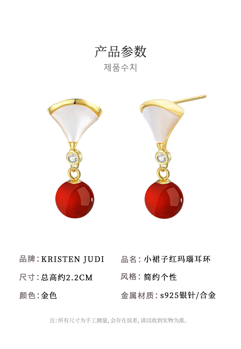 KRISTEN JUDI红色耳环女银针长款扇形贝母玛瑙耳饰小裙子耳钉送女友闺蜜礼物 金色生日礼物送女友老婆妈妈闺蜜