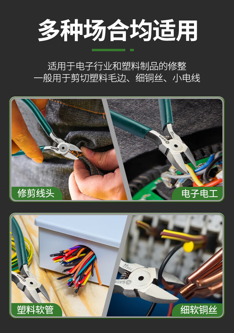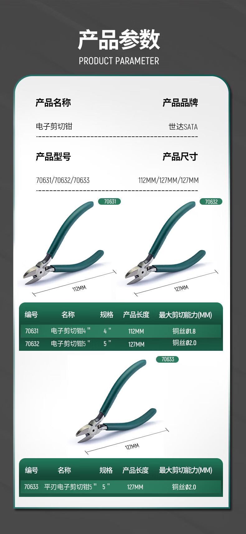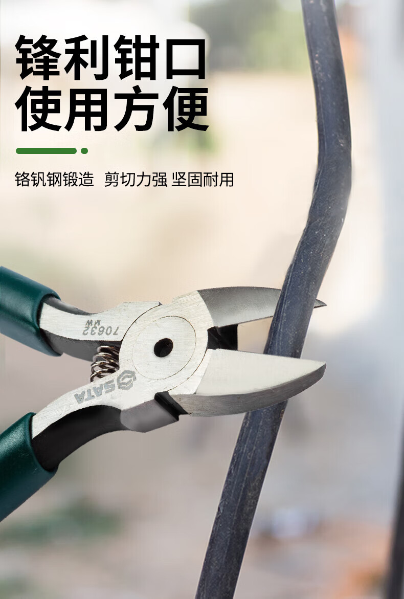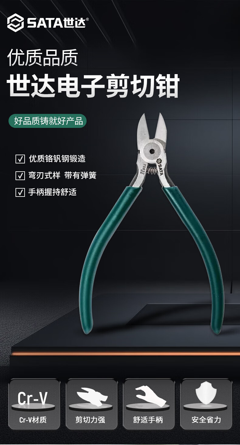 世达(SATA)工业专用塑料水口钳剥线钳电子钳剪切钳工具 5" 70632