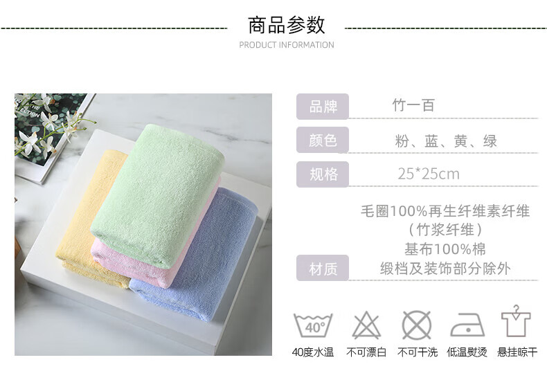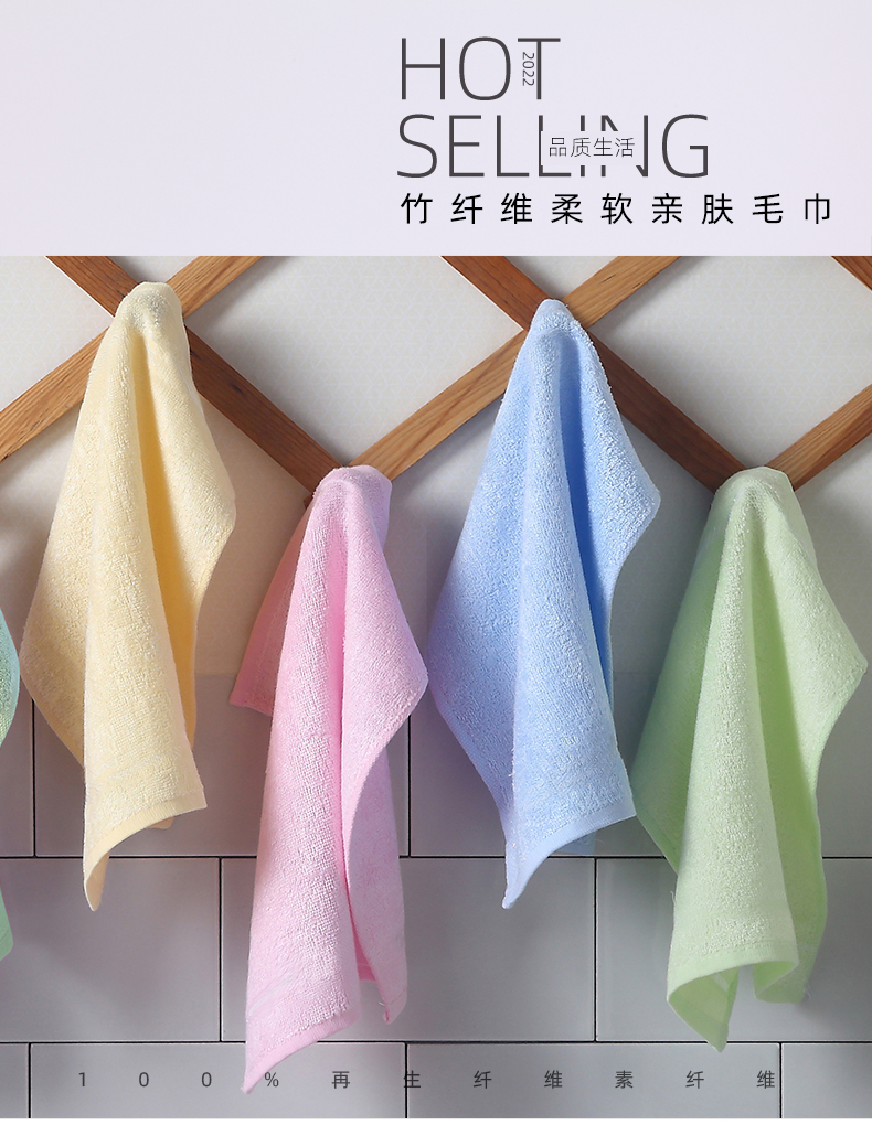 竹一百 方巾4条竹纤维成人小毛巾洗脸巾擦手巾吸水面巾儿童毛巾25*25cm