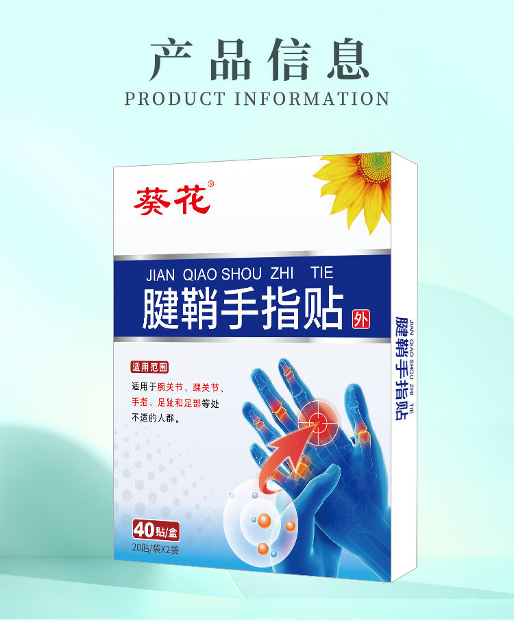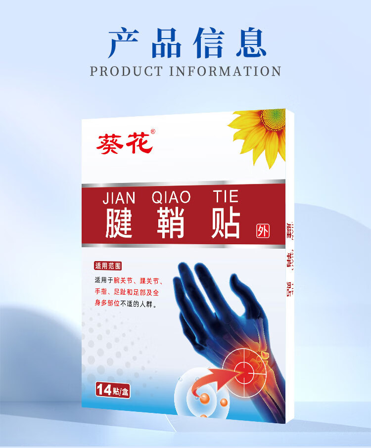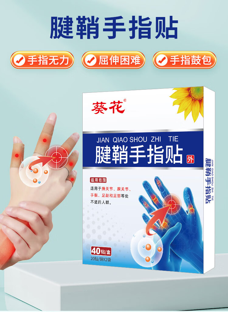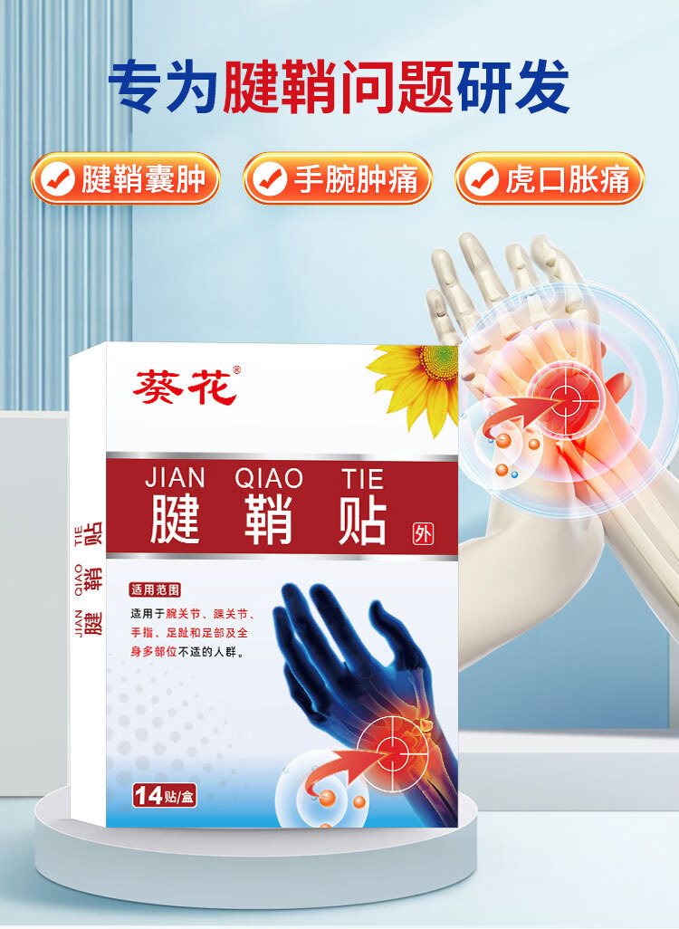 葵花腱鞘贴手指关节手腕胀痛网球肘麻痹疼痛鼠标手鼓包草本膏药腱鞘贴 【2盒28贴】腱鞘贴7*10cm