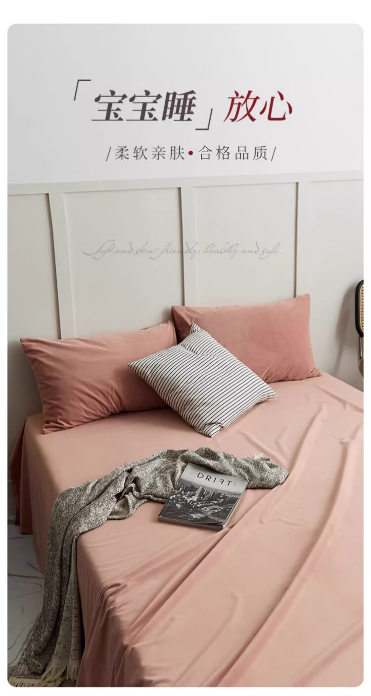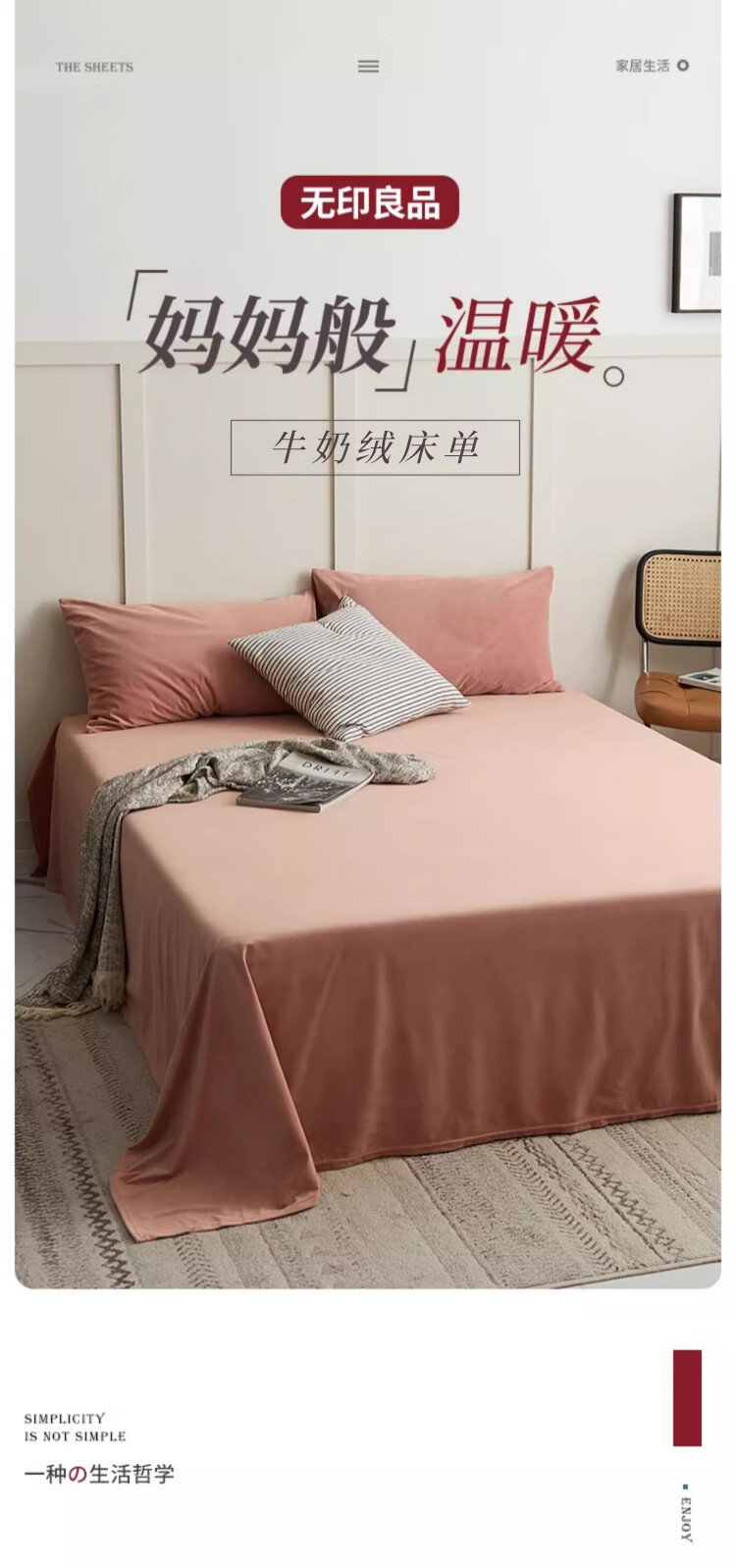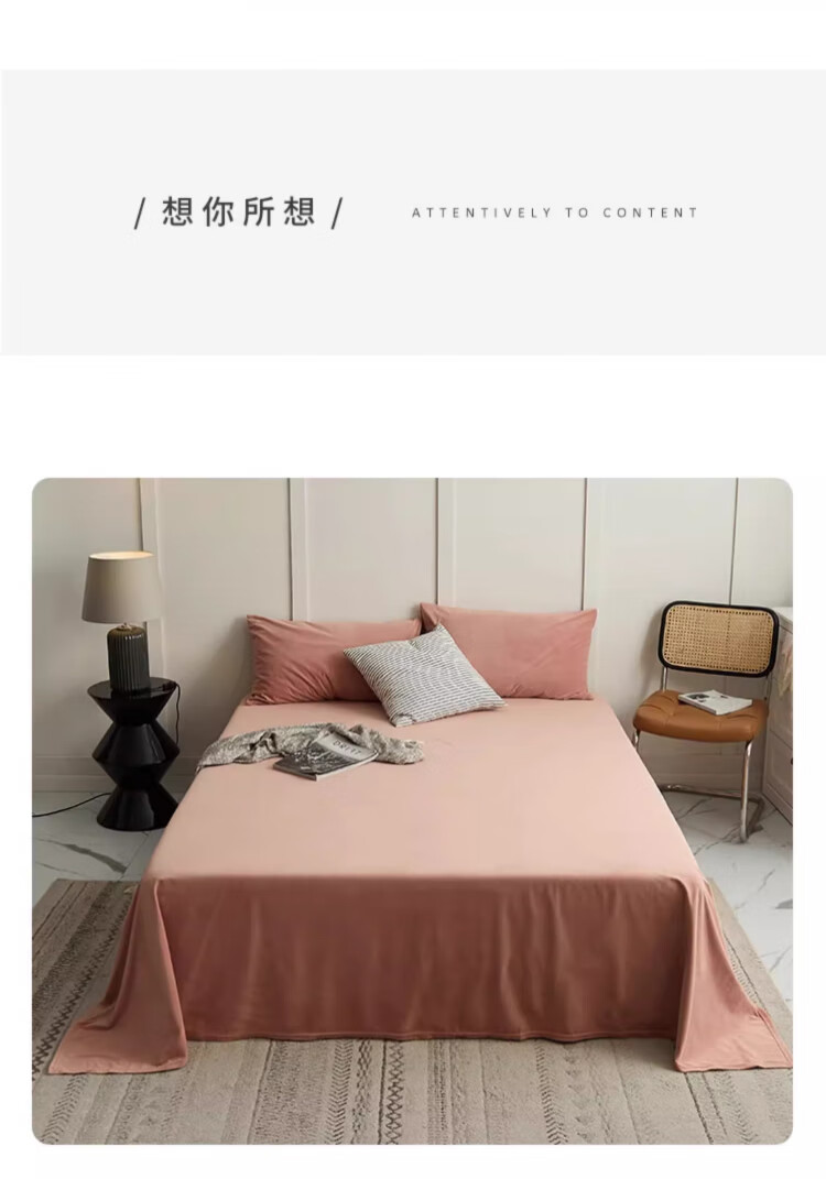 无印良品牛奶绒床单单件 法兰绒卷边被单冬季加厚双人床罩 230*245cm橘粉