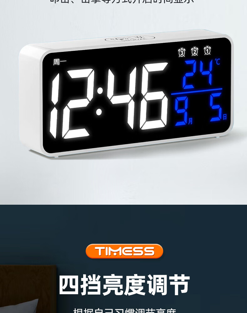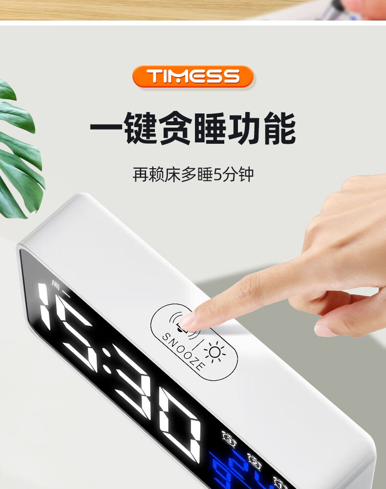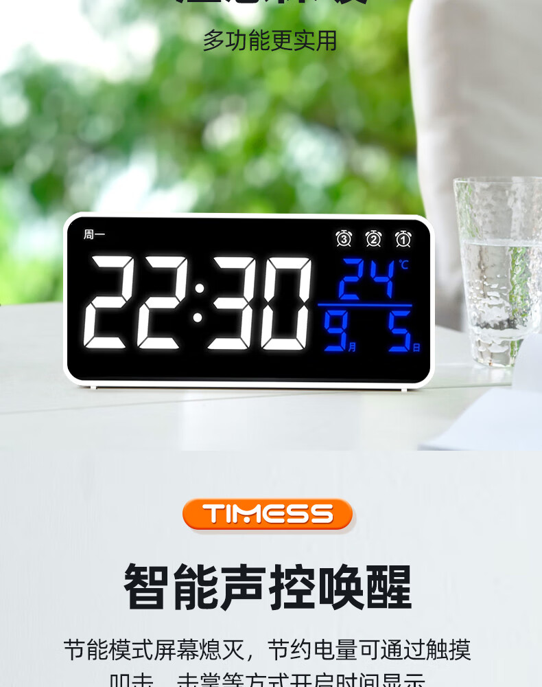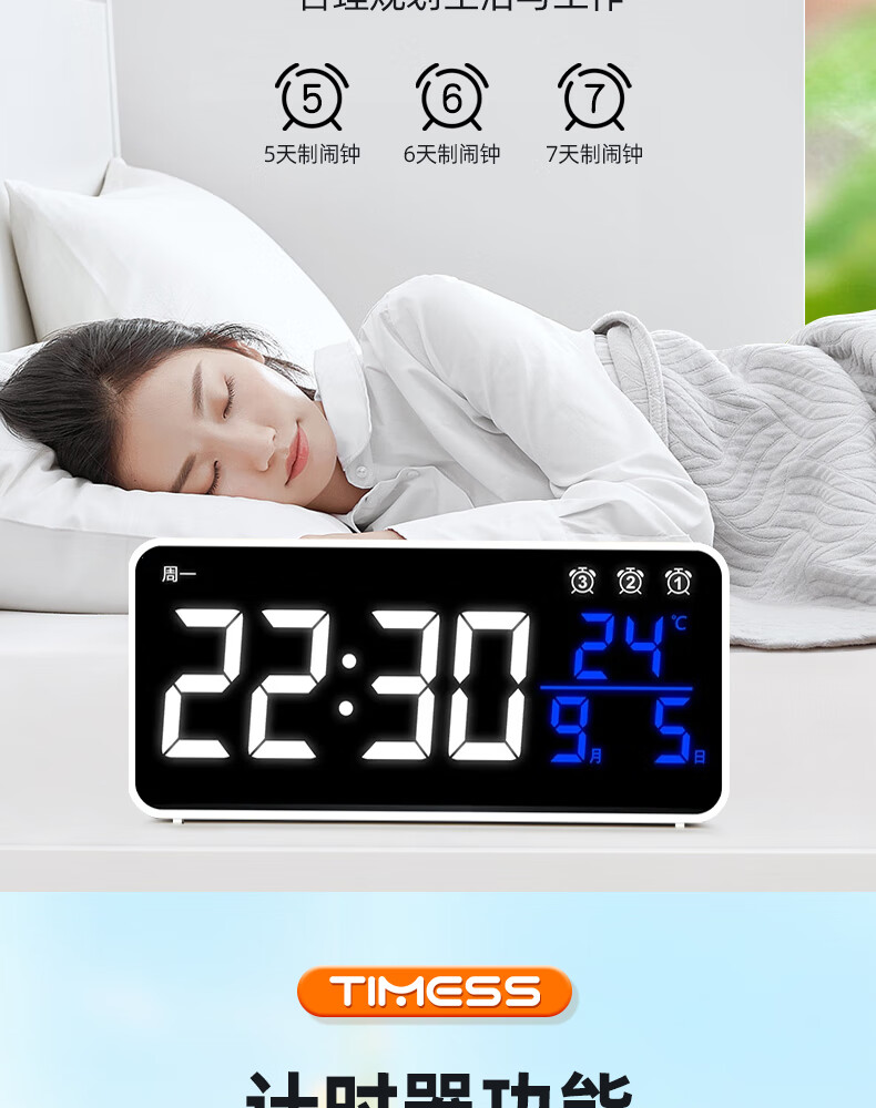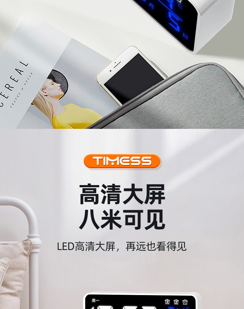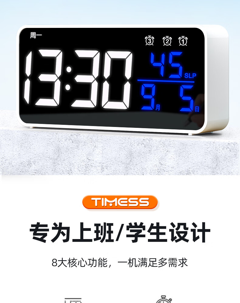 Timess闹钟学生专用起床神器儿童充电智能倒计时器电子桌面超大声时钟