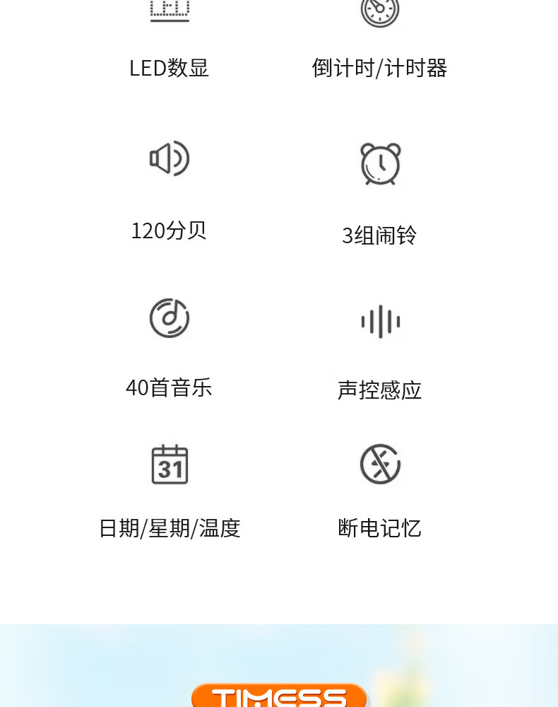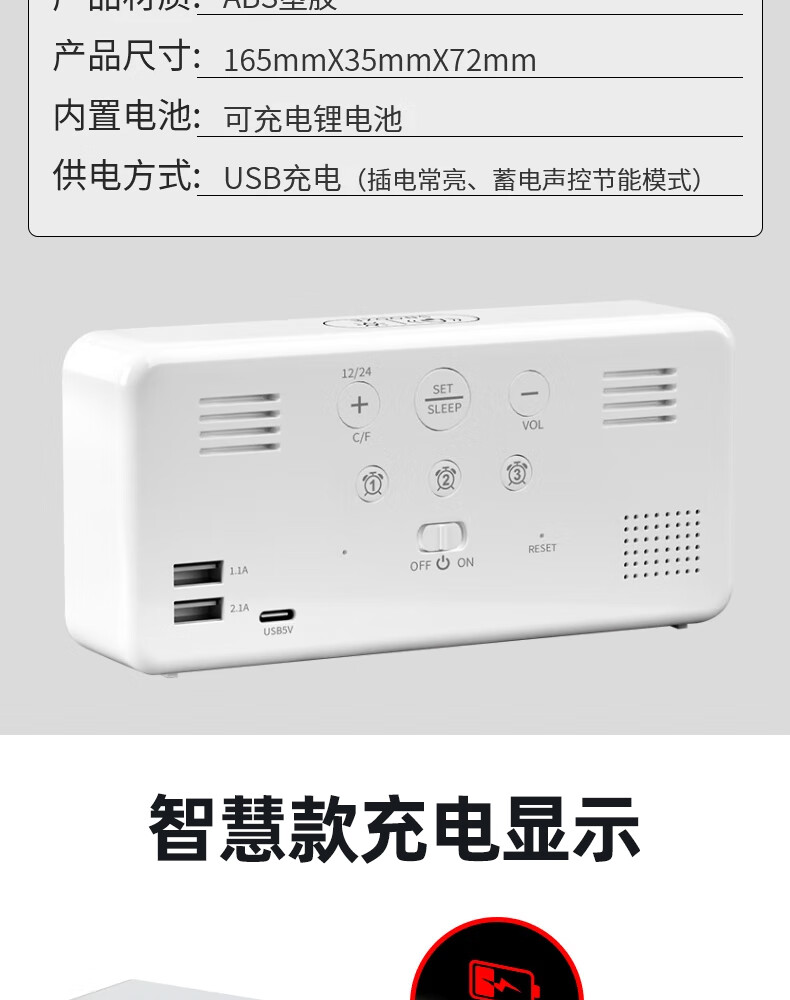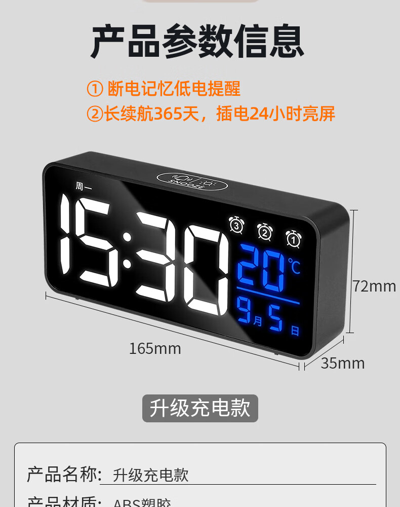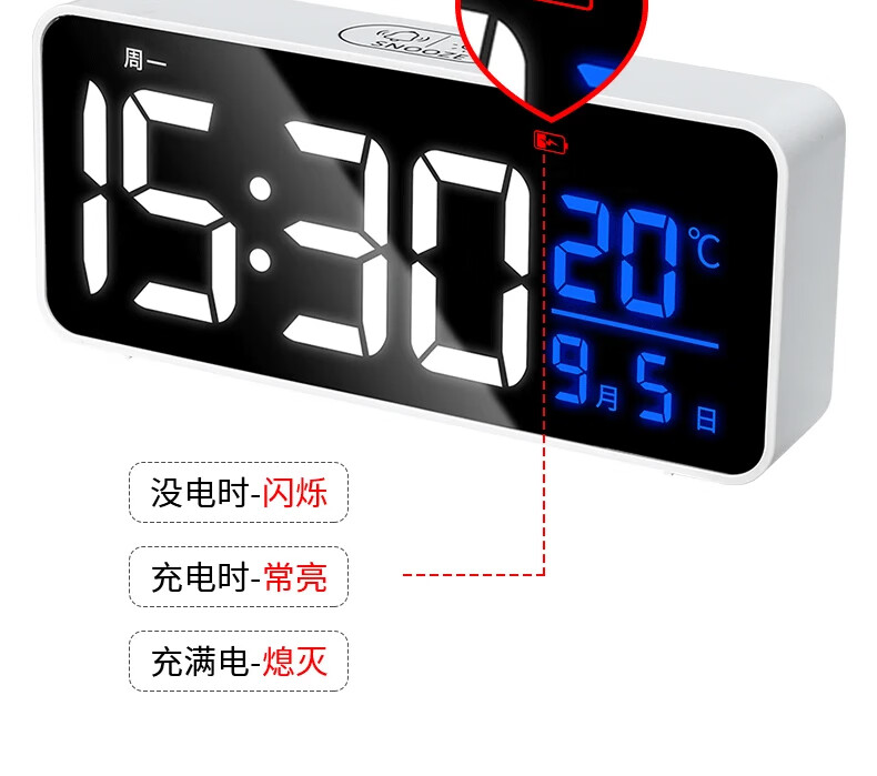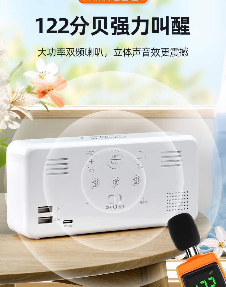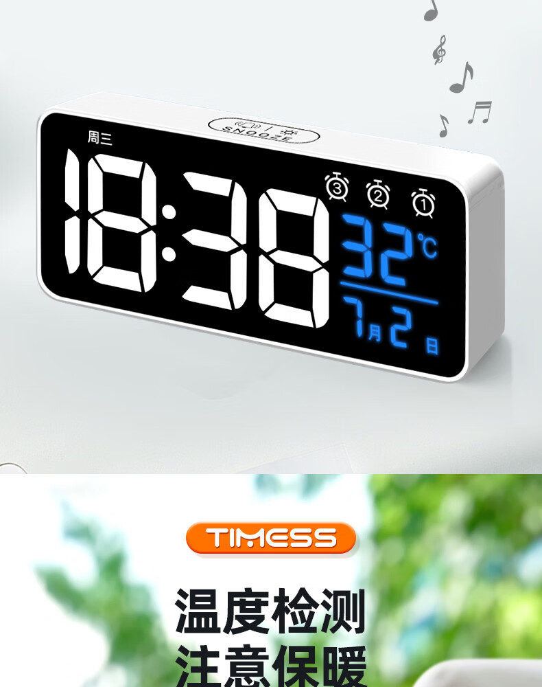 Timess闹钟学生专用起床神器儿童充电智能倒计时器电子桌面超大声时钟