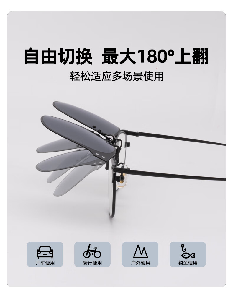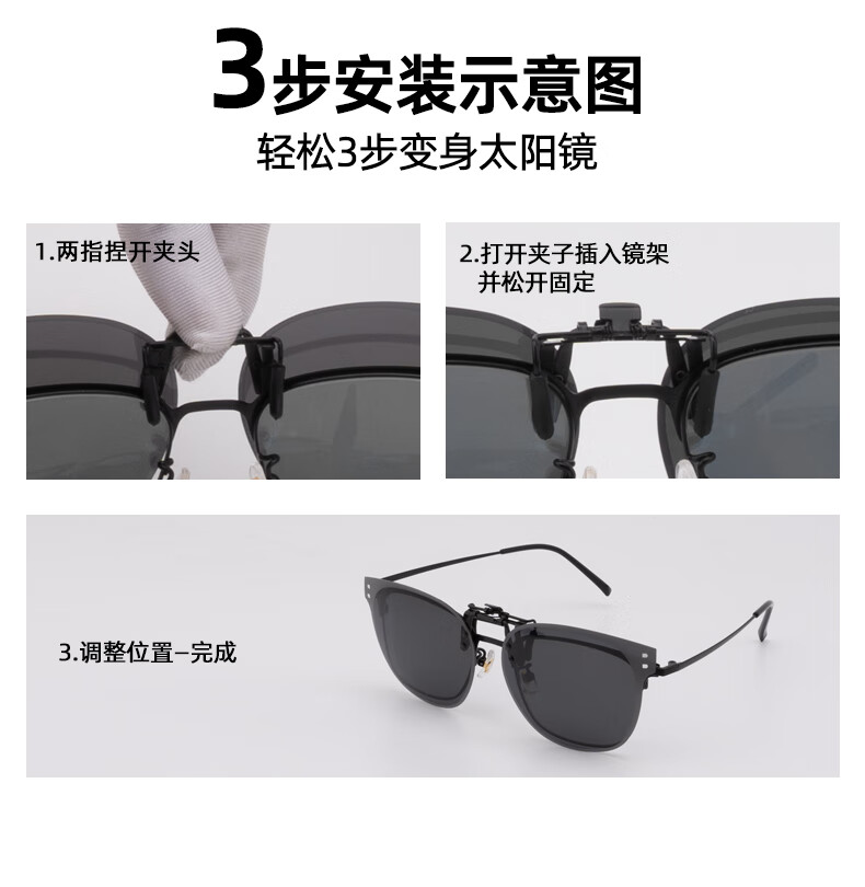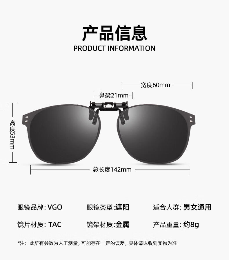 VGO近视太阳镜夹片男女 偏光镜夹片开车驾驶眼镜墨镜夹片无框B13开学