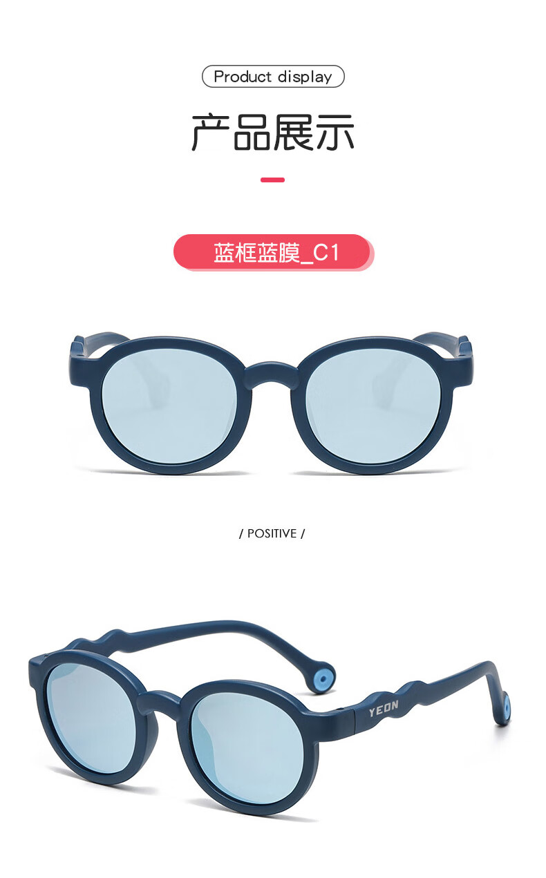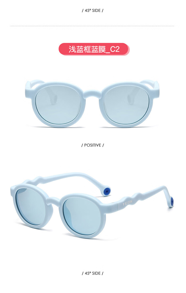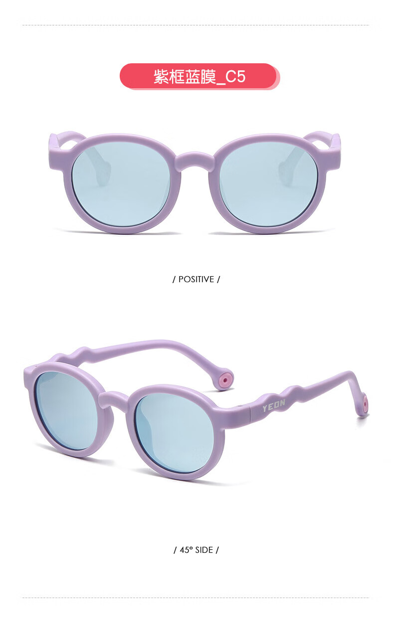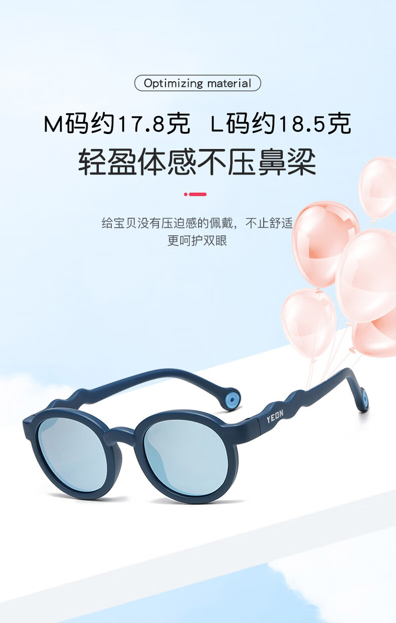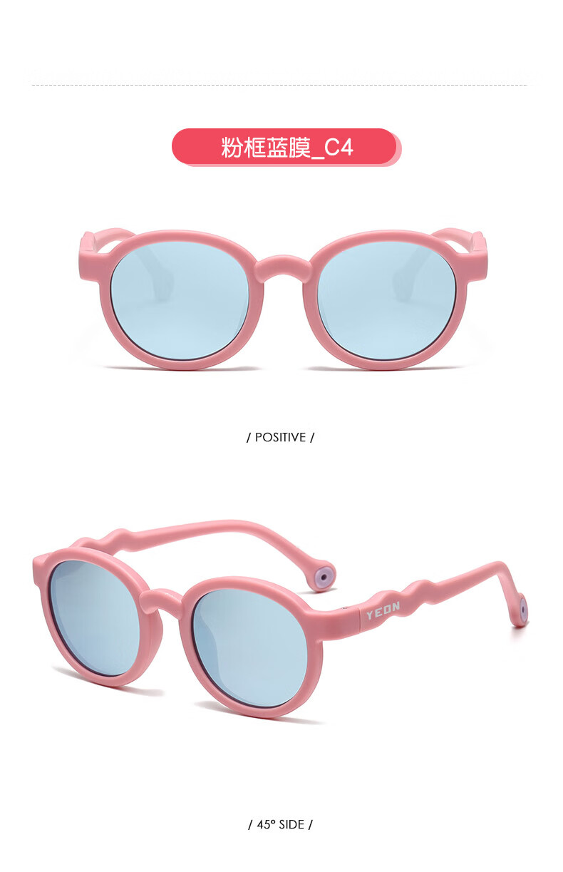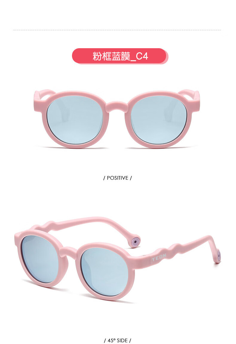 YEON儿童太阳镜墨镜防风镜护眼隔绝紫外线UV400 粉框蓝膜C4 M(3-7岁)