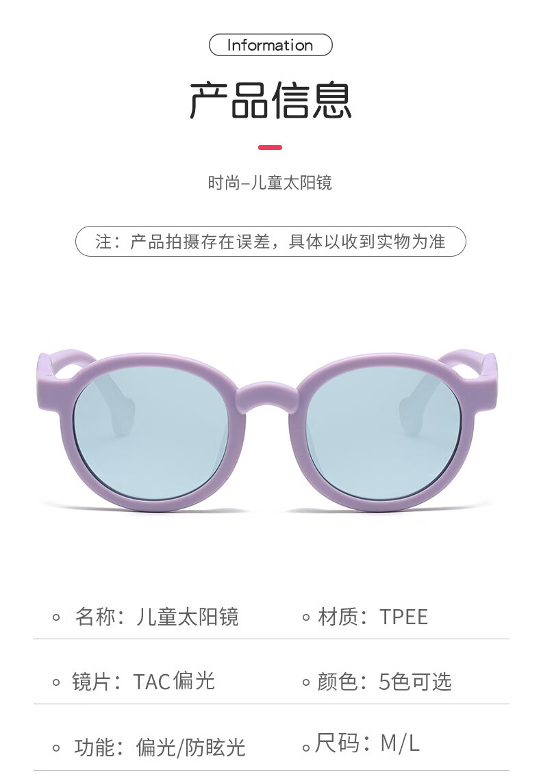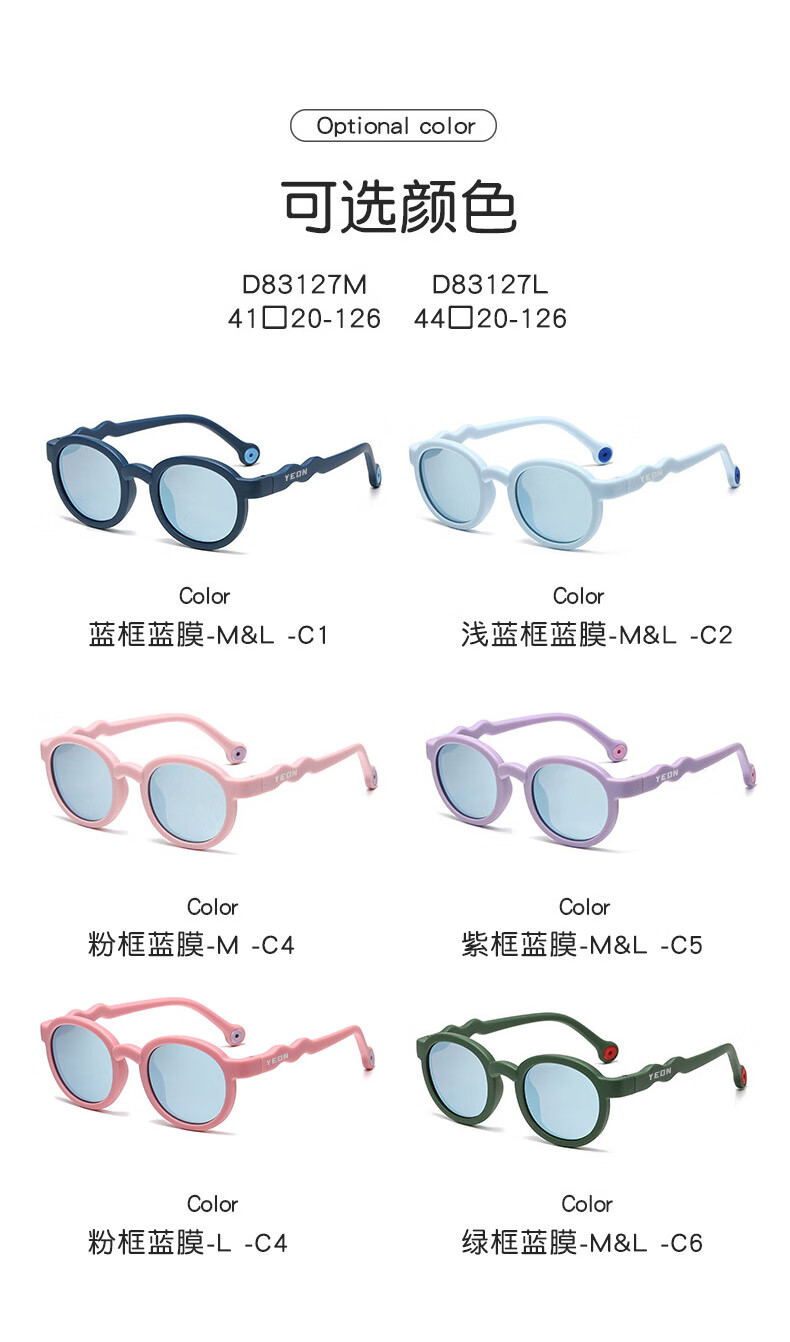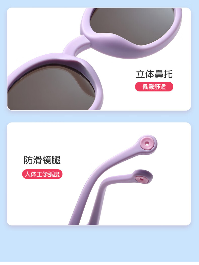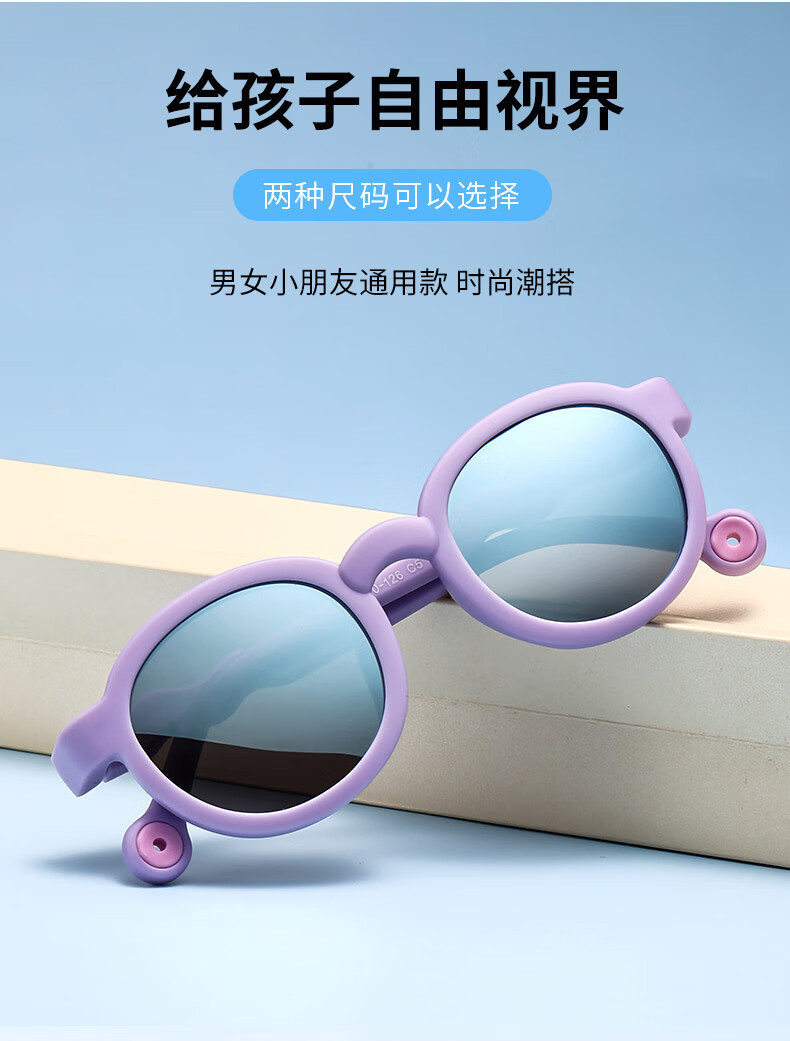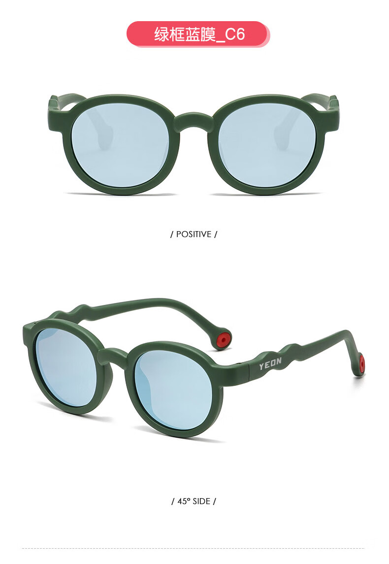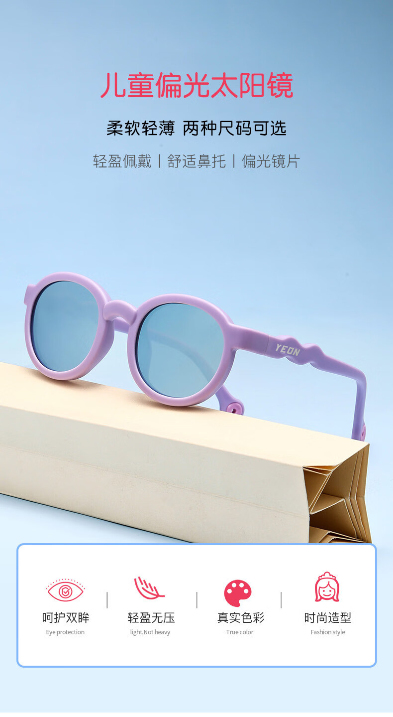 YEON儿童太阳镜墨镜防风镜护眼隔绝紫外线UV400 粉框蓝膜C4 M(3-7岁)