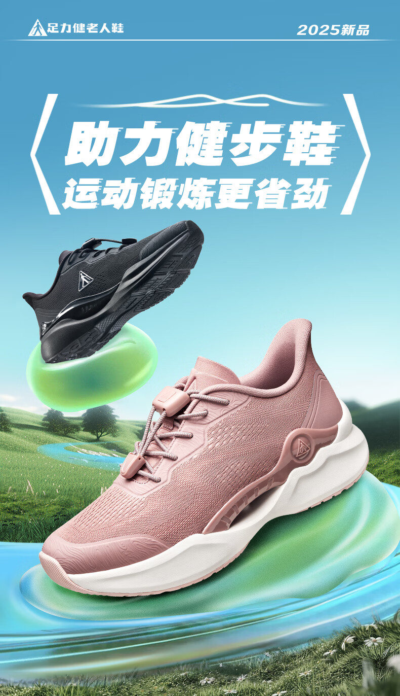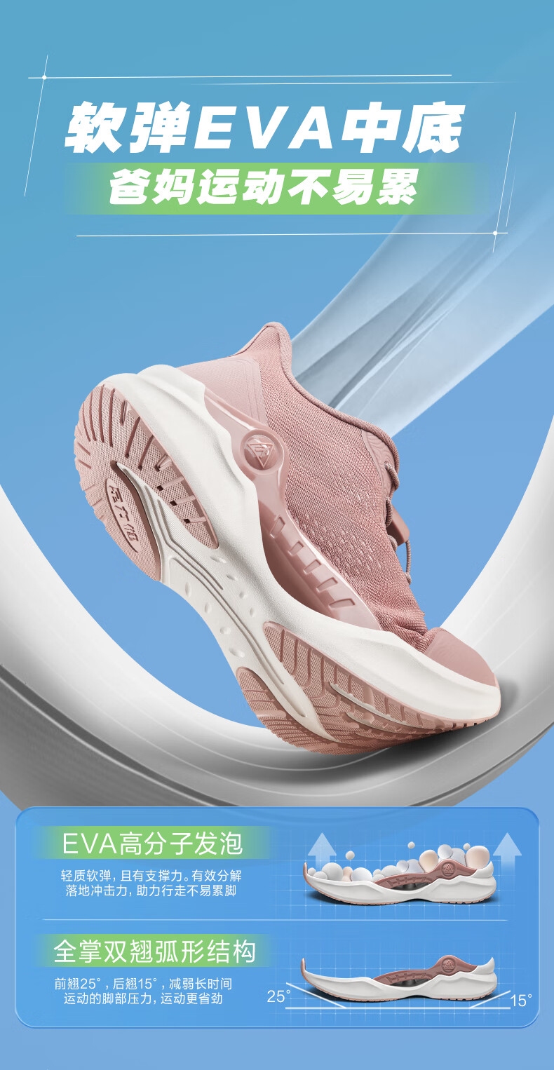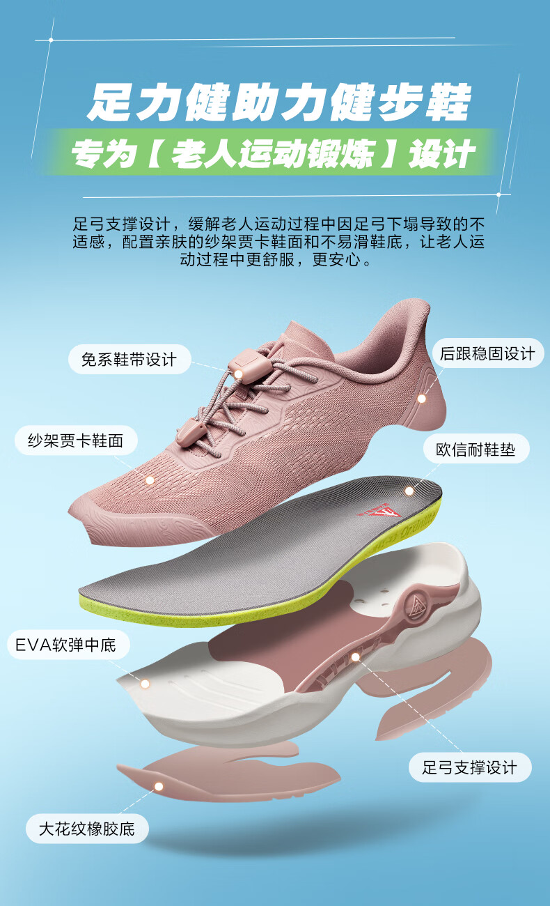 足力健中老年秋冬季爸妈鞋网纱透气不闷脚男女鞋轻盈舒适柔软休闲散步鞋 豆沙色 37