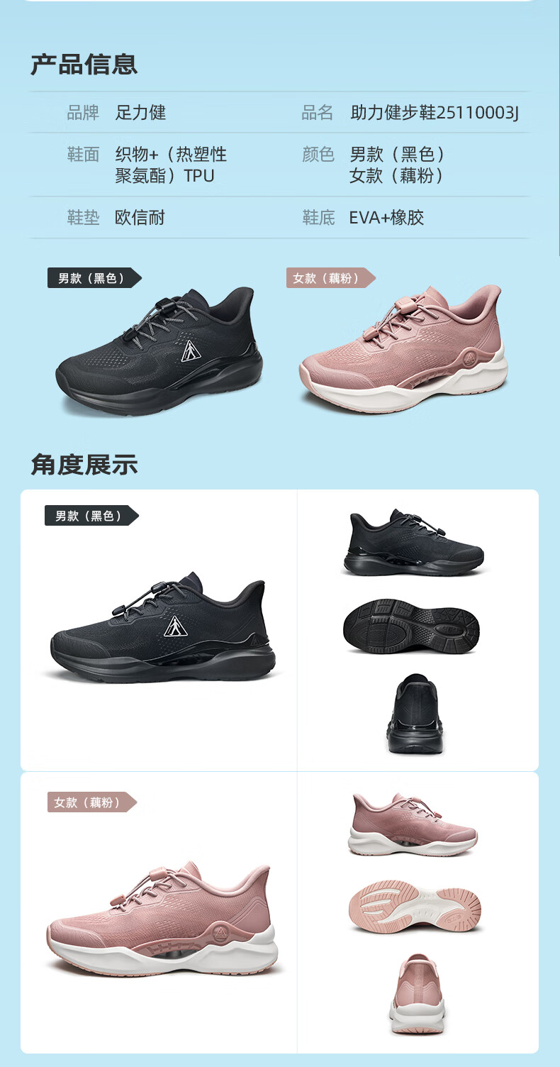 足力健老人鞋软弹缓震闷脚三重设计运动送礼长辈男女士健步休闲鞋 女款藕粉(25110003J) 40
