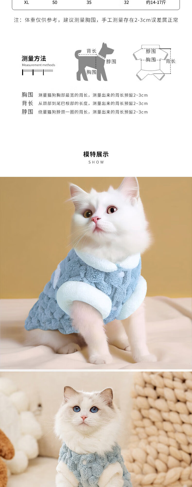 欢宠网宠物狗狗衣服猫咪猫小狗小猫泰迪比熊猫猫小型犬幼犬冬季保暖服饰