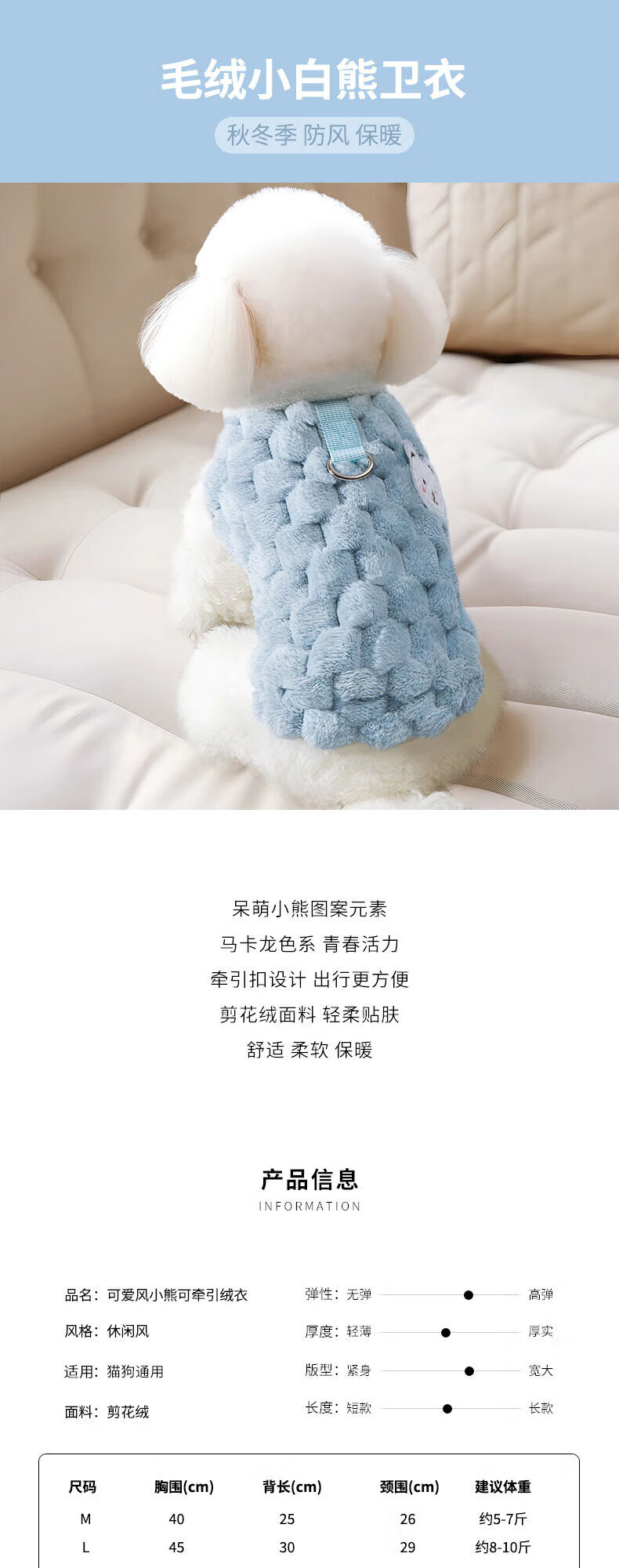 派乐特 狗狗衣服可牵引猫咪衣服秋冬新款小型猫犬宠物通用加绒保暖衣服L