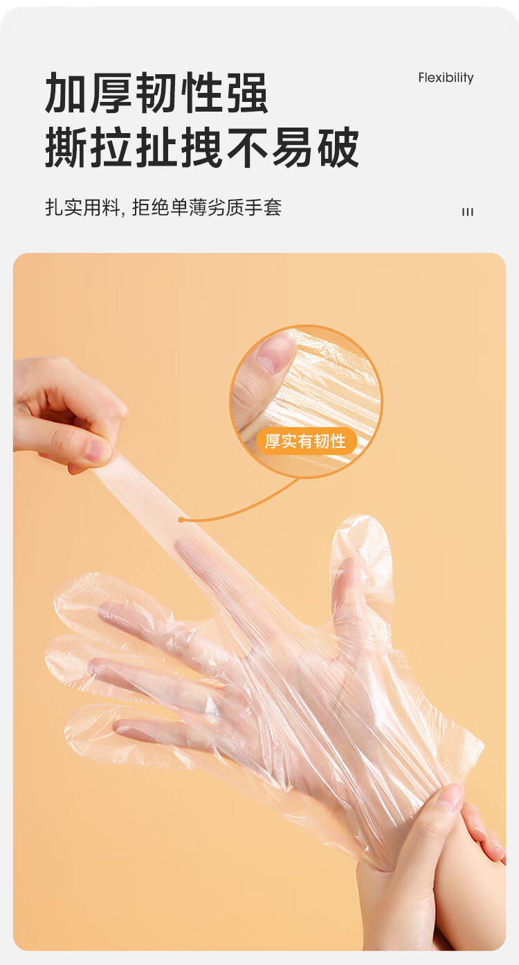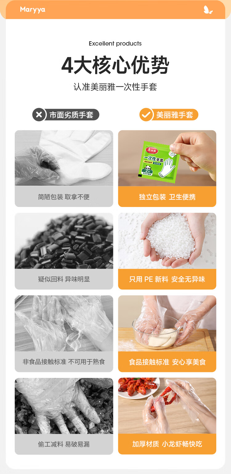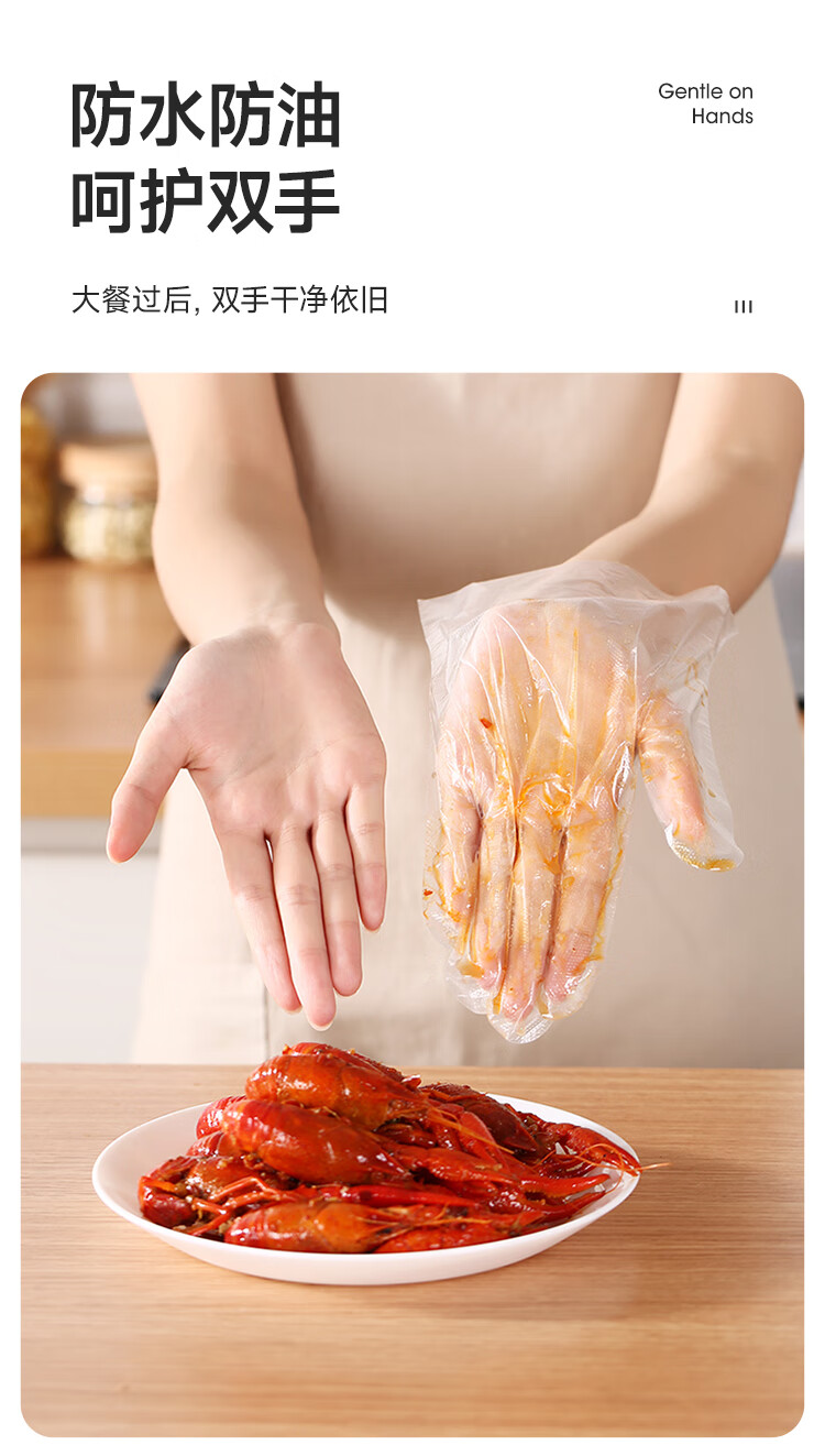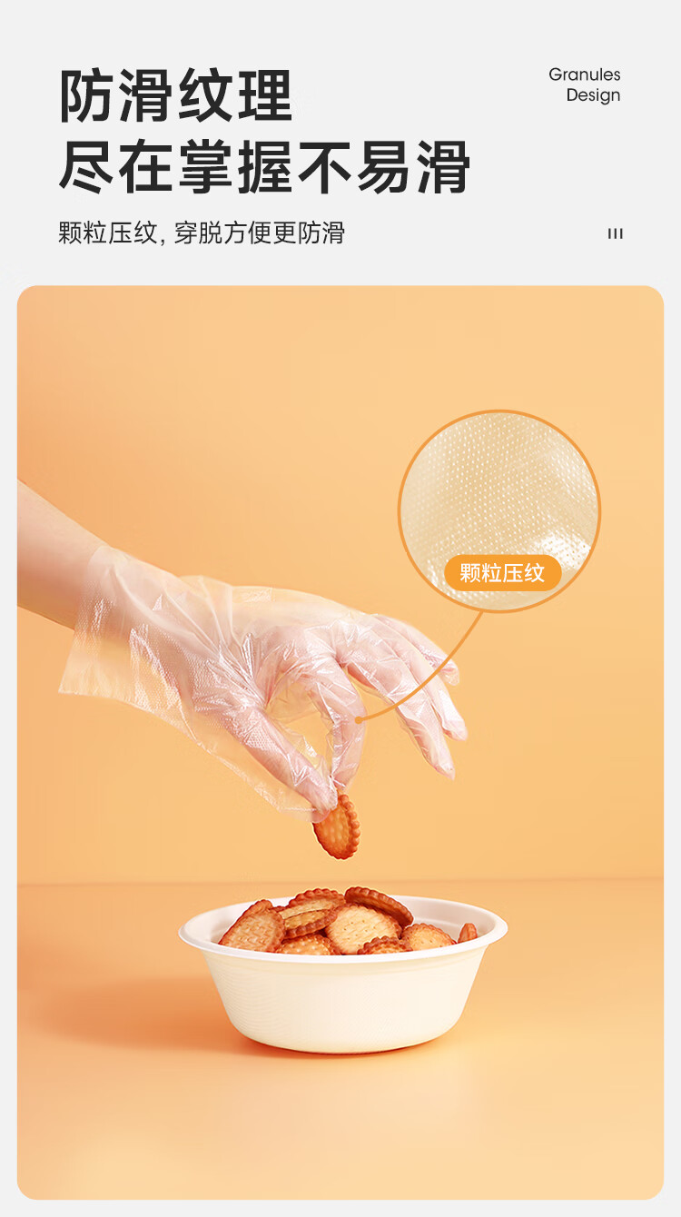 美丽雅 一次性手套独立包装50双 食品用升级加厚手套pe厨房餐饮家务手套