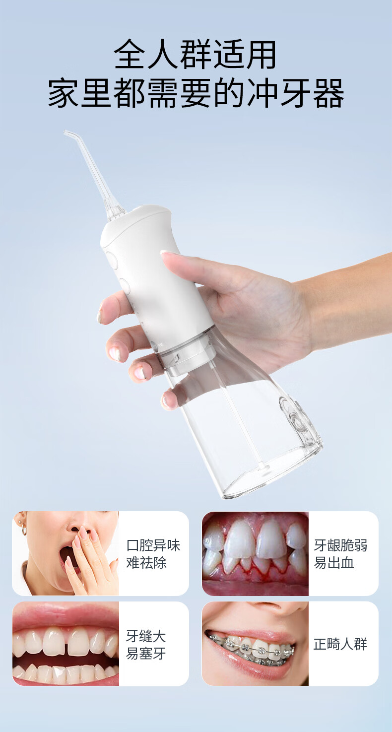 博皓(prooral)冲牙器便携式洗牙器家用洁牙器水牙线正畸牙龈敏感正畸专用清洗器牙齿冲洗器预防牙结石 F29 奶油黄-标配2支喷嘴