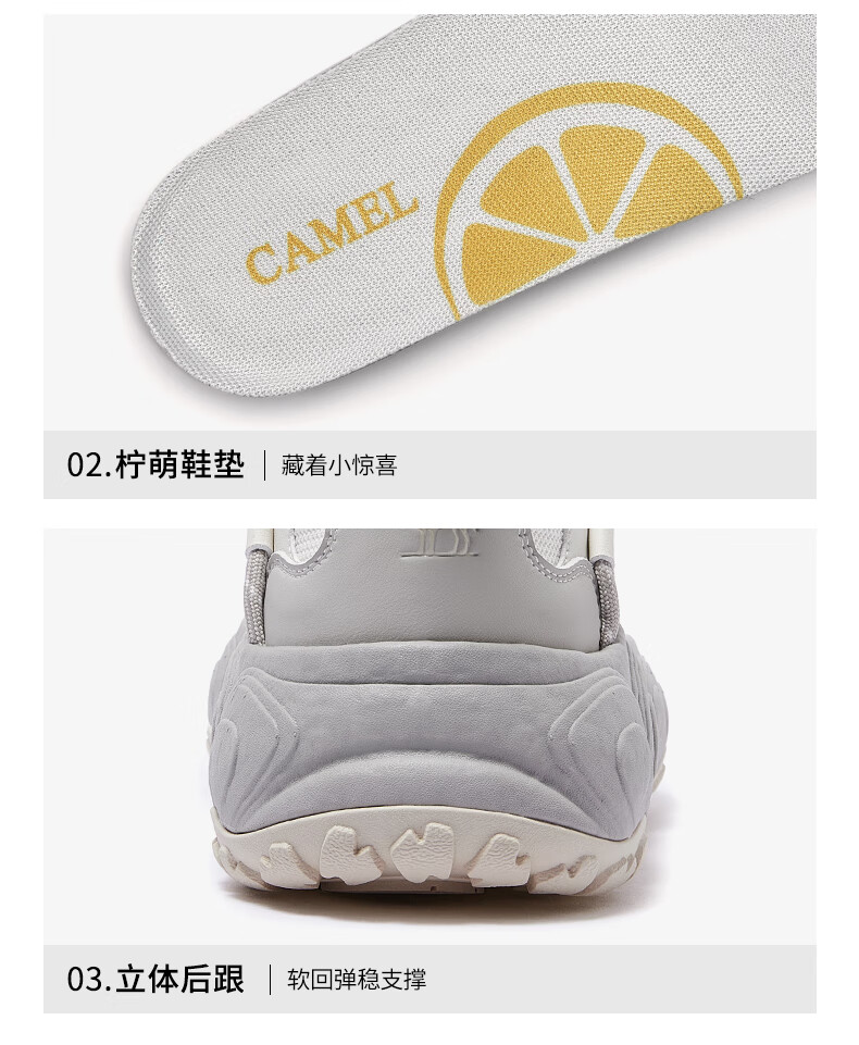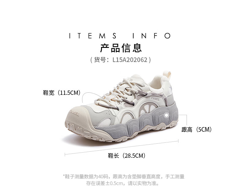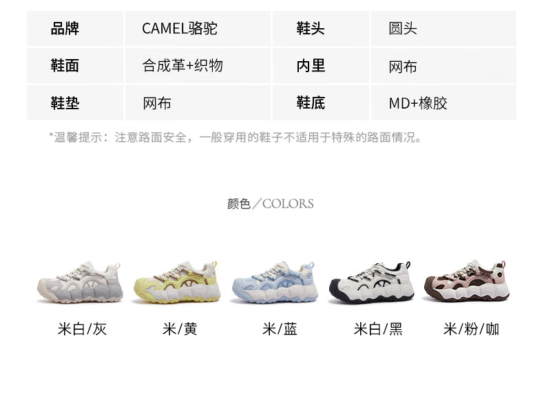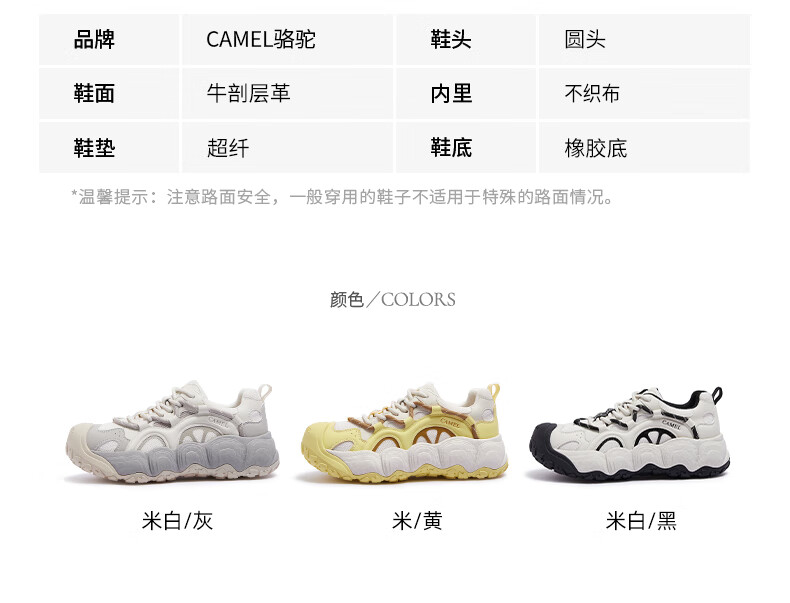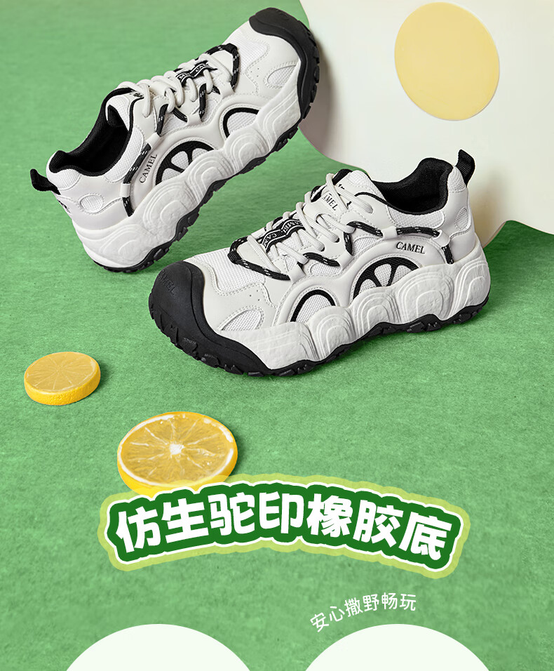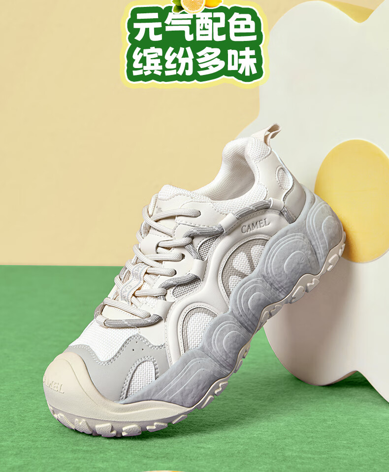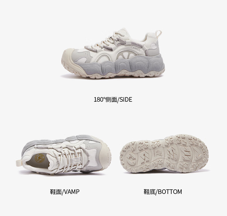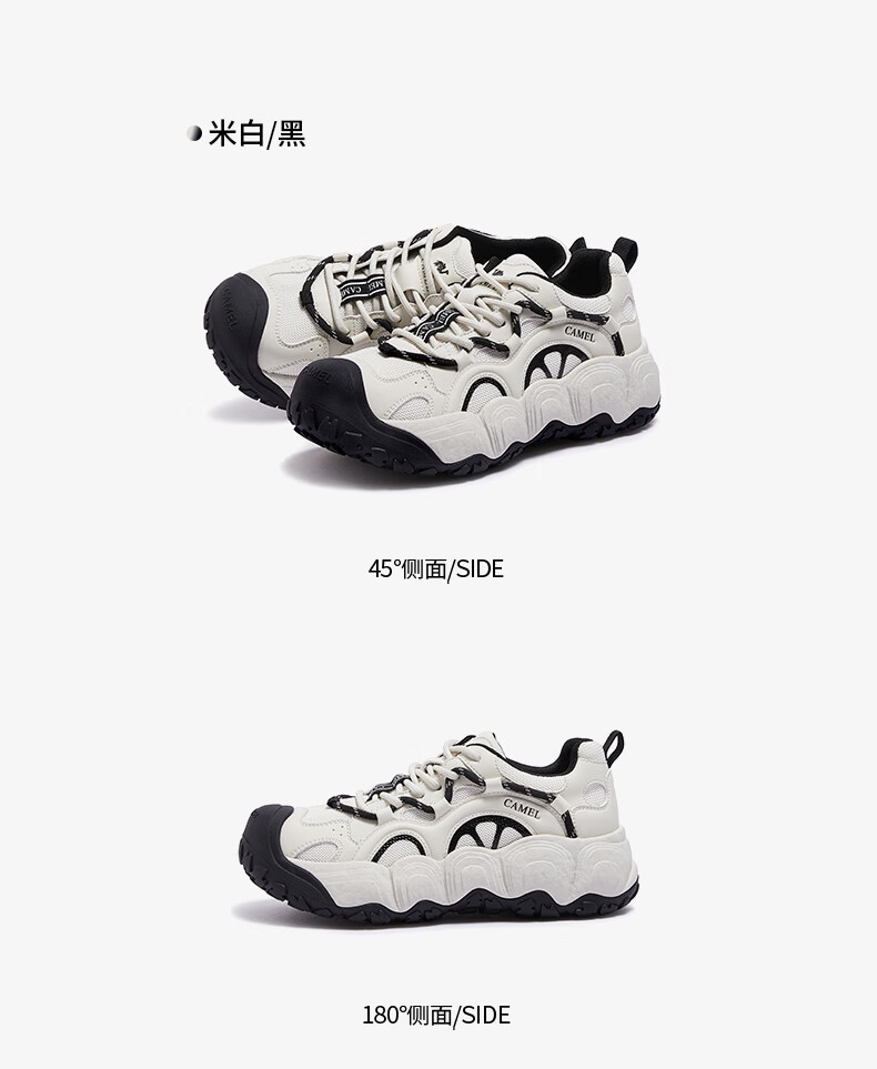 骆驼(CAMEL)【云山】网面户外徒步登山休闲丑萌鞋情侣 G15S076104 米白/黑 38