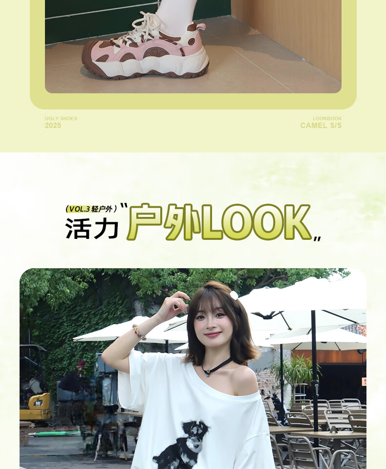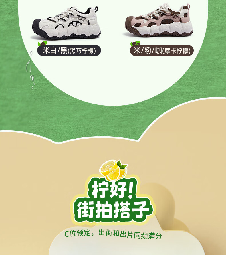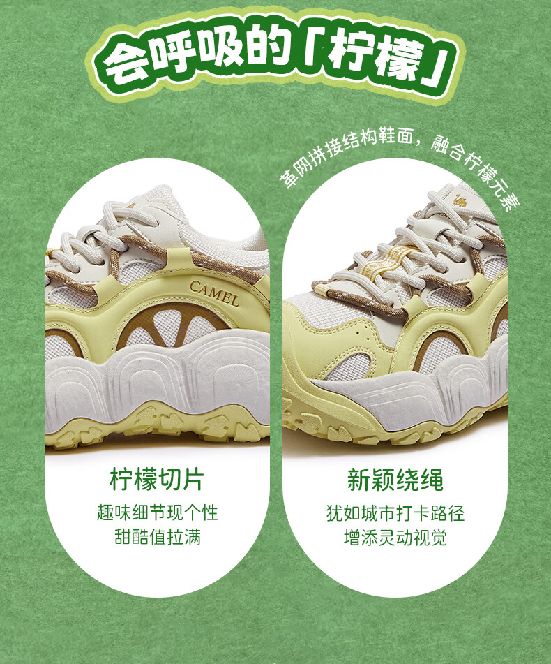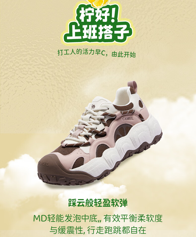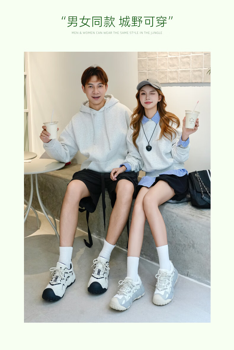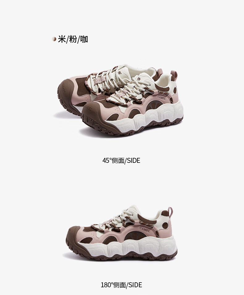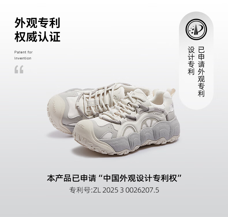 骆驼(CAMEL)【云山】网面户外徒步登山休闲丑萌鞋情侣 G15S076104 米白/黑 38