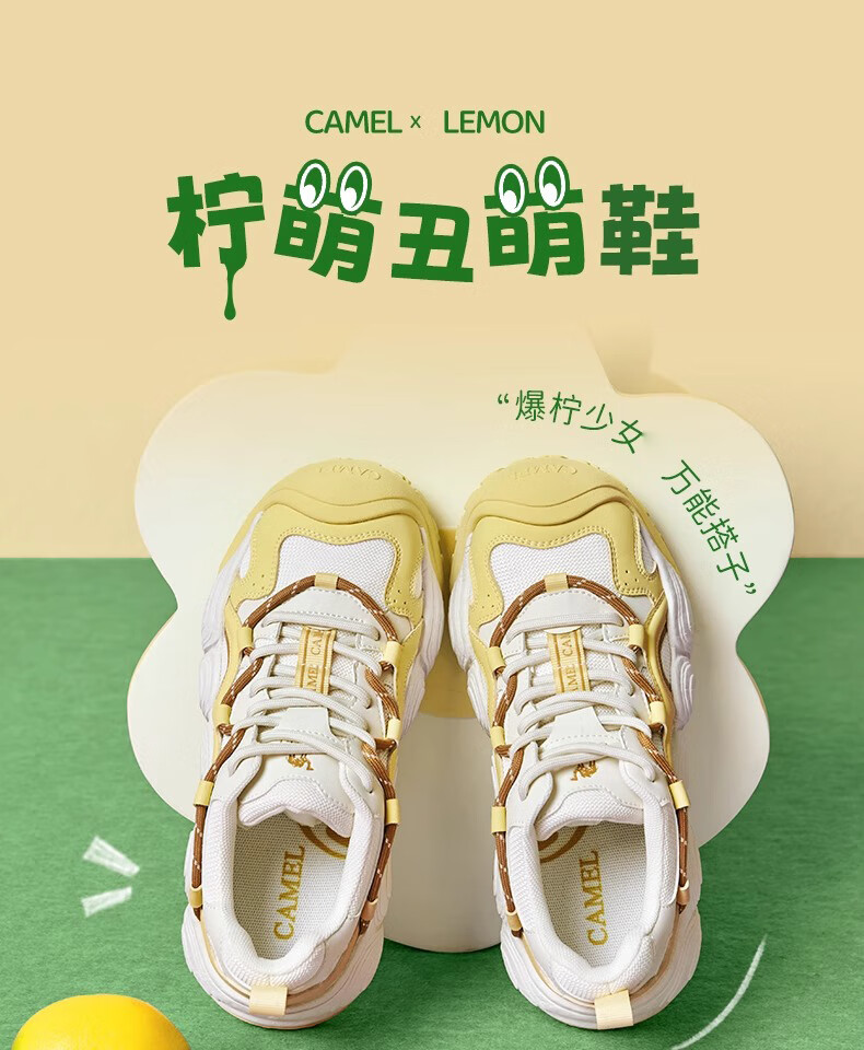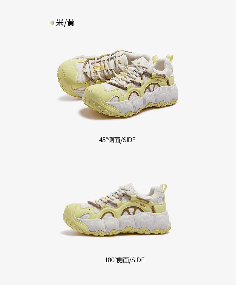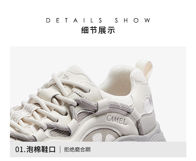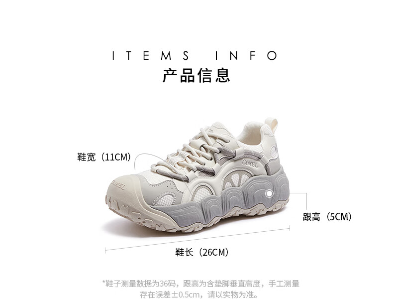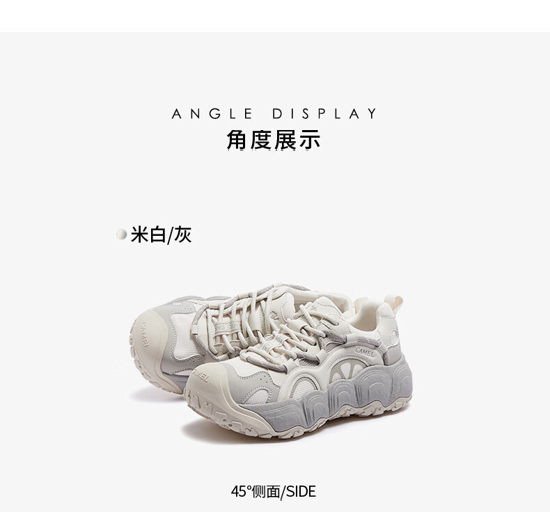 骆驼(CAMEL)柠萌丑萌鞋女运动跑步老爹厚底休闲鞋 L25A202062 米白/灰 37