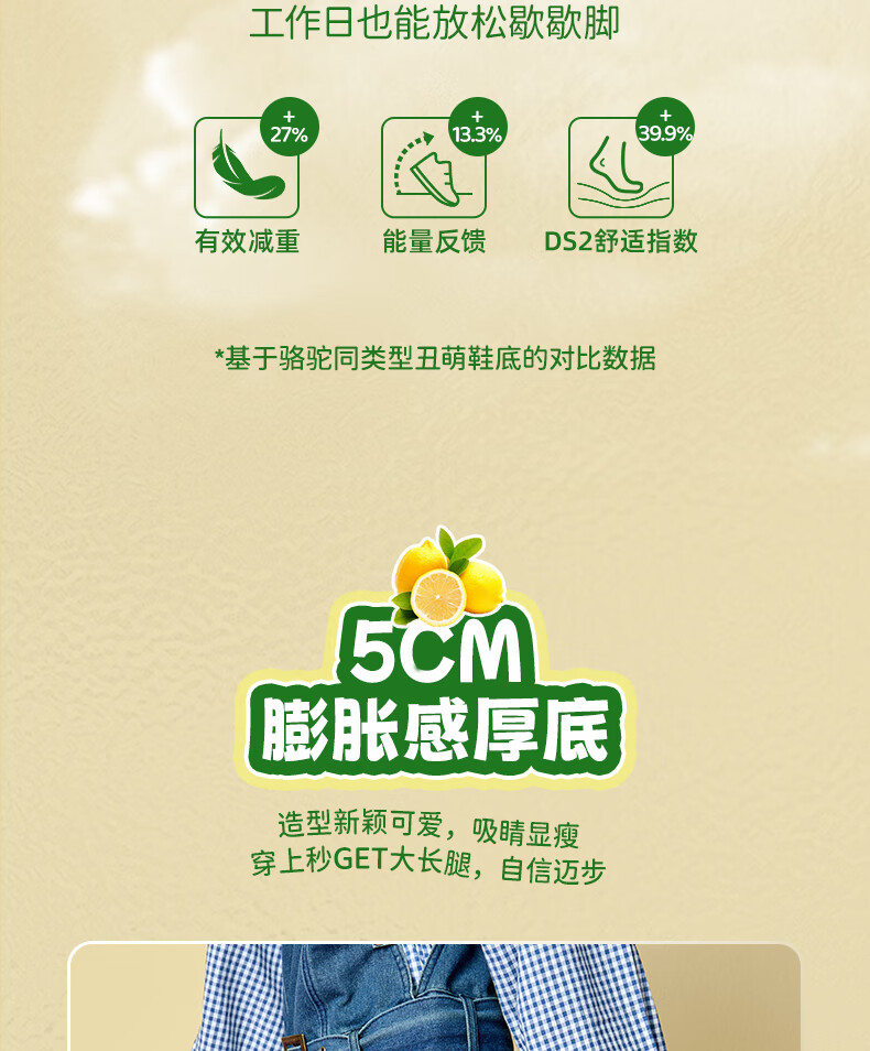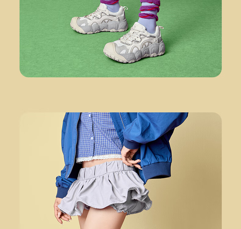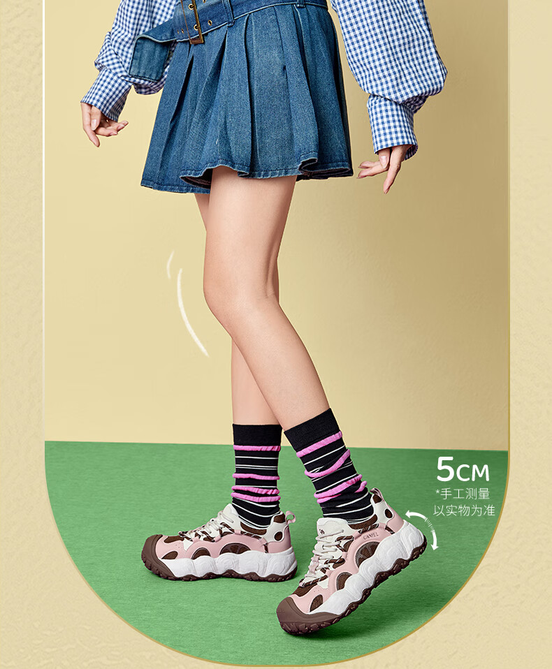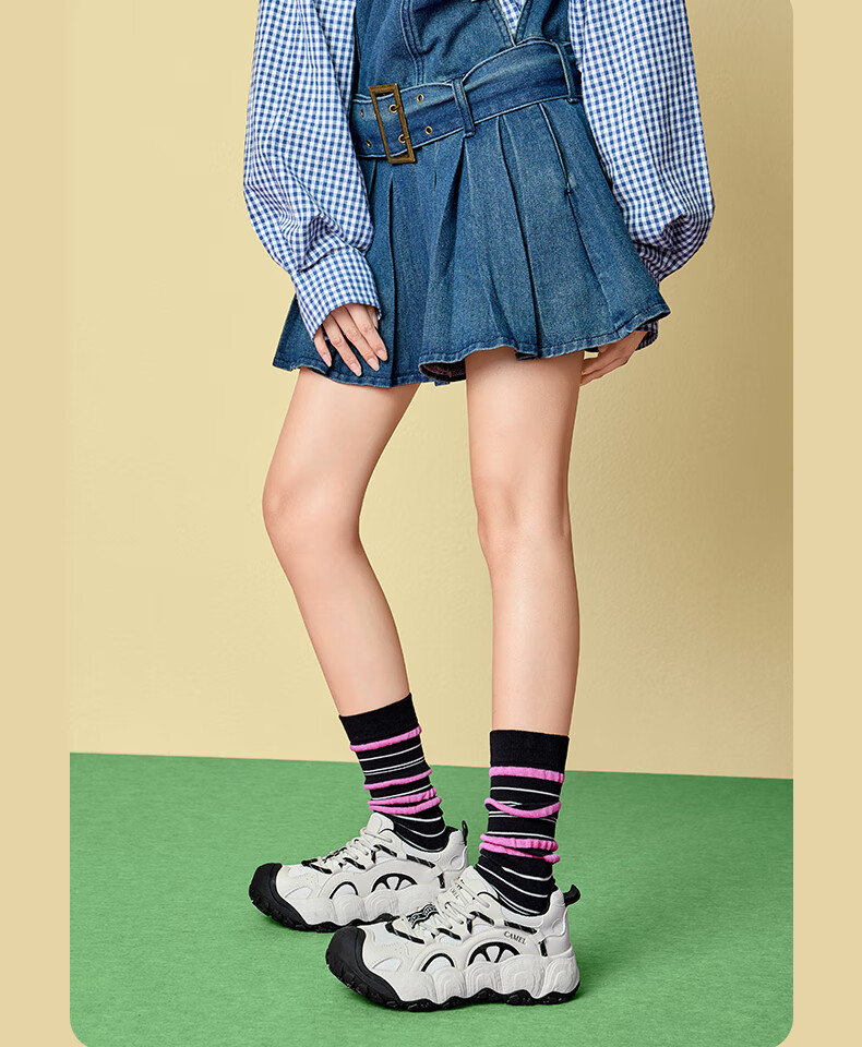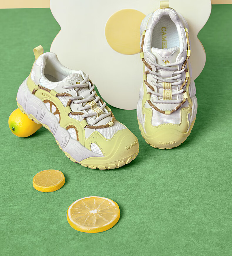 骆驼(CAMEL)柠萌丑萌鞋女运动跑步老爹厚底休闲鞋 L25A202062 米白/灰 37