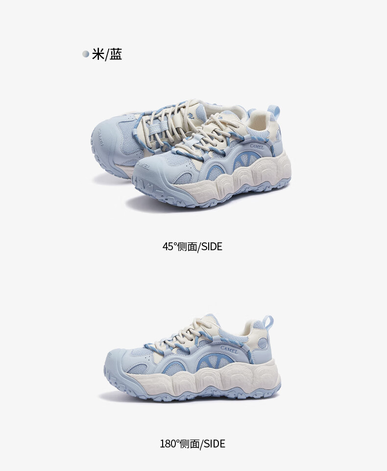 骆驼(CAMEL)【王俊凯同款】登山鞋女机甲户外丑萌鞋 L25M202007 米/银/蓝 37