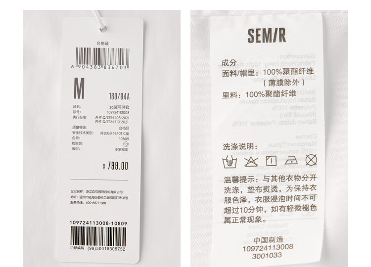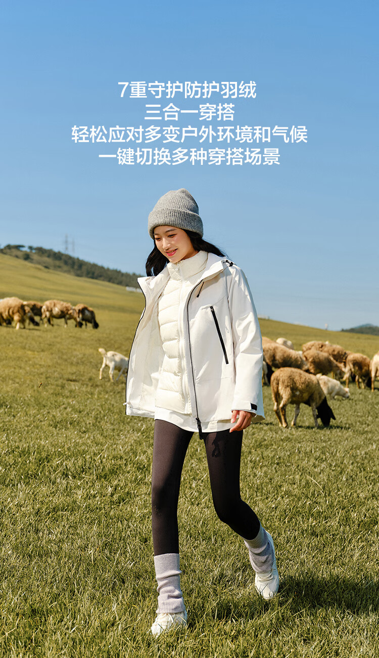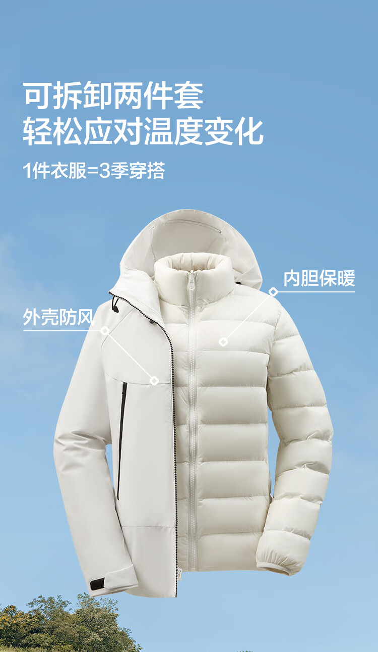 森马(Semir)防护外套|羽绒服女三防防雨防风三合一2024冬两件套109724113008