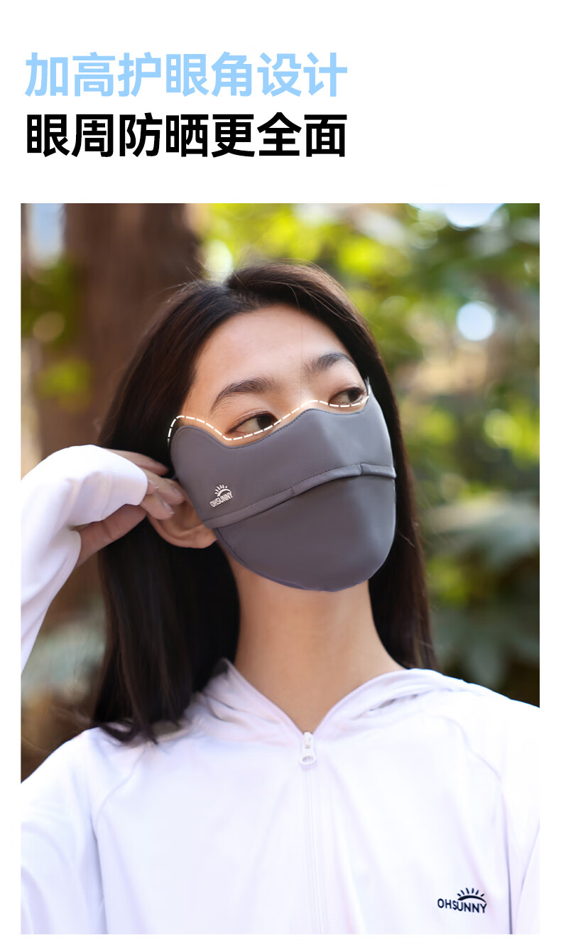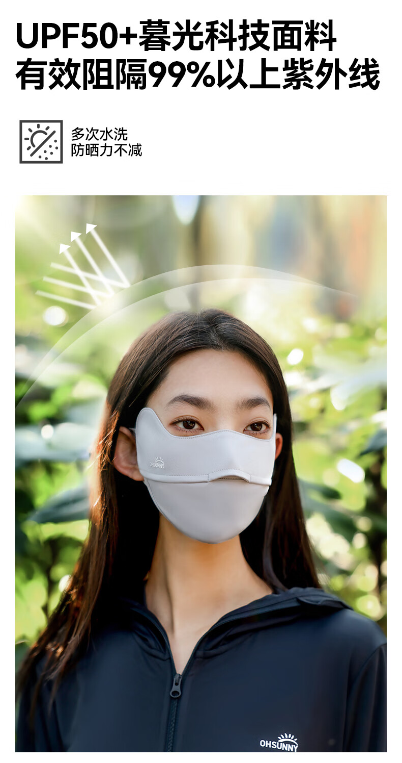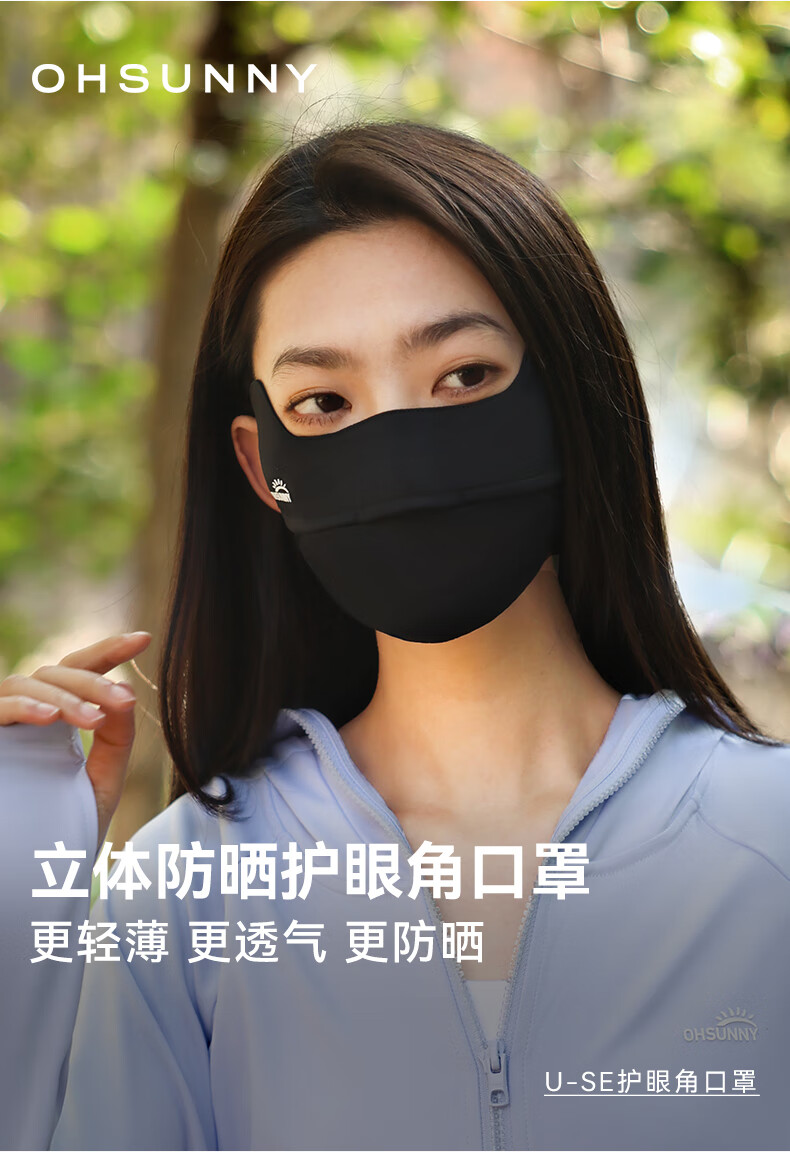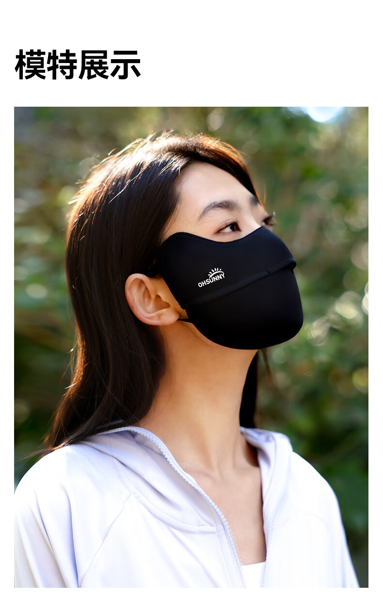 OhSunny防晒口罩夏女透气护眼角防紫外线防晒面罩男 SLF5M136WT 暗夜黑 M