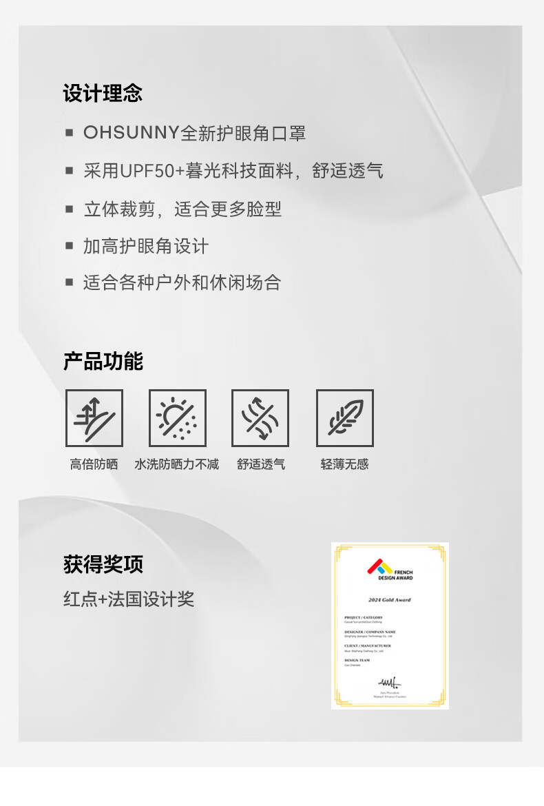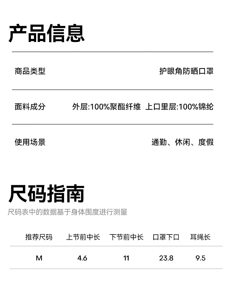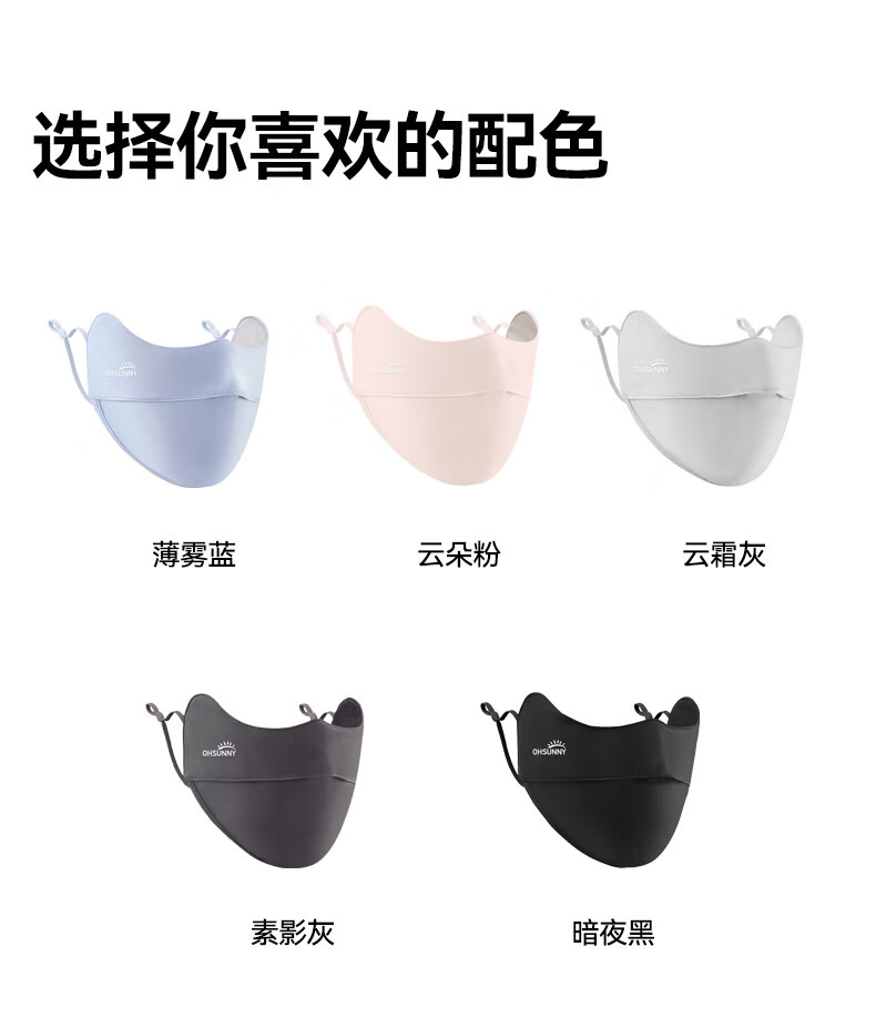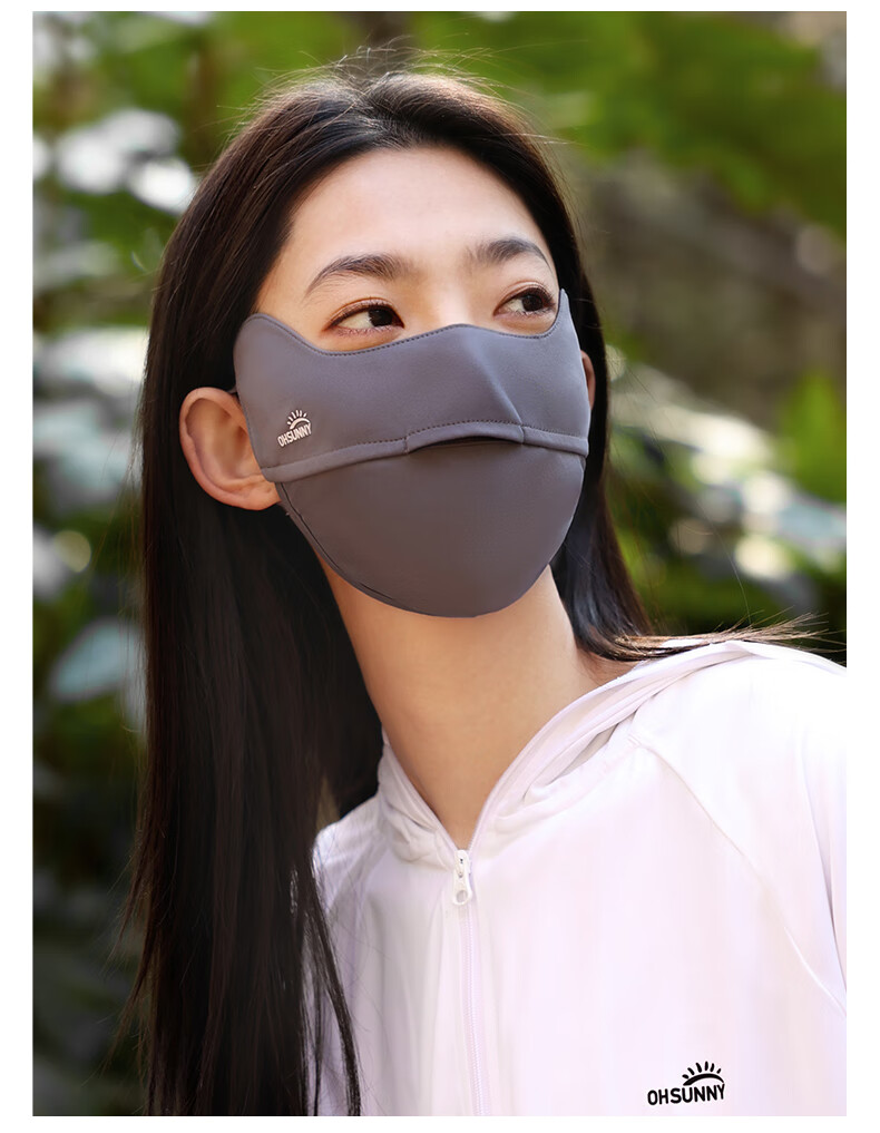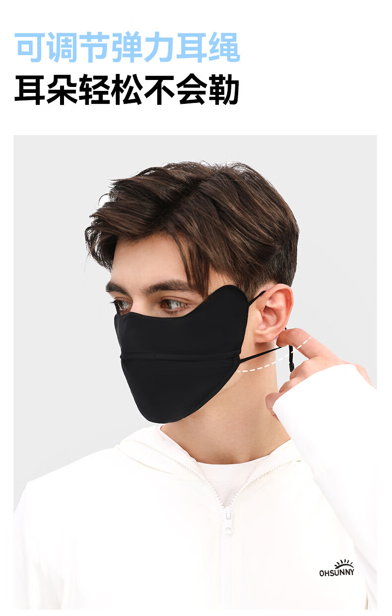 OhSunny防晒口罩夏女透气护眼角防紫外线防晒面罩男 SLF5M136WT 暗夜黑 M