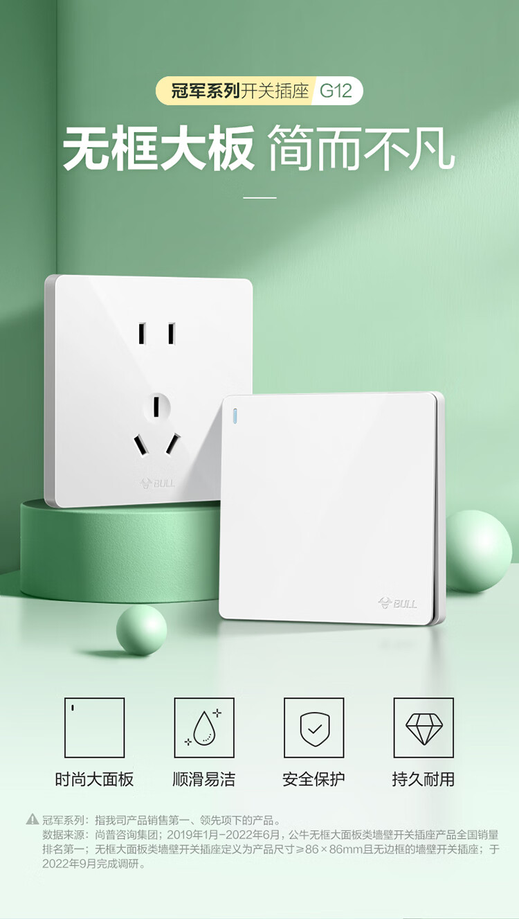 公牛(BULL)开关插座 G12系列 10A四孔插座86型插座面板 G12Z222S 象牙白