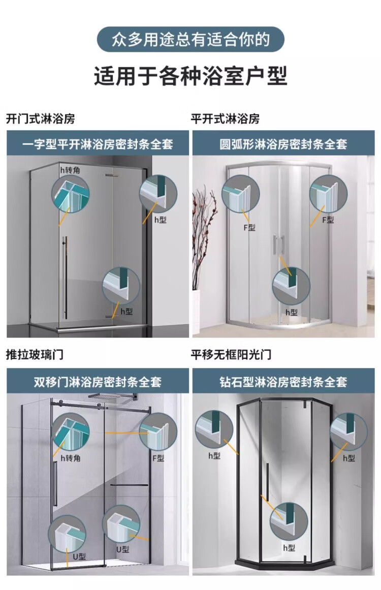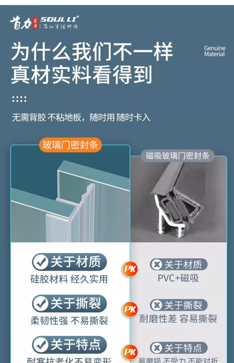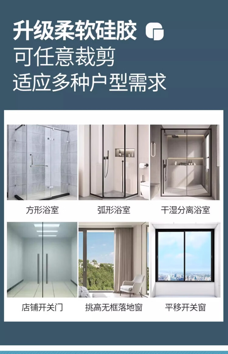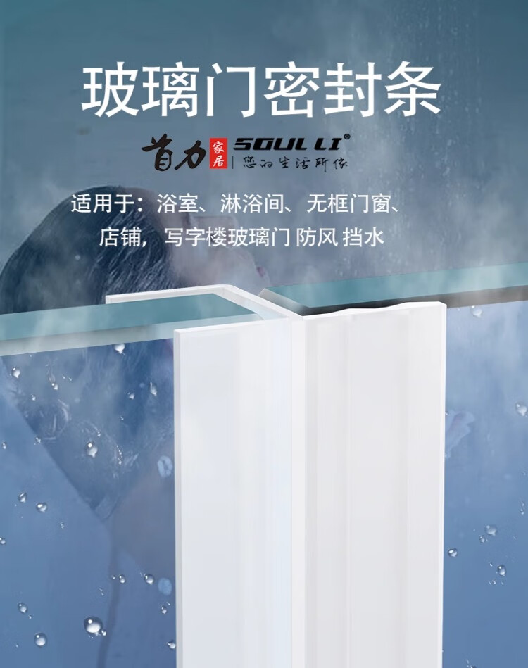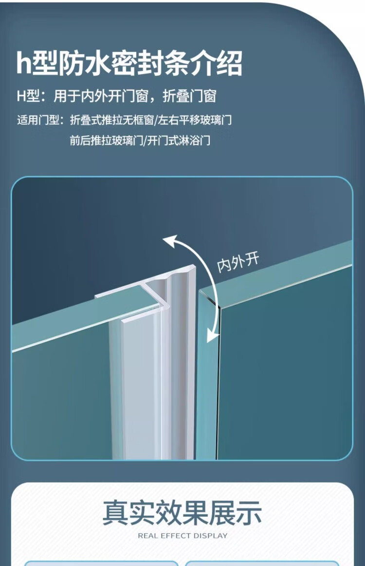 首力 玻璃门密封条门缝防风档条隔音窗户浴室淋浴房防水硅胶条h型10mm