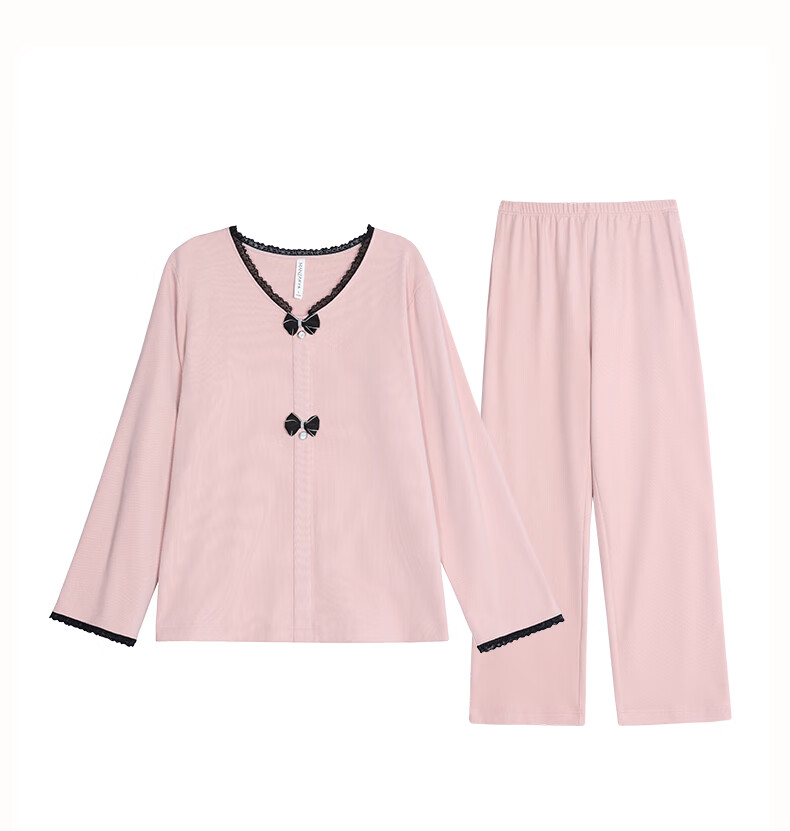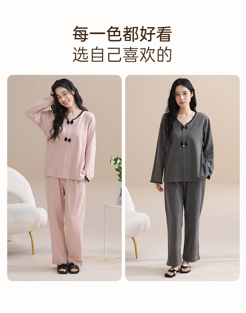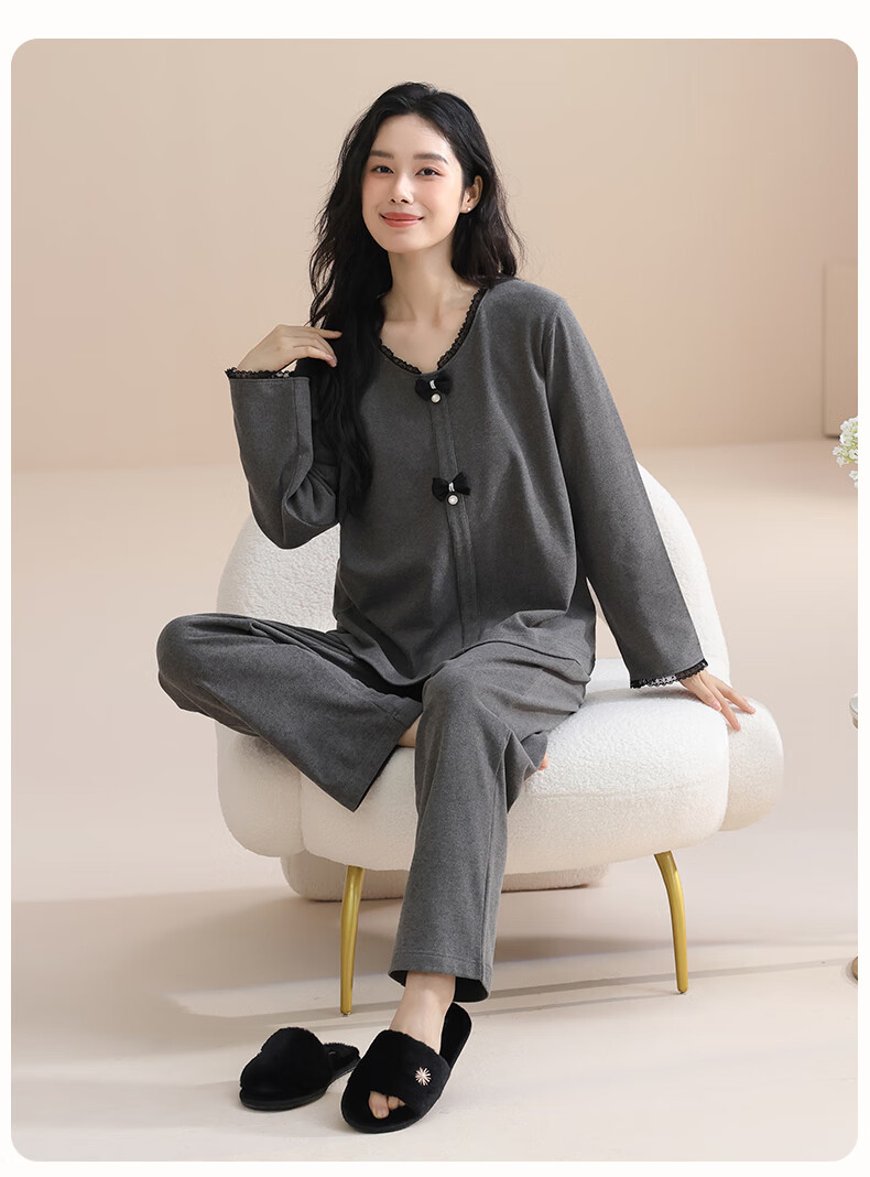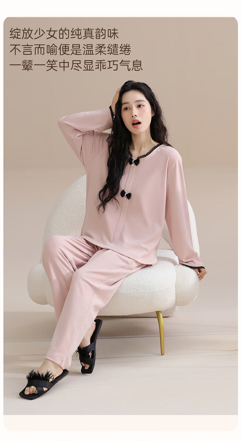 玛伦萨纯棉睡衣女春秋季可外穿2025新款长袖长裤女士全棉柔软家居服 黑色 M